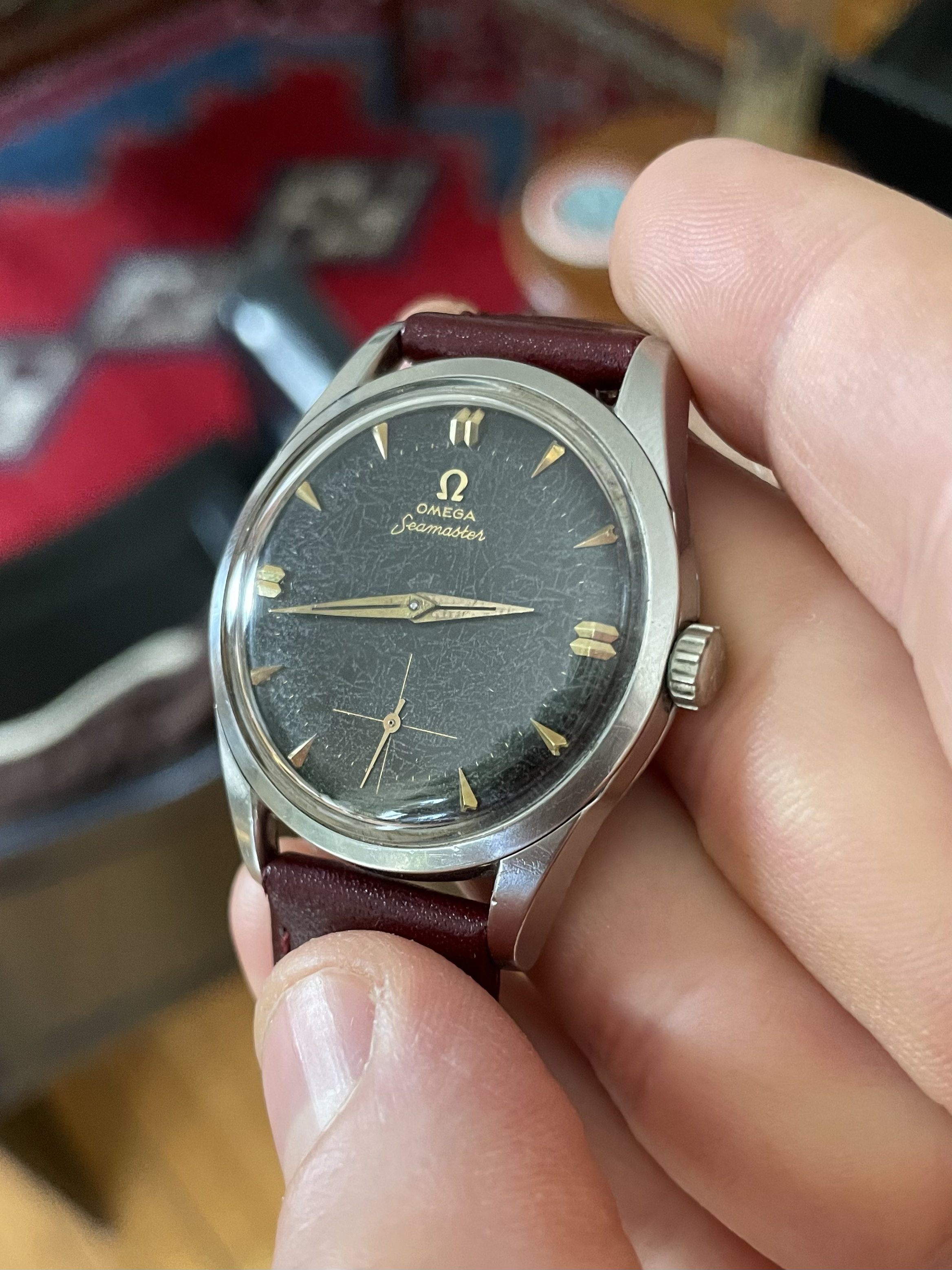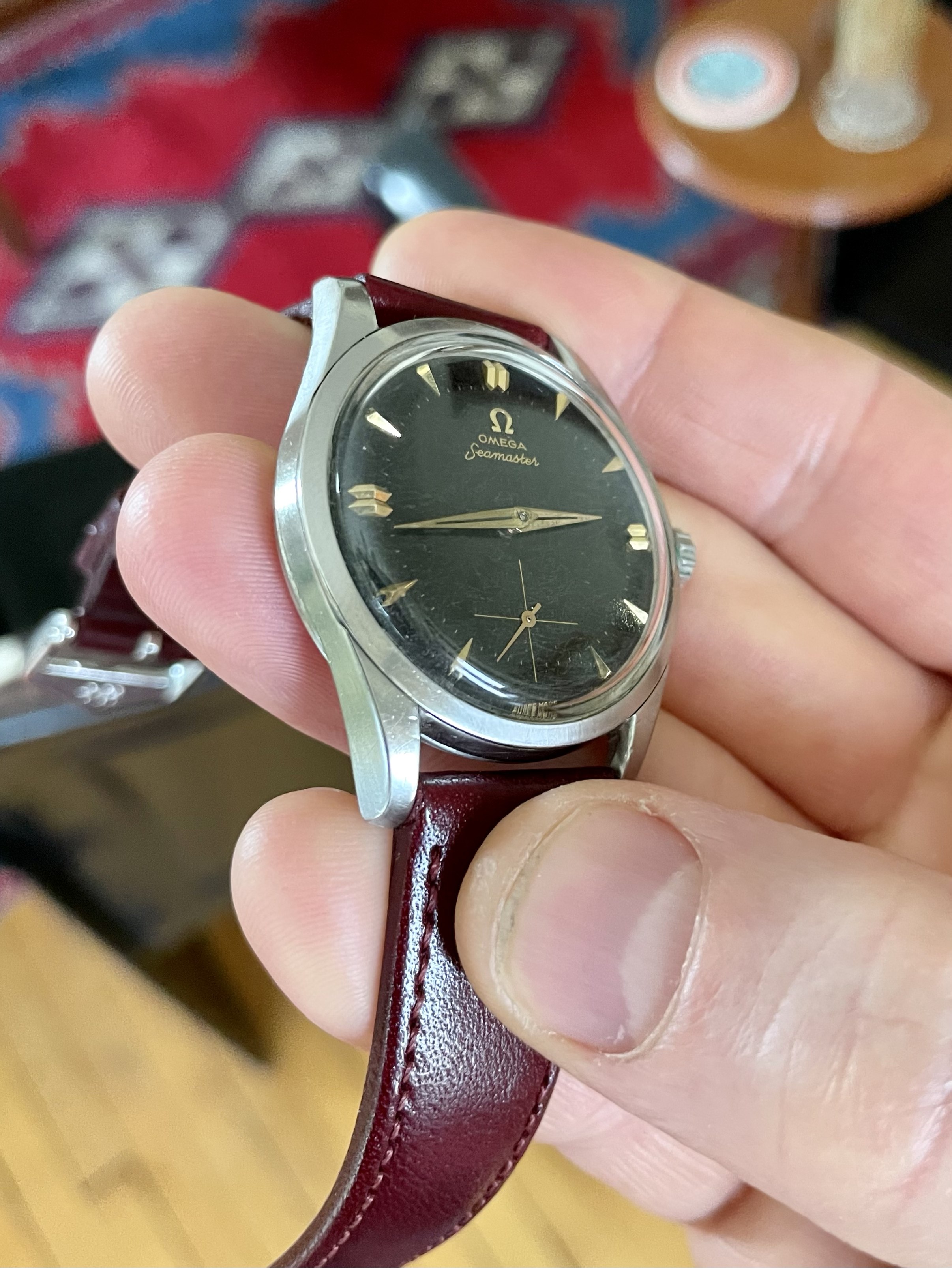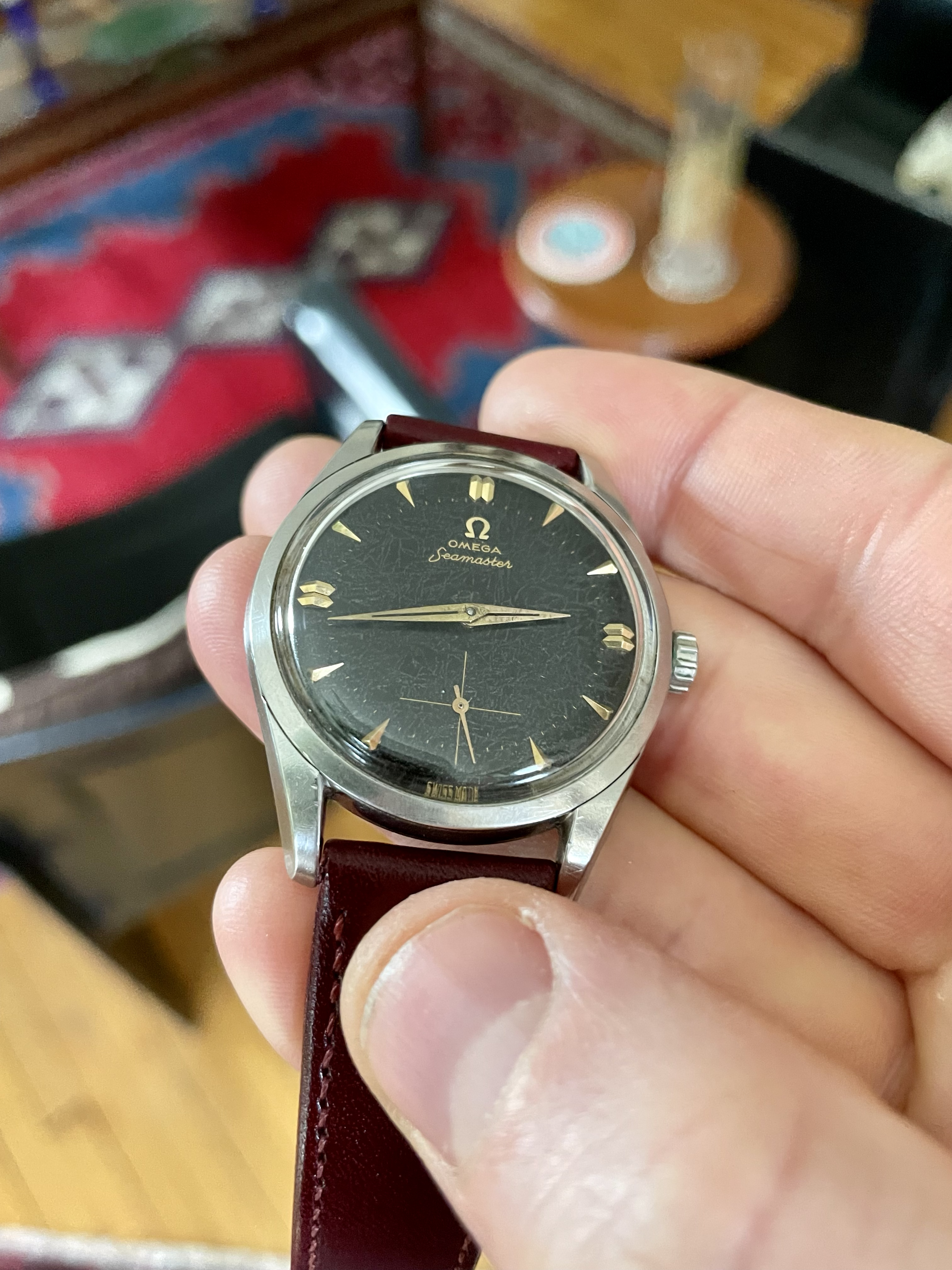 I purchased the watch from a well known member here in August of 2020. Here’s the link to the original ad: https://omegaforums.net/threads/vin...er-fantastic-black-dial-36mm-serviced.117868/ The seller has given me permission to link to his original post, and more photos (including one taken during service), can be viewed there.