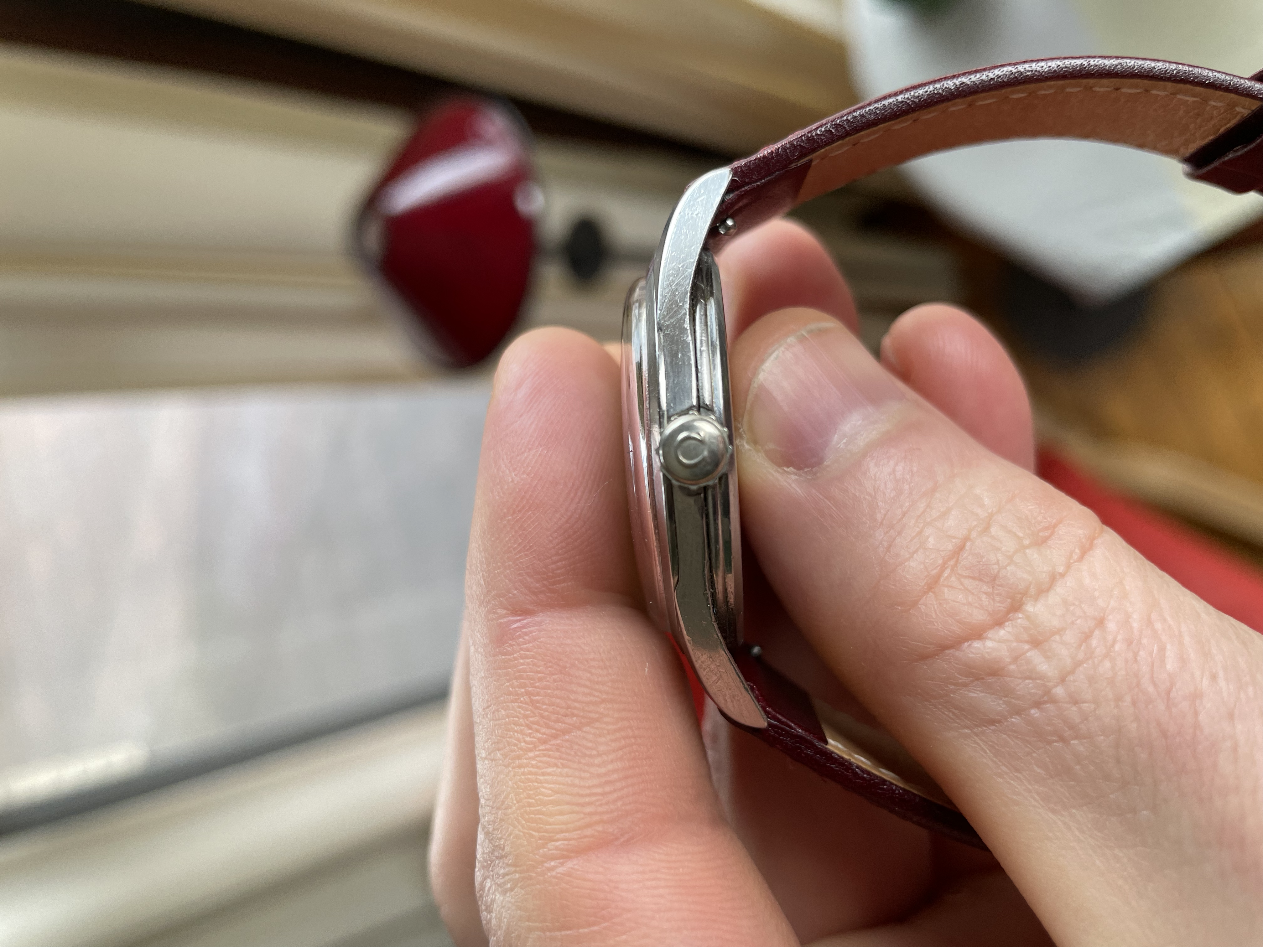 The movement is a cal. 267 which was serviced by the previous owner in June of 2020. It isn’t the prettiest 30mm (with noticeable plating loss) but it’s running strong, winds with ease, and sets smoothly.