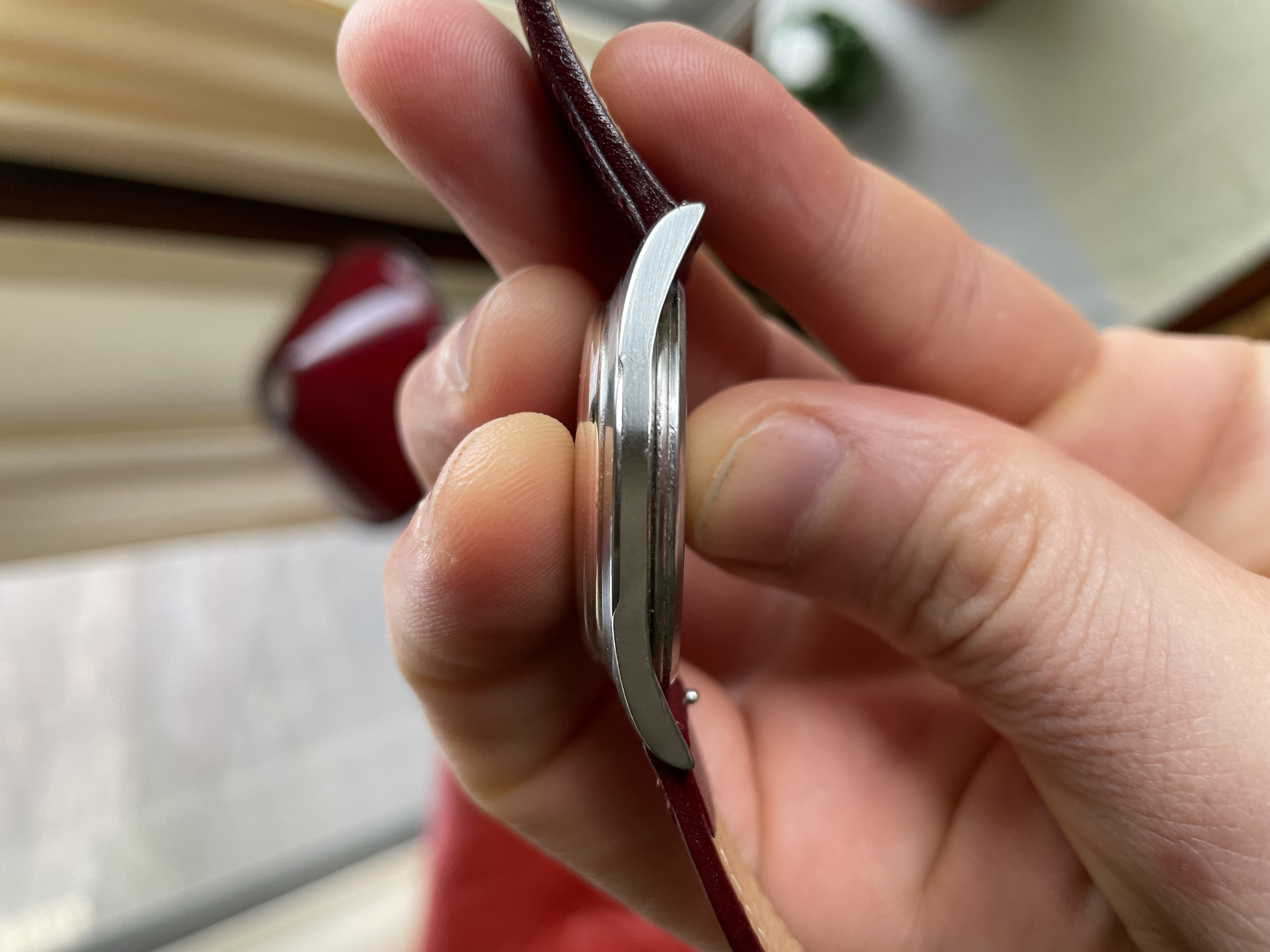 The oversized stainless steel case is 36mm and has a notable wrist presence compared with its more common 34mm brethren. Some minor dings and marks, but it is, to my eye, unpolished and honest.