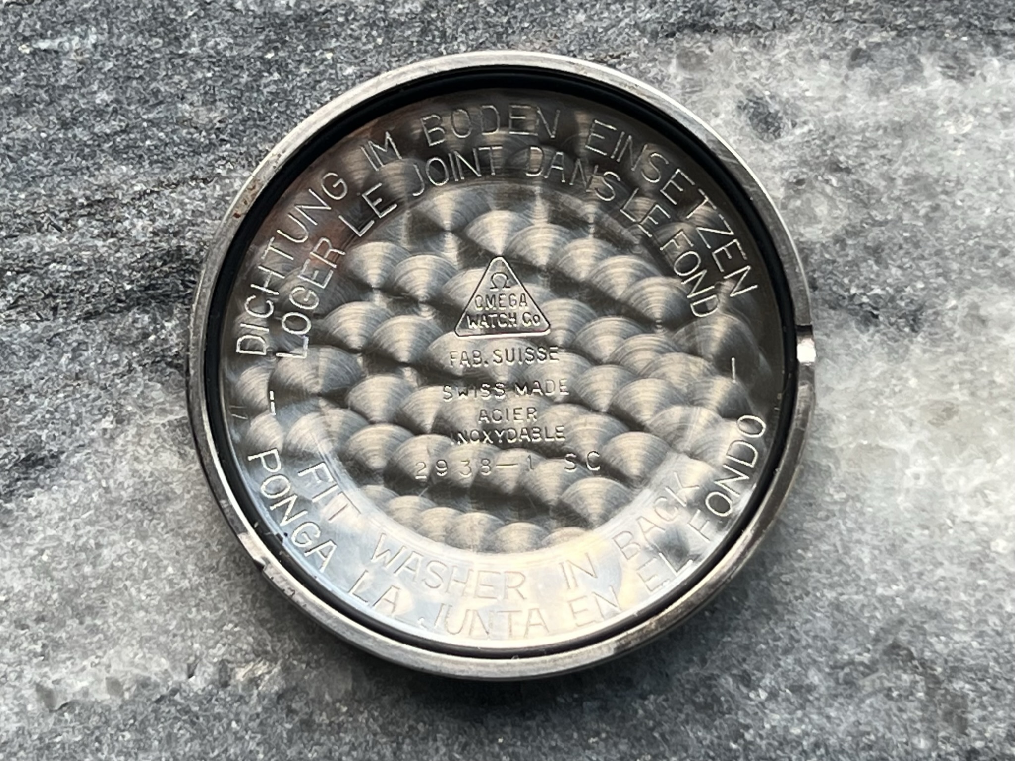 Case: Original 35,5-36mm stainless steel case in pretty sharp condition. There are some deeper scratches at the underside of the lugs, possibly from a bracelet, and some weird ones on the caseback itself, possibly from opening attempts. It hasn’t seen much polishing, I’d say, and is in an overall very wearable and nice condition. Waterproof writing on the caseback is fully intact, what's also intact is a watchmakers mark on back of the bottom left lug...