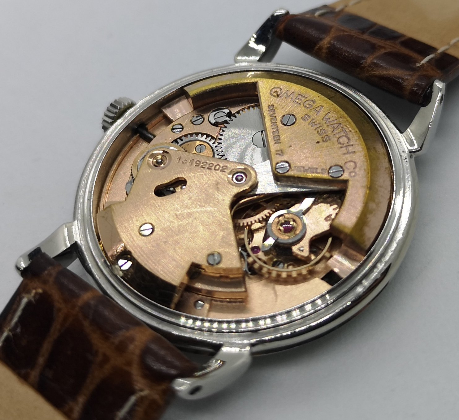 It is described as Omega Seamaster hammerautomatic, 1950, Cal 342