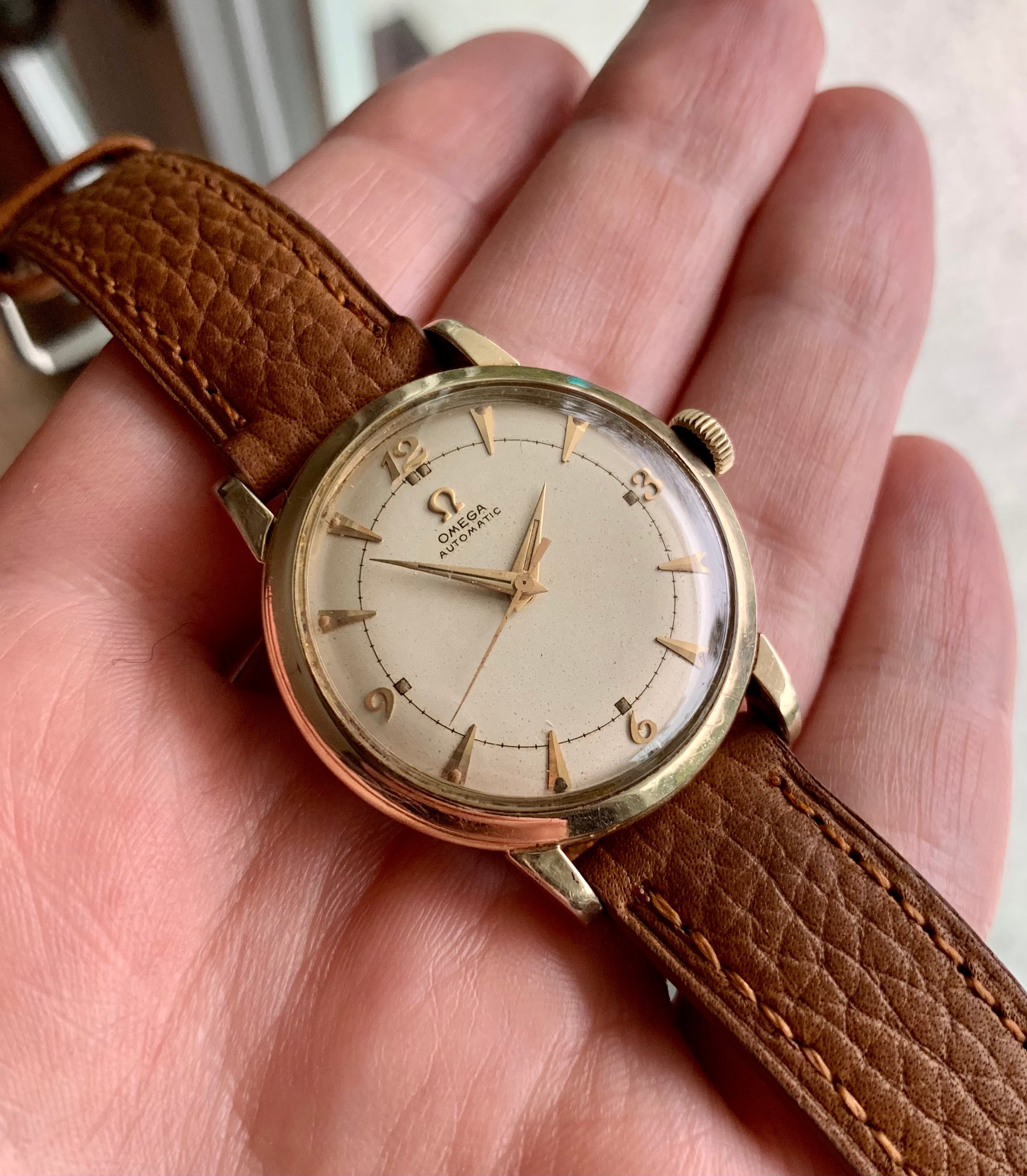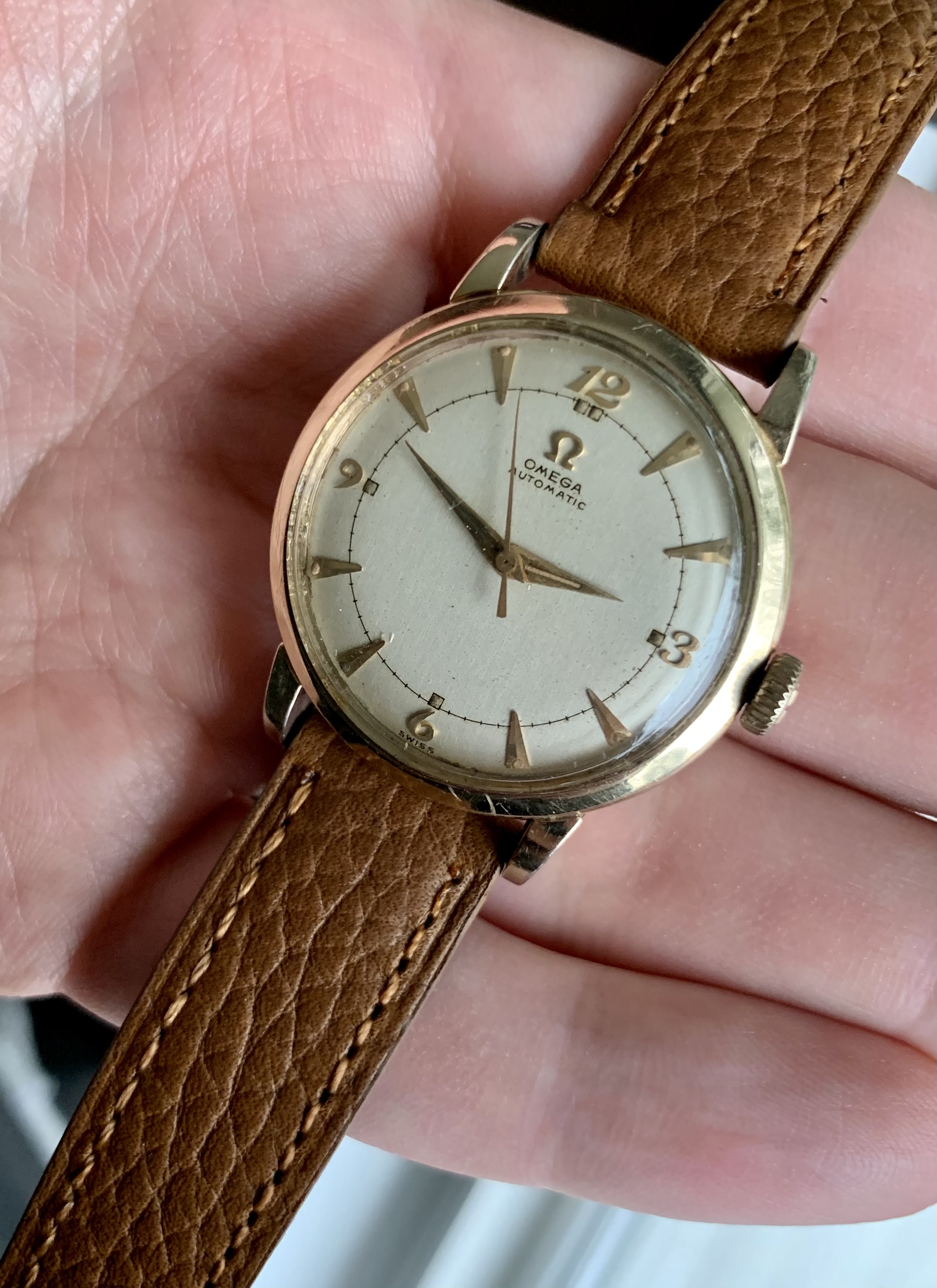 Very cool original and unrefinished dial with applied dagger and breguet hour markers. Very well preserved for a ~70 year old watch.