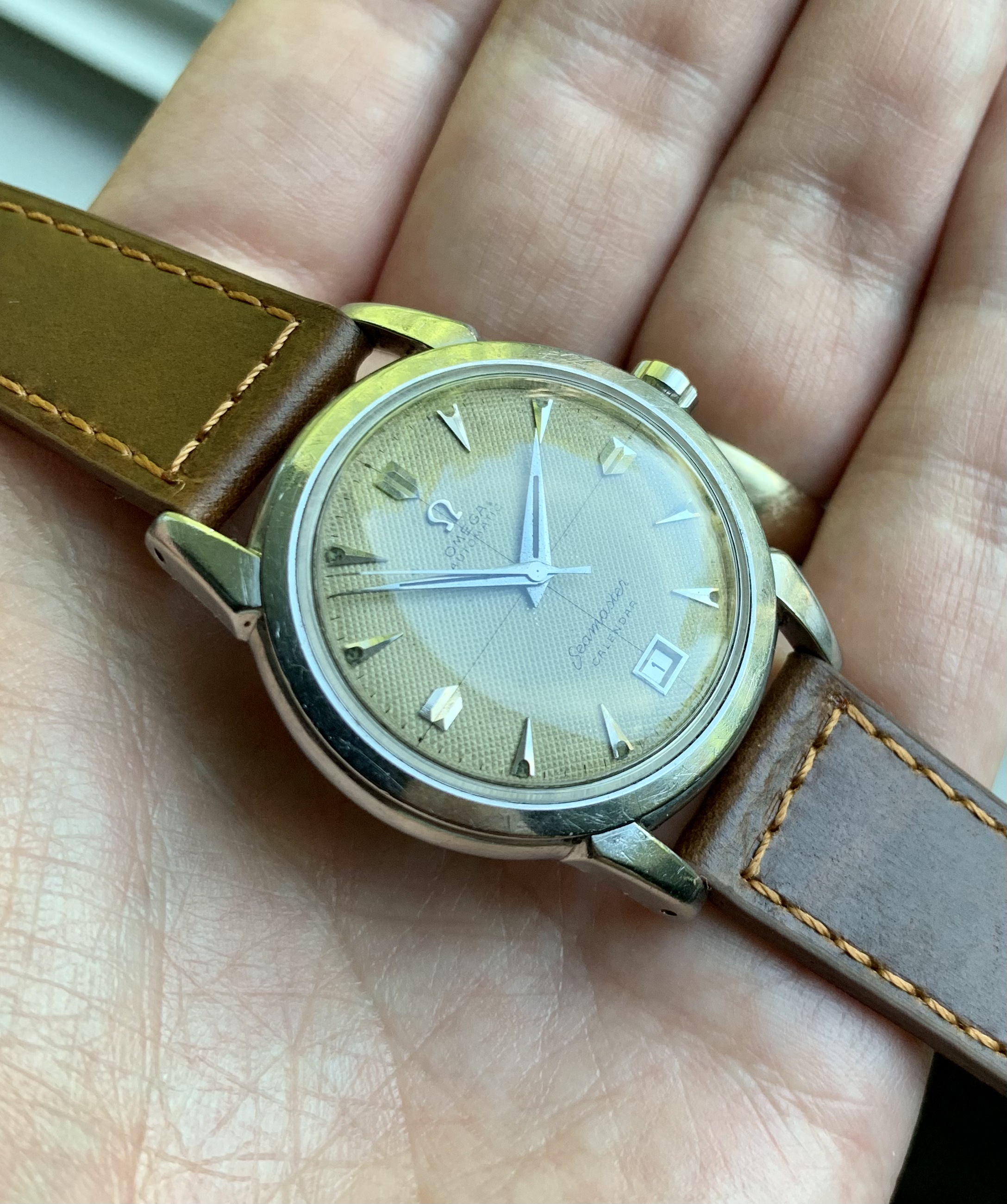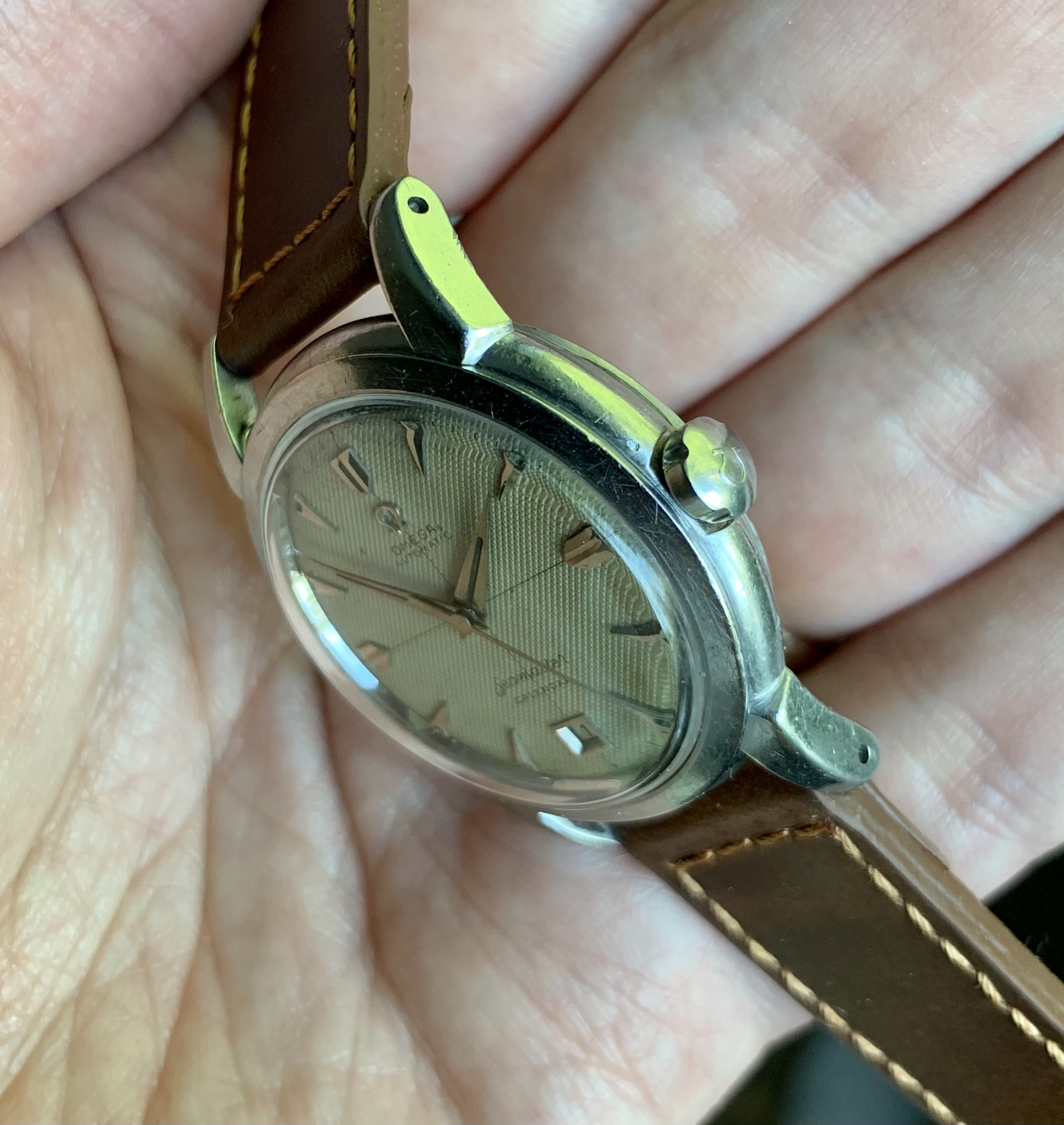 What sets this watch apart is the awesome waffle texture dial with crosshairs and a date feature at 6 o’clock. Many of these models that I’ve seen have heavily degraded or refinished dials. This particular dial has developed a warm patina and looks great IMO.
