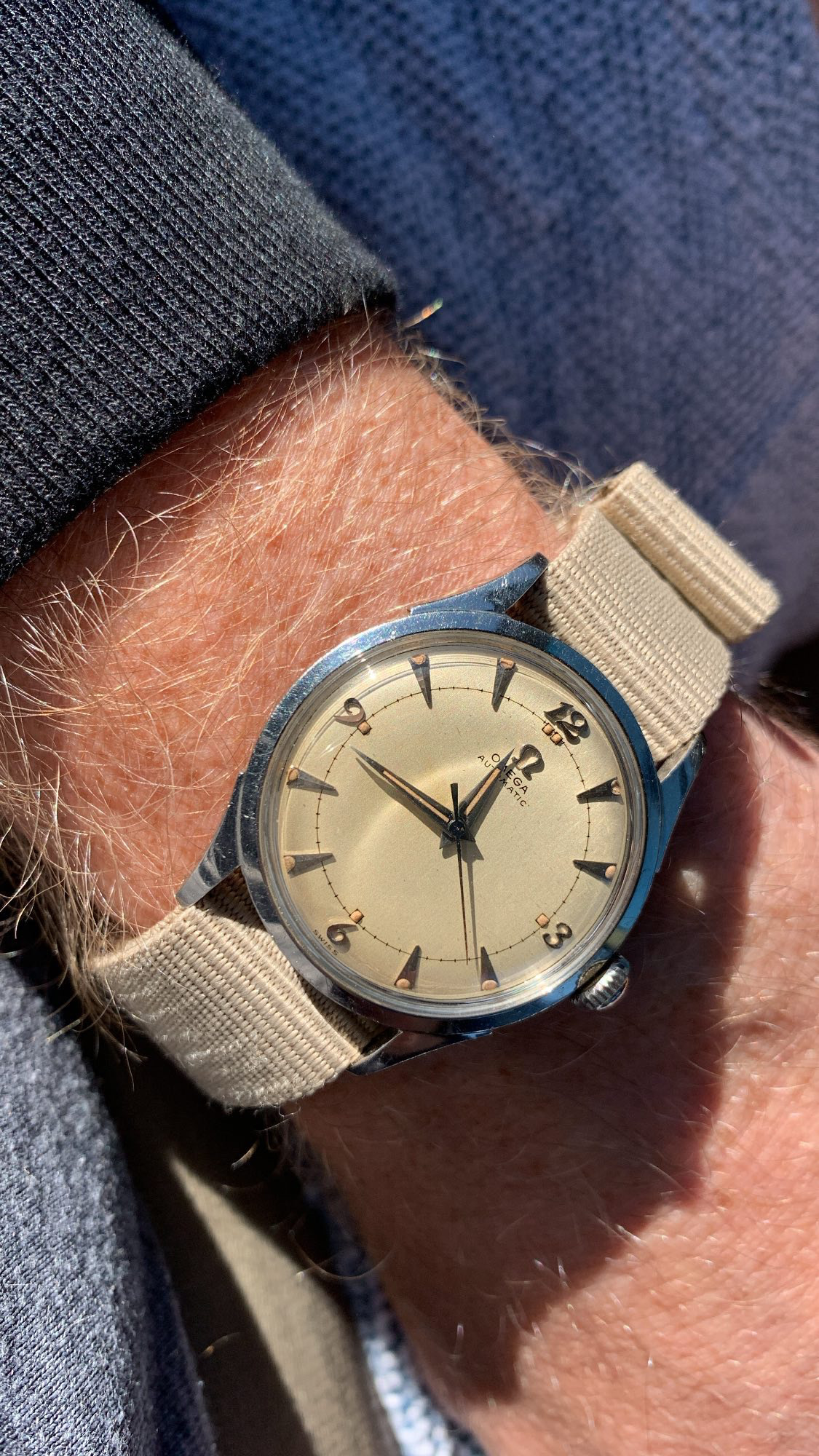 ·Up for sale is one of the nicest 50’s Omegas I’ve ever come across. This one is incredible. The dial is FLAWLESS. The LUME on the dial and hands is drool worthy. The steel case is in good shape. The bumper movement is clean. Breguet numbers! ENJOY!