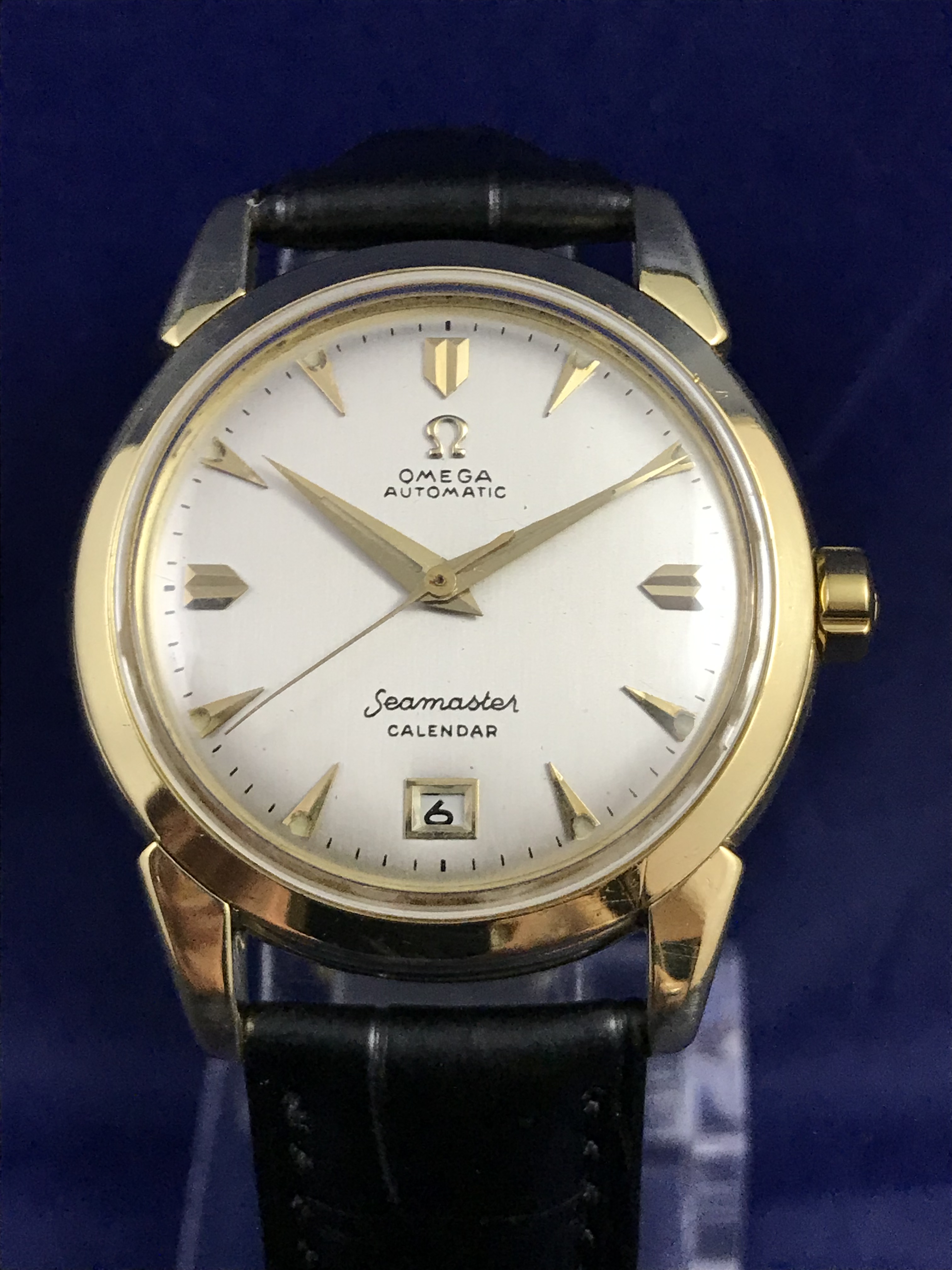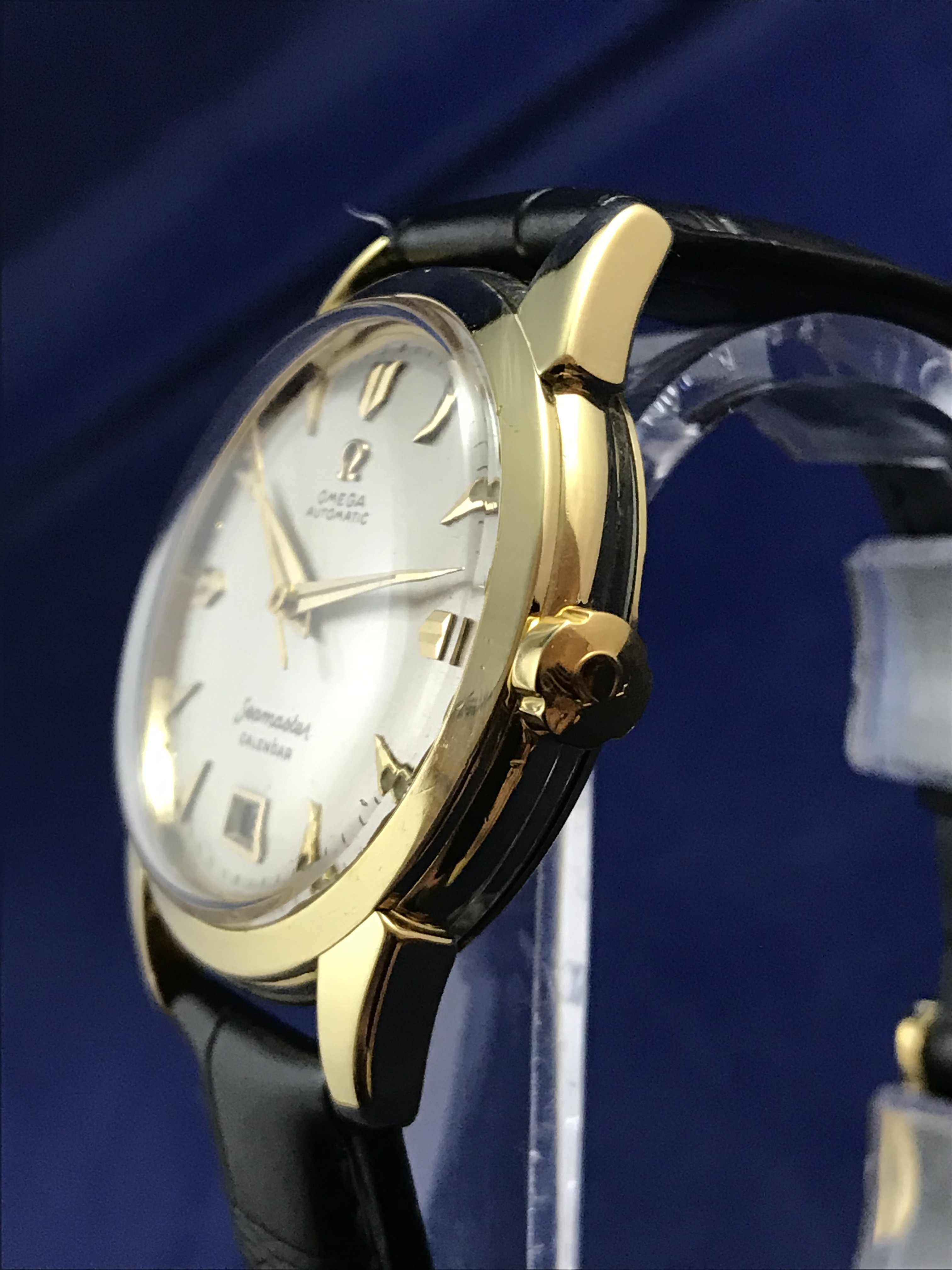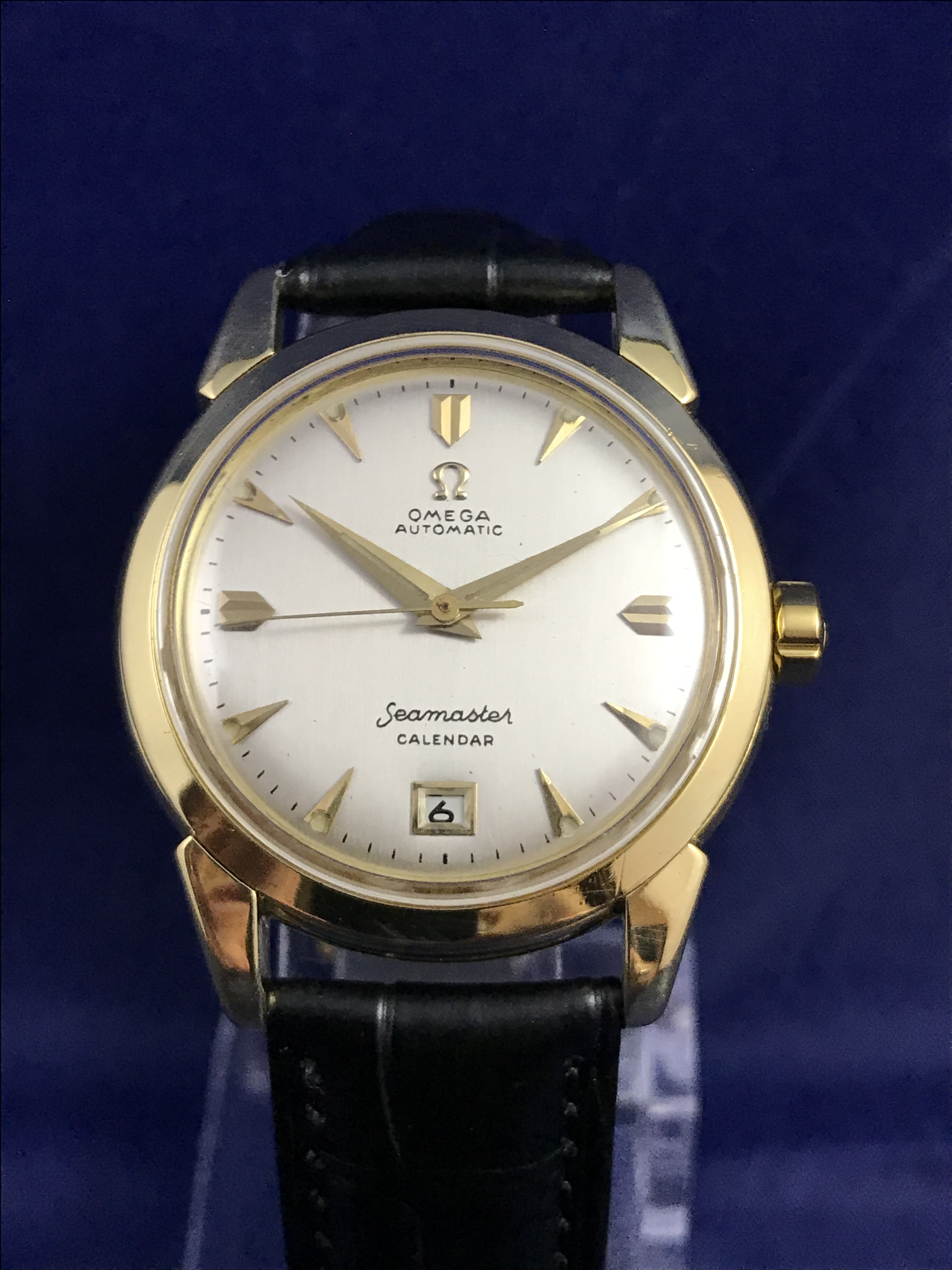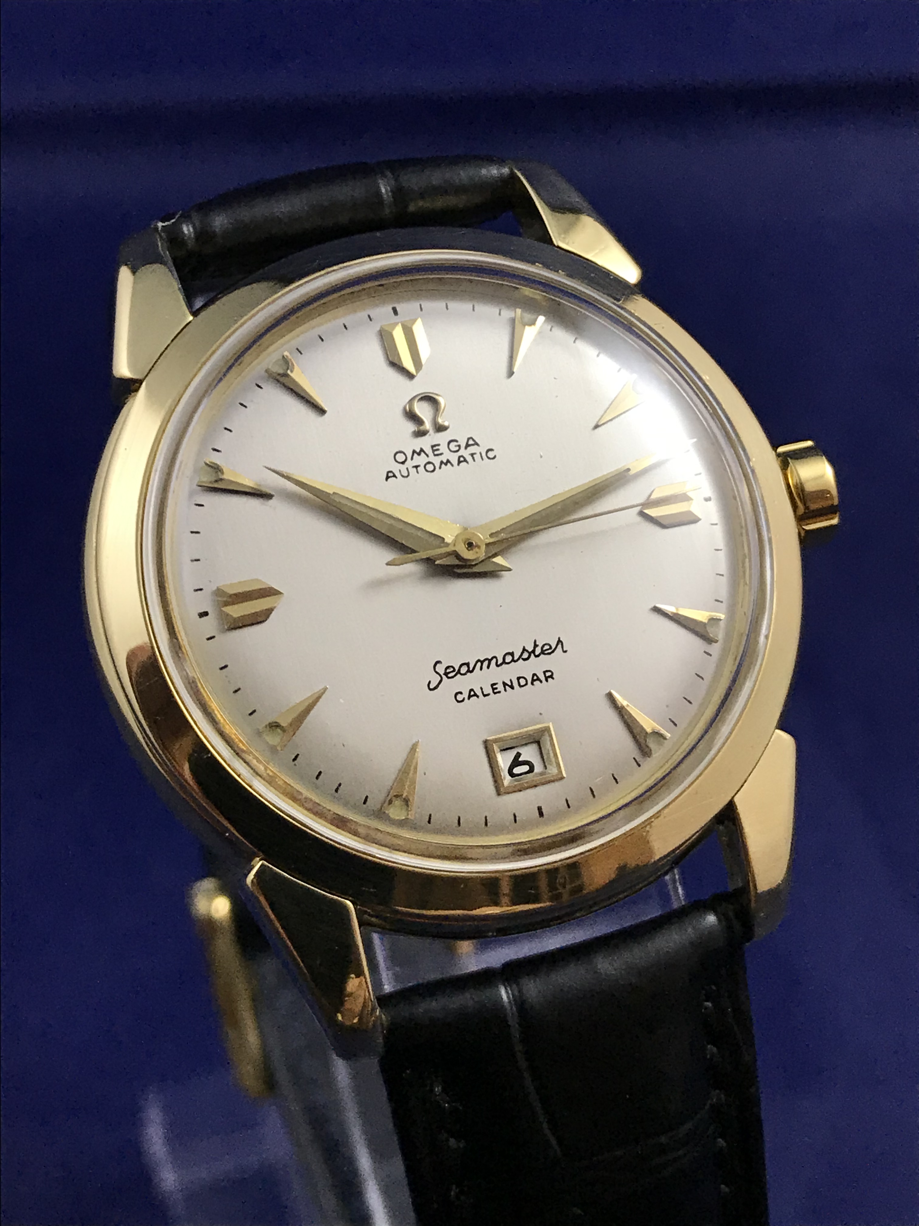 ·1952 Omega Seamaster Calendar Automatic 18k Yellow Gold watch for sale. This superb timepiece has just been serviced and runs perfectly on time.