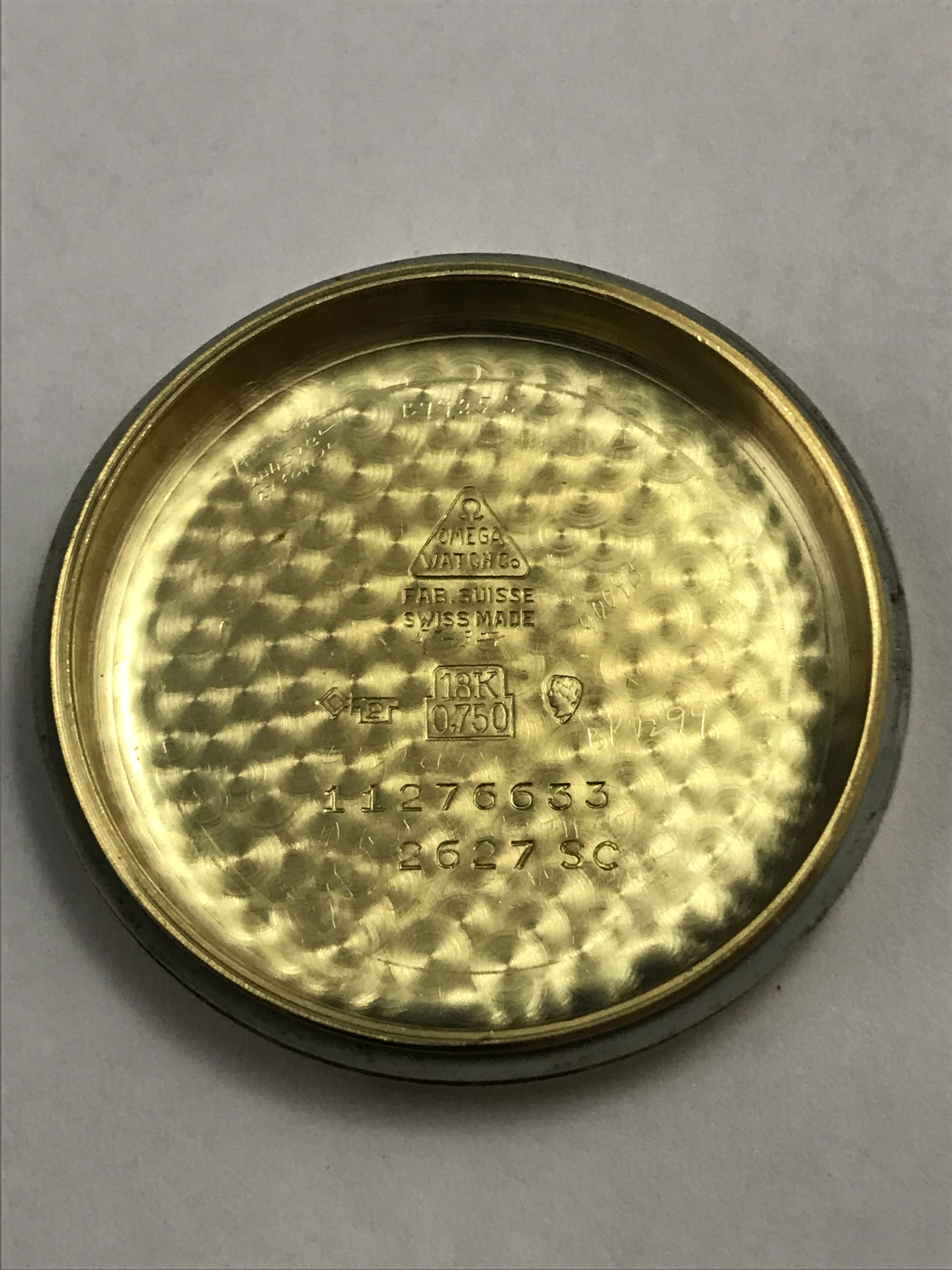 Hands & crown: original Omega dauphine hands and Omega crown;