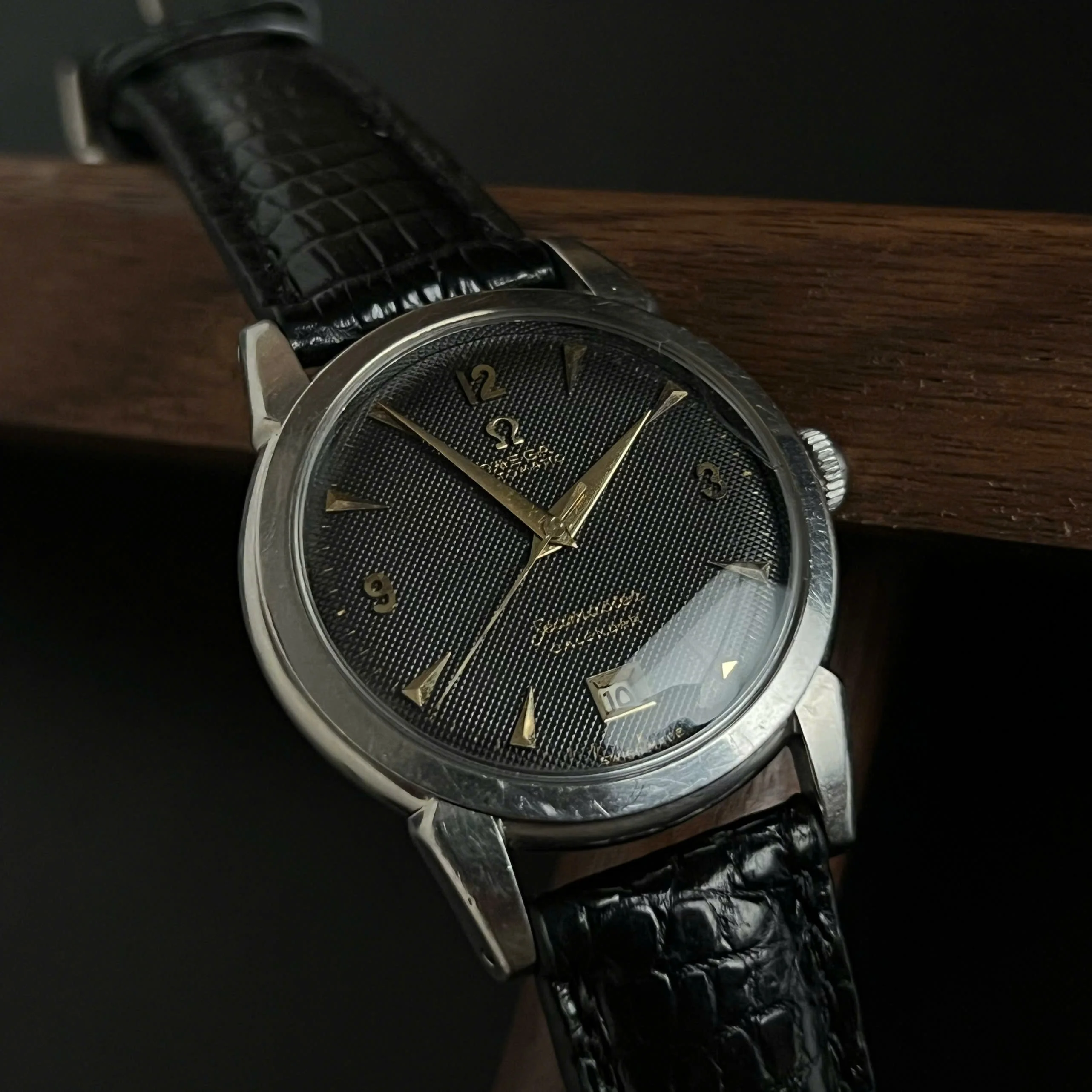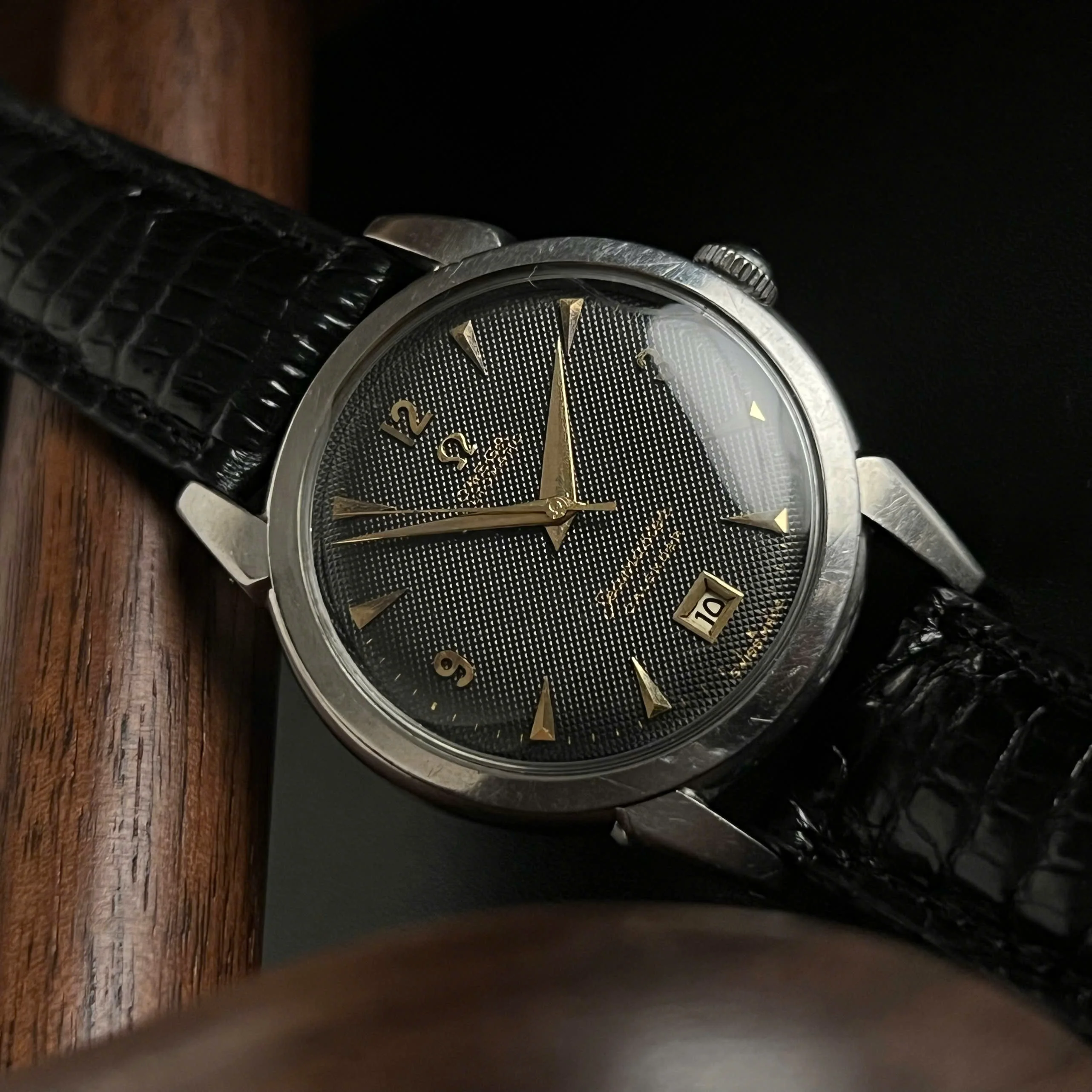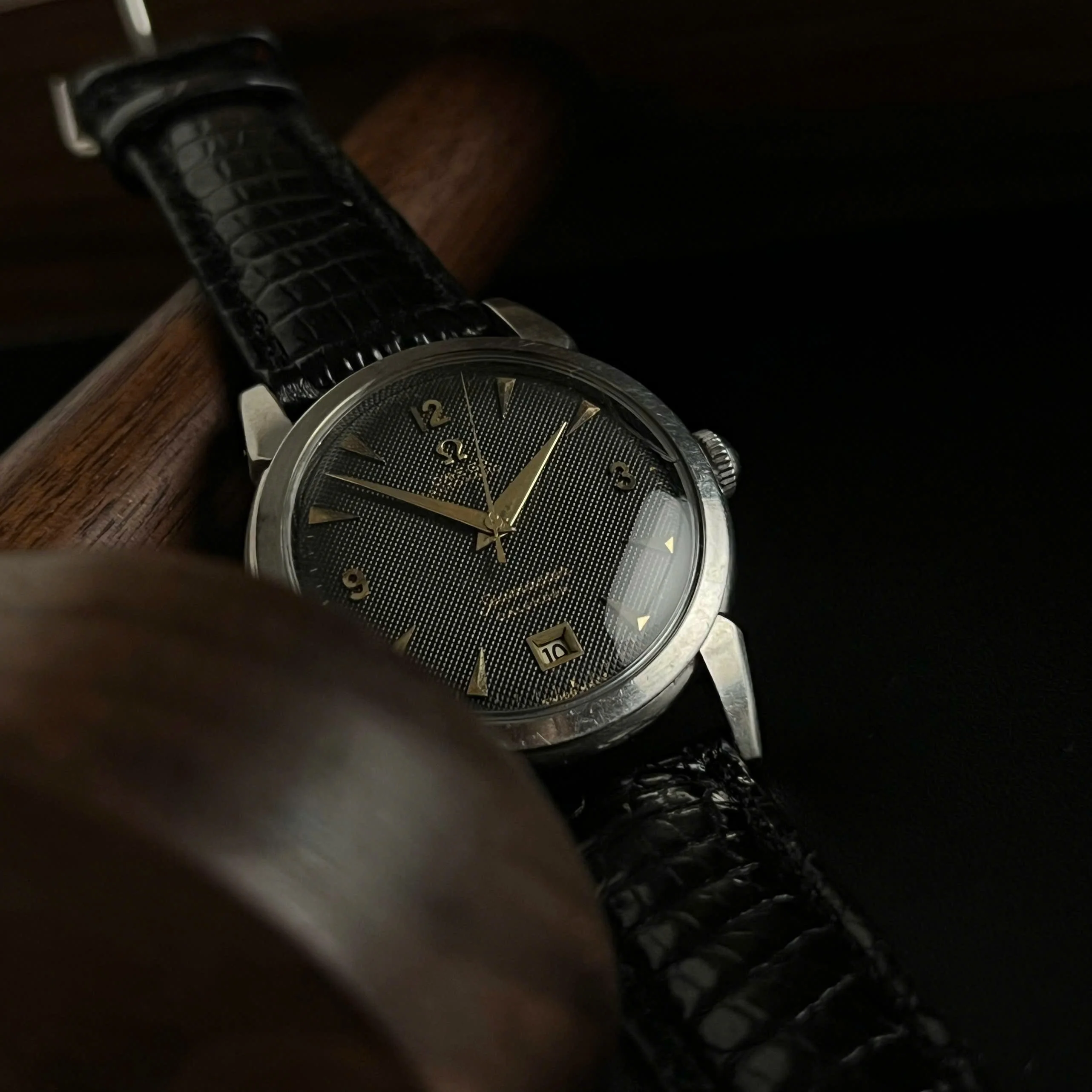 - Dial: Original black honeycomb dial with a special 'date at 6' feature. The dial is in excellent condition. Made over 70 years ago, yet still very much in fashion today.