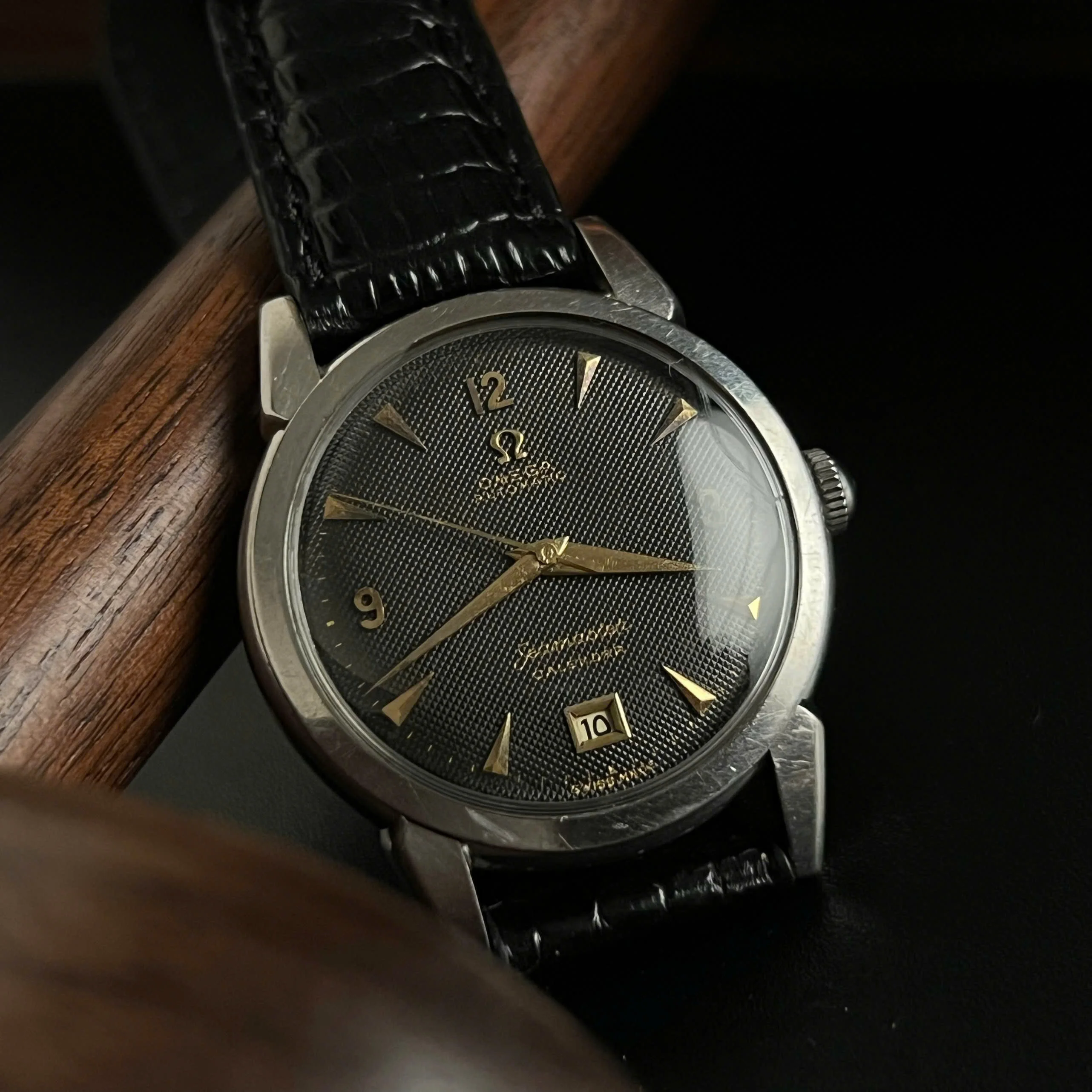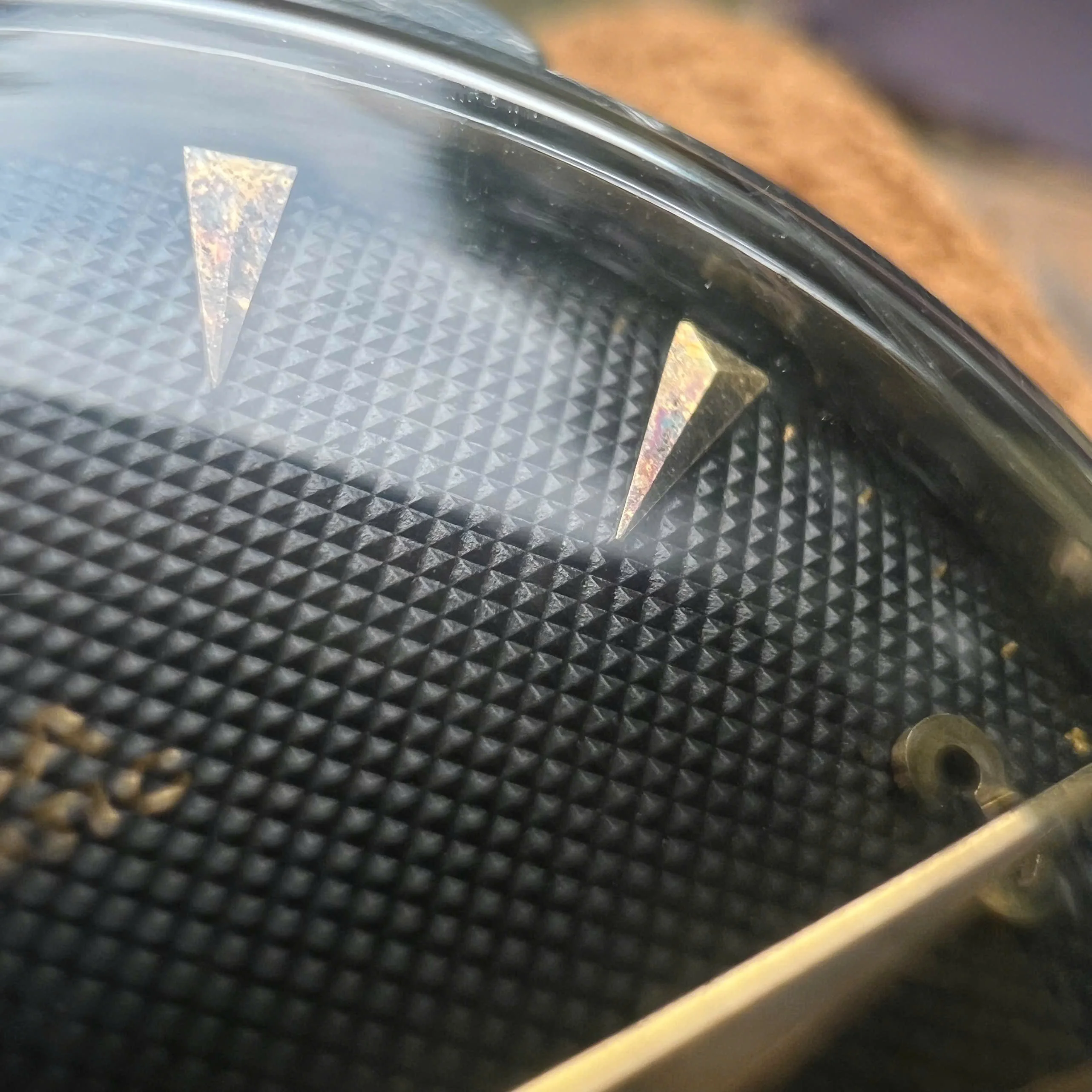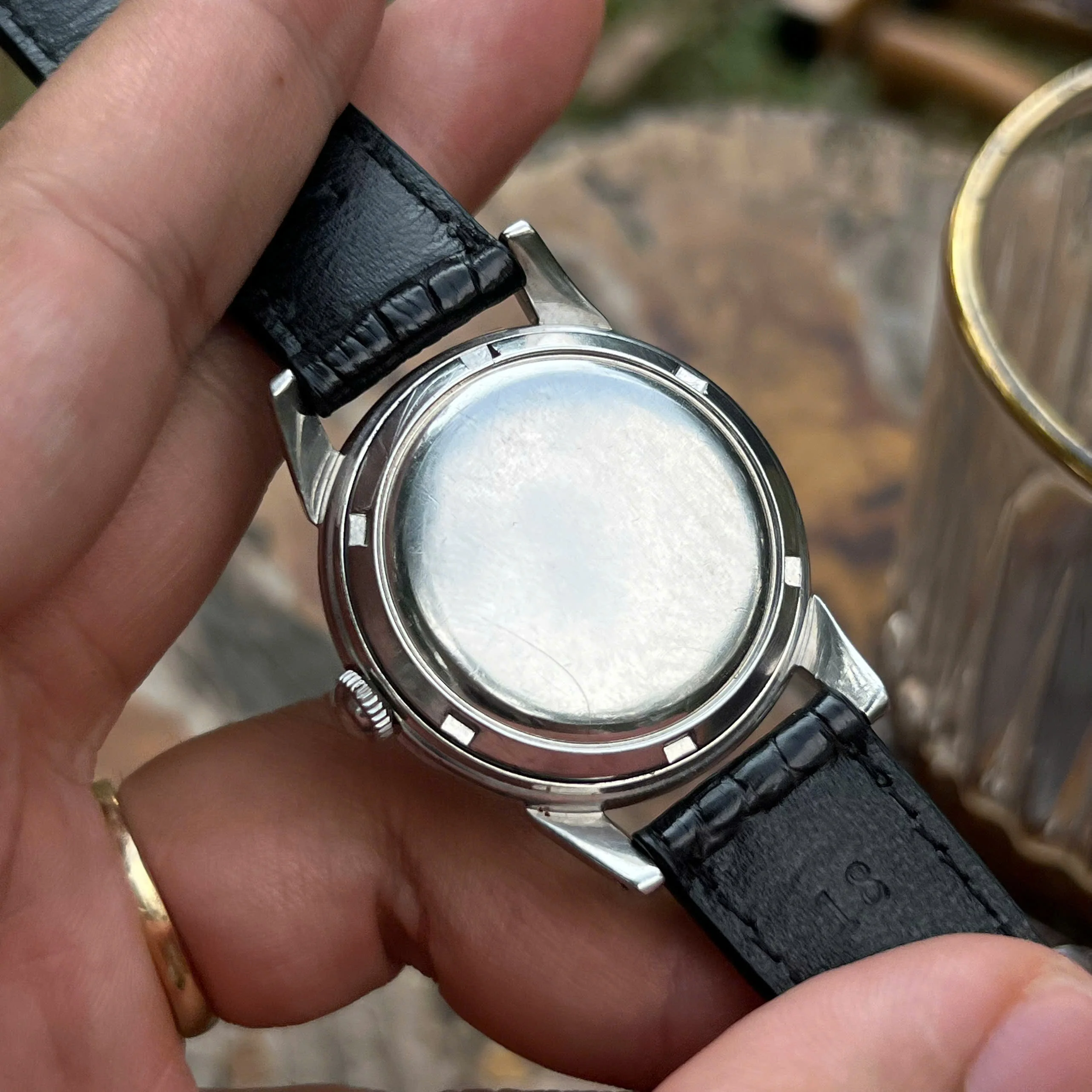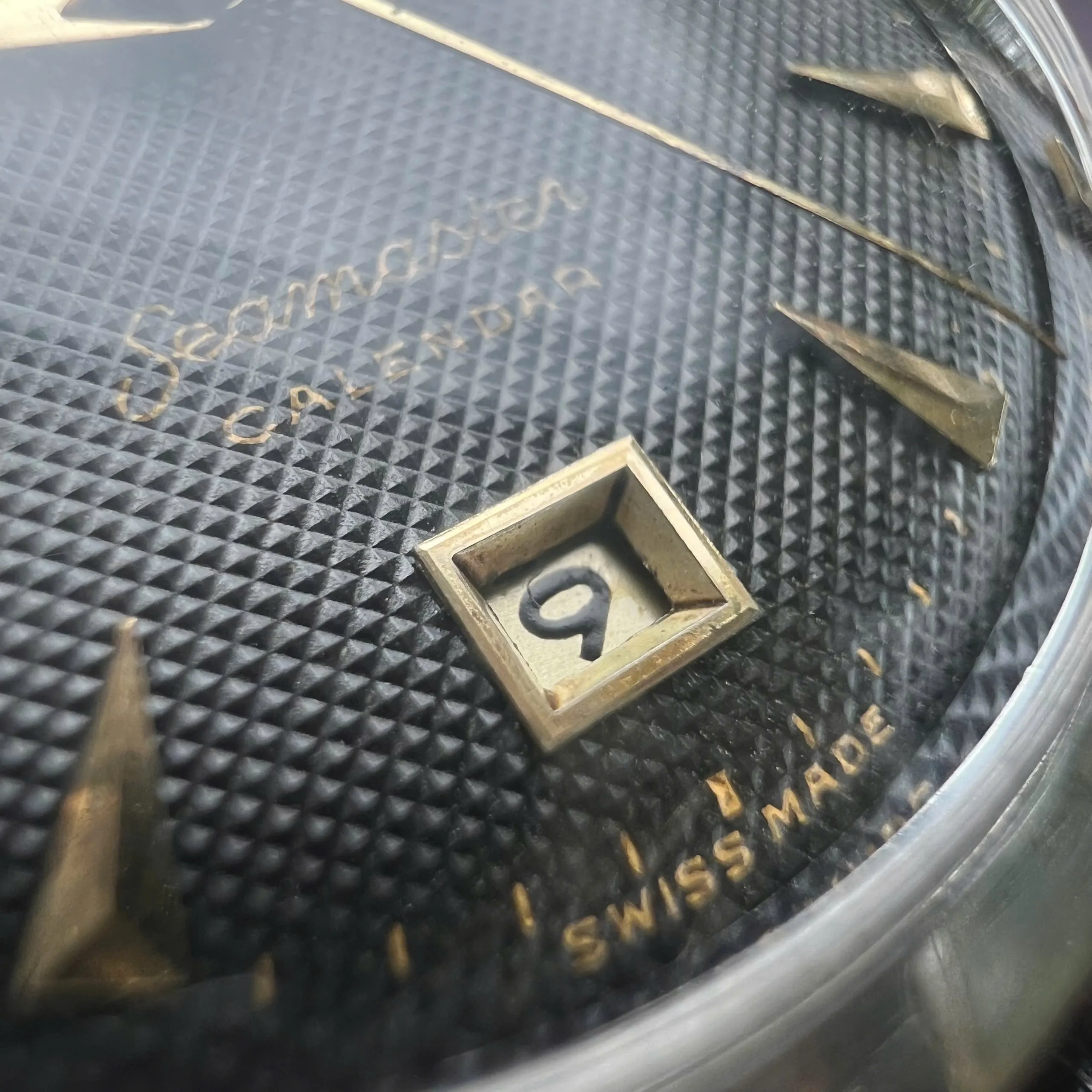 - Dial: Original black honeycomb dial with a special 'date at 6' feature. The dial is in excellent condition. Made over 70 years ago, yet still very much in fashion today.