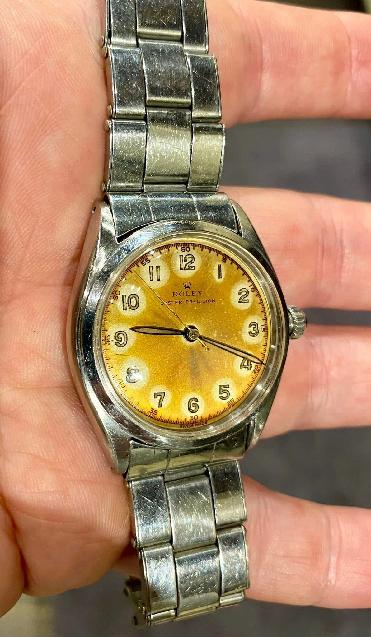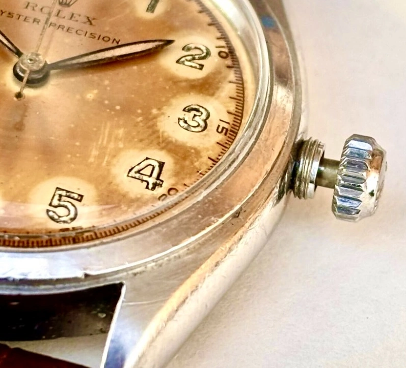 We can see faint radium burn from the hands around the dial (at 6 and ten) but the numbers have escaped any deterioration.