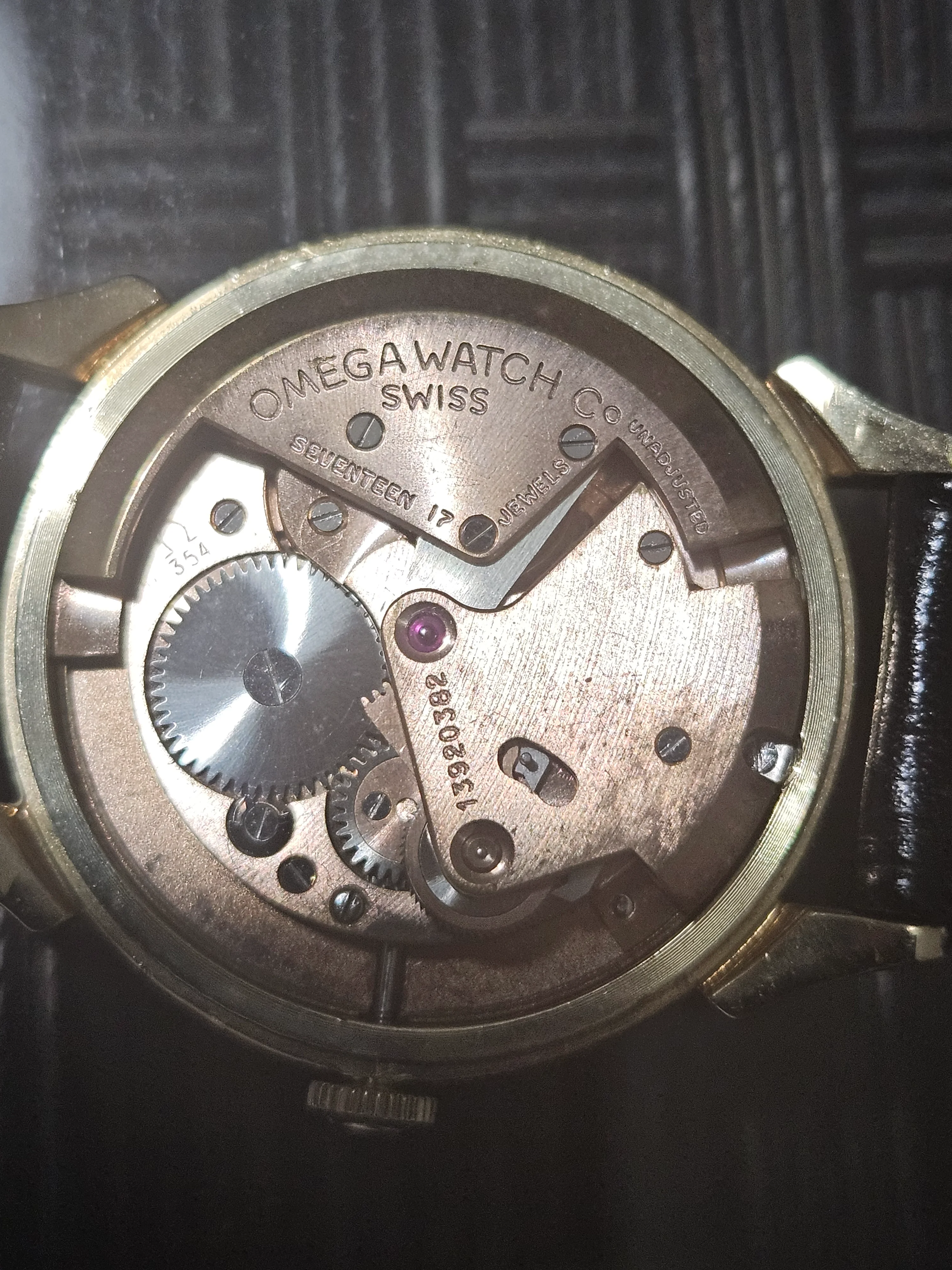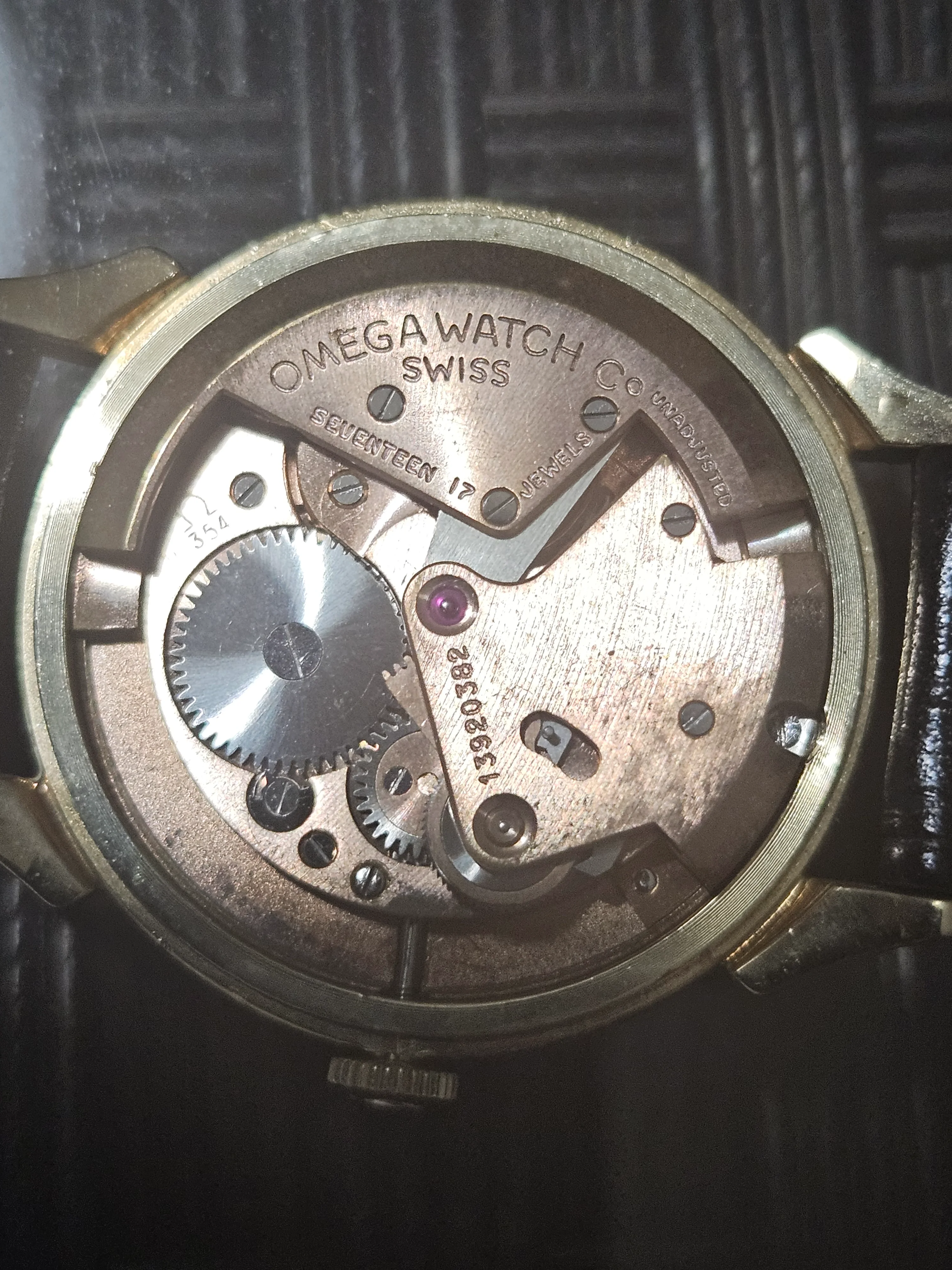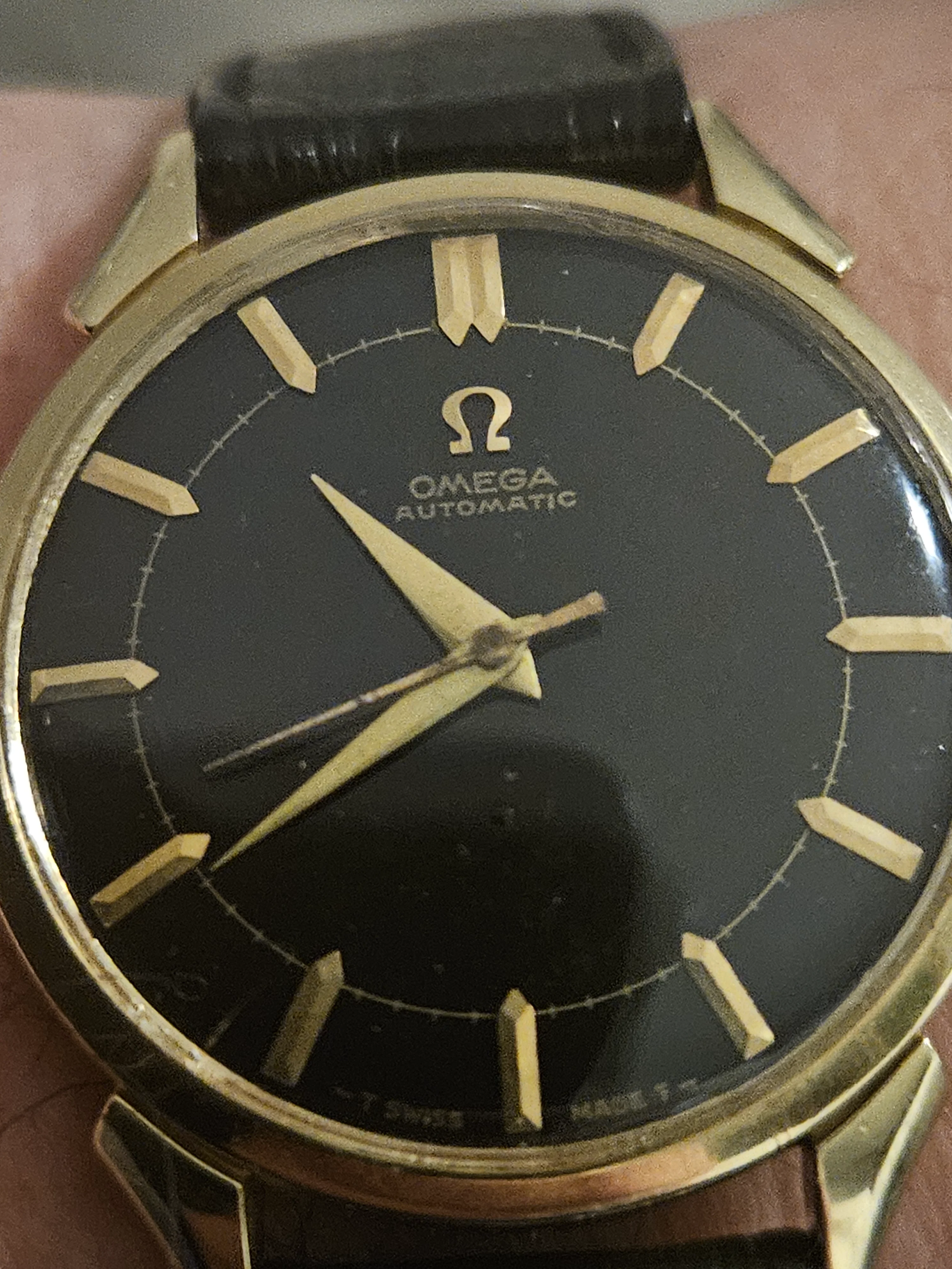 ·Recently picked up an early-1950s Omega Automatic bumper, powered by the cal. 354 (17 jewels) with a serial dating to ~1952–53. The watch is housed in a solid 14k U.S.-market case and fitted with a black dial with applied gold markers and dauphine hands. The movement appears original and unmolested, currently running about –2 minutes/day, with low amplitude consistent with an overdue but routine service. A nice period detail is the Omega-signed strap and original Omega gold buckle, which rarely survive together. I’m not fully certain about the dial’s originality and would welcome thoughts from the group, as the overall watch presents as honest and well-matched for the era