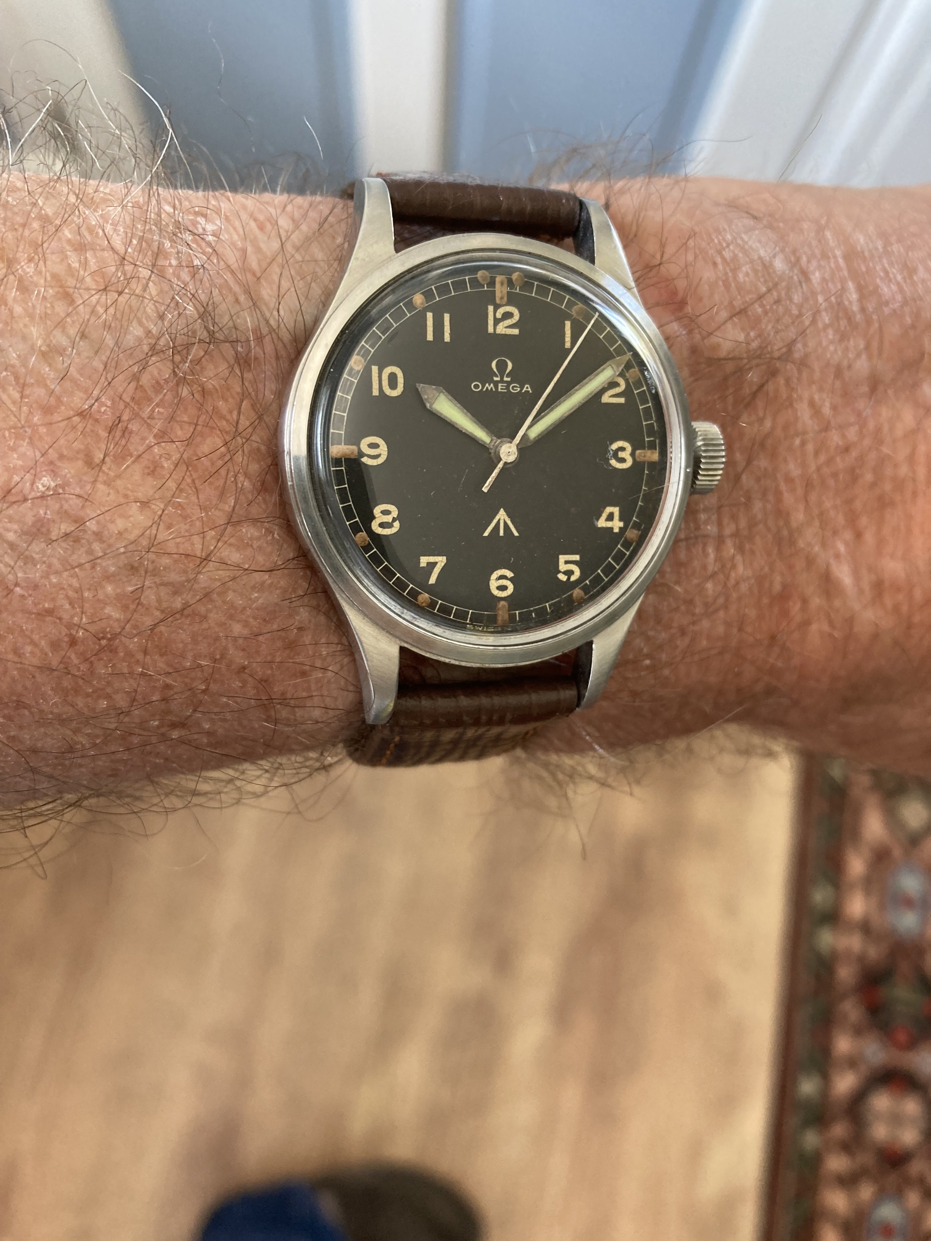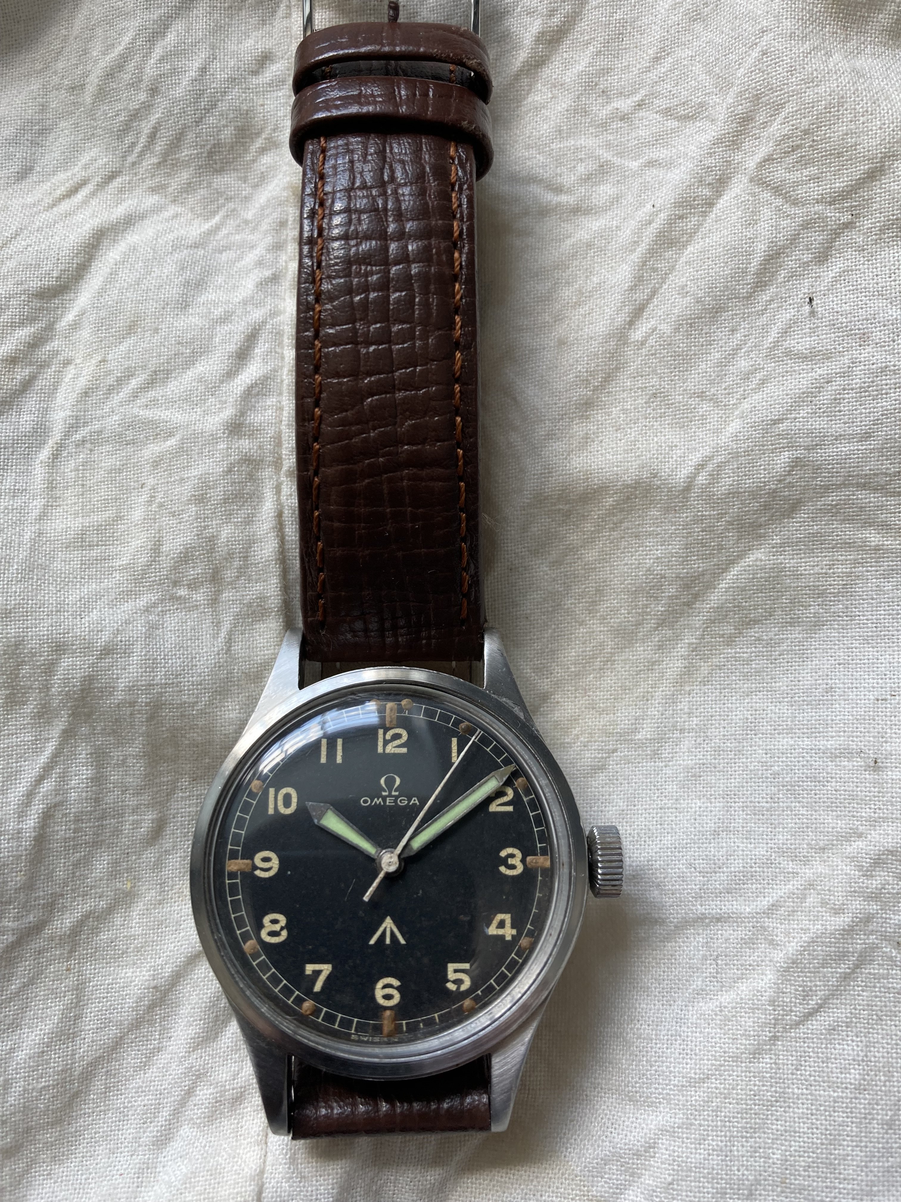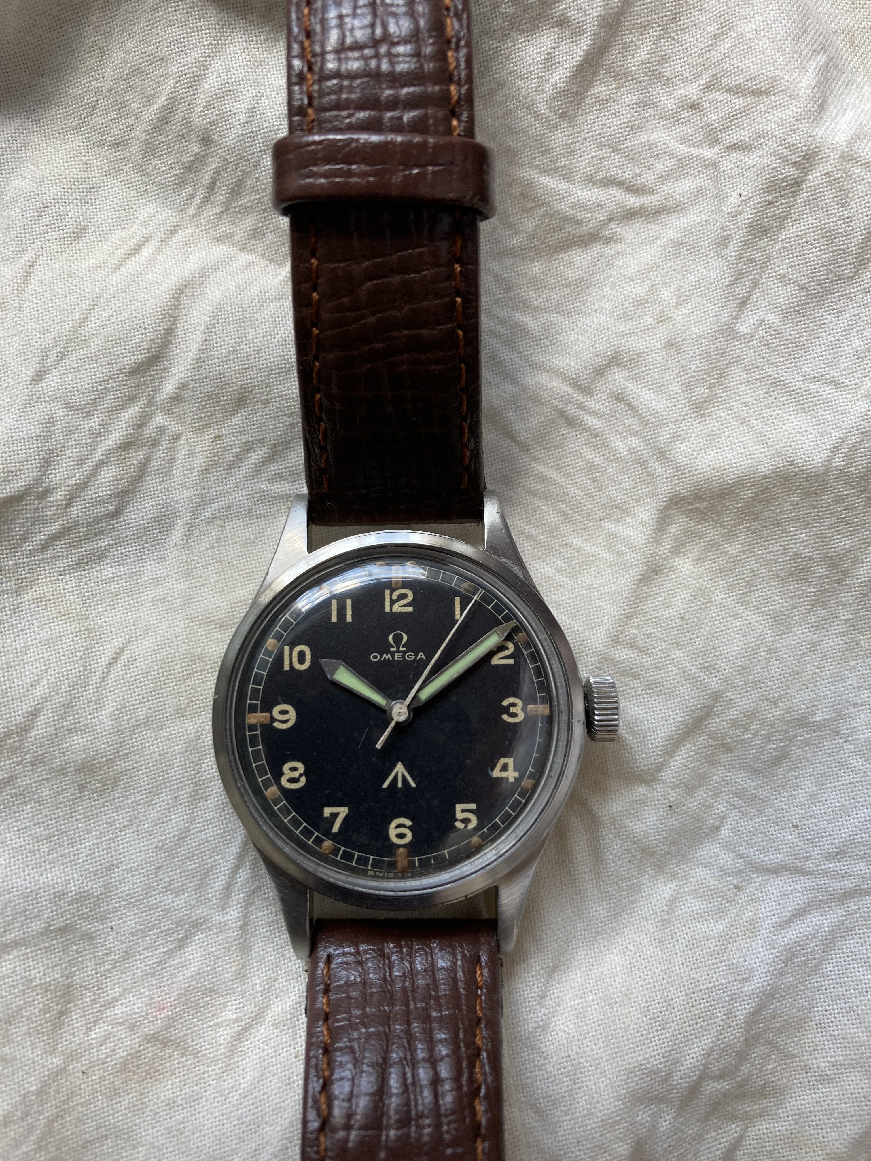 A 1953 Omega RAF thin arrow Pilot/Navigator watch