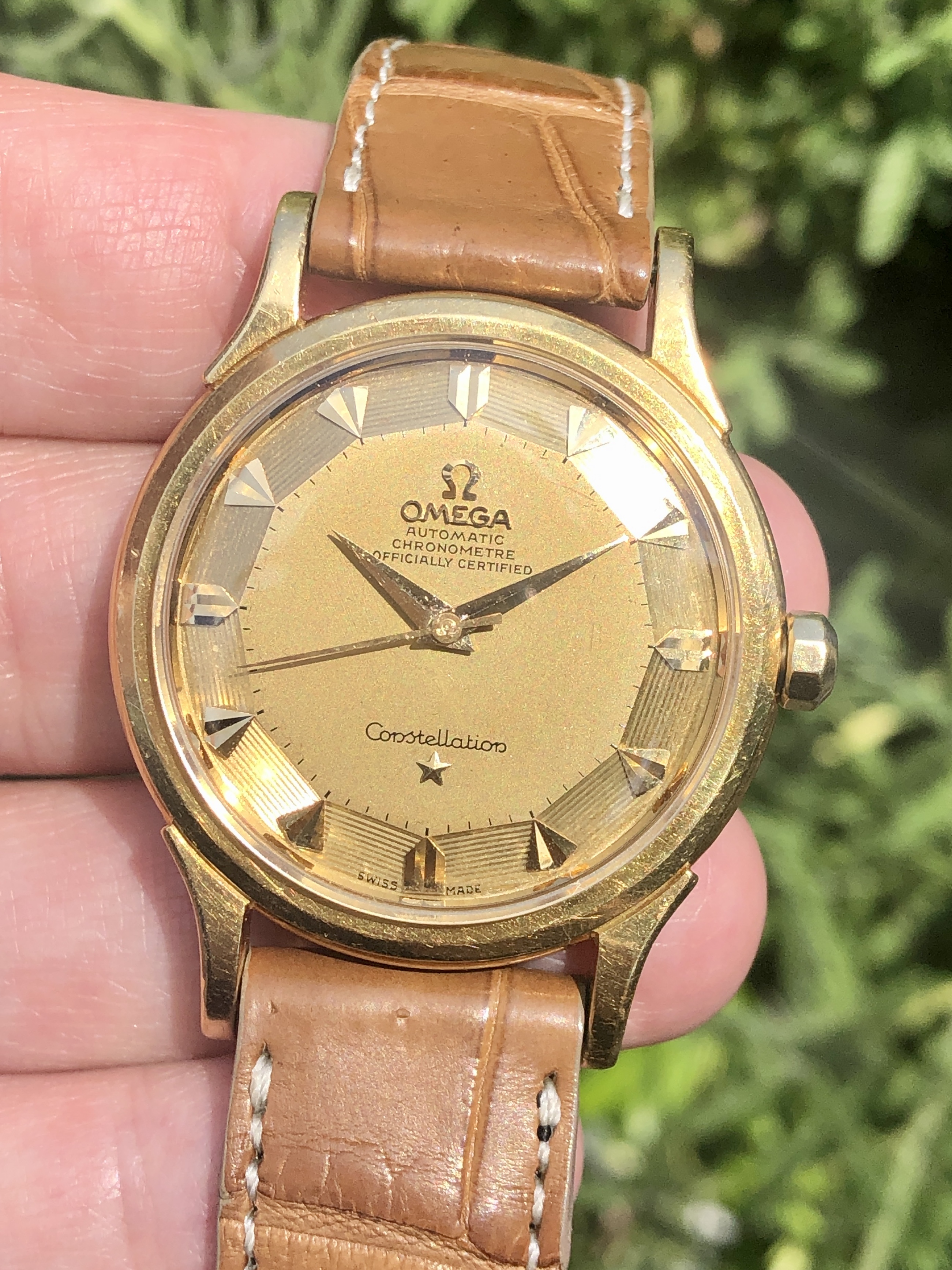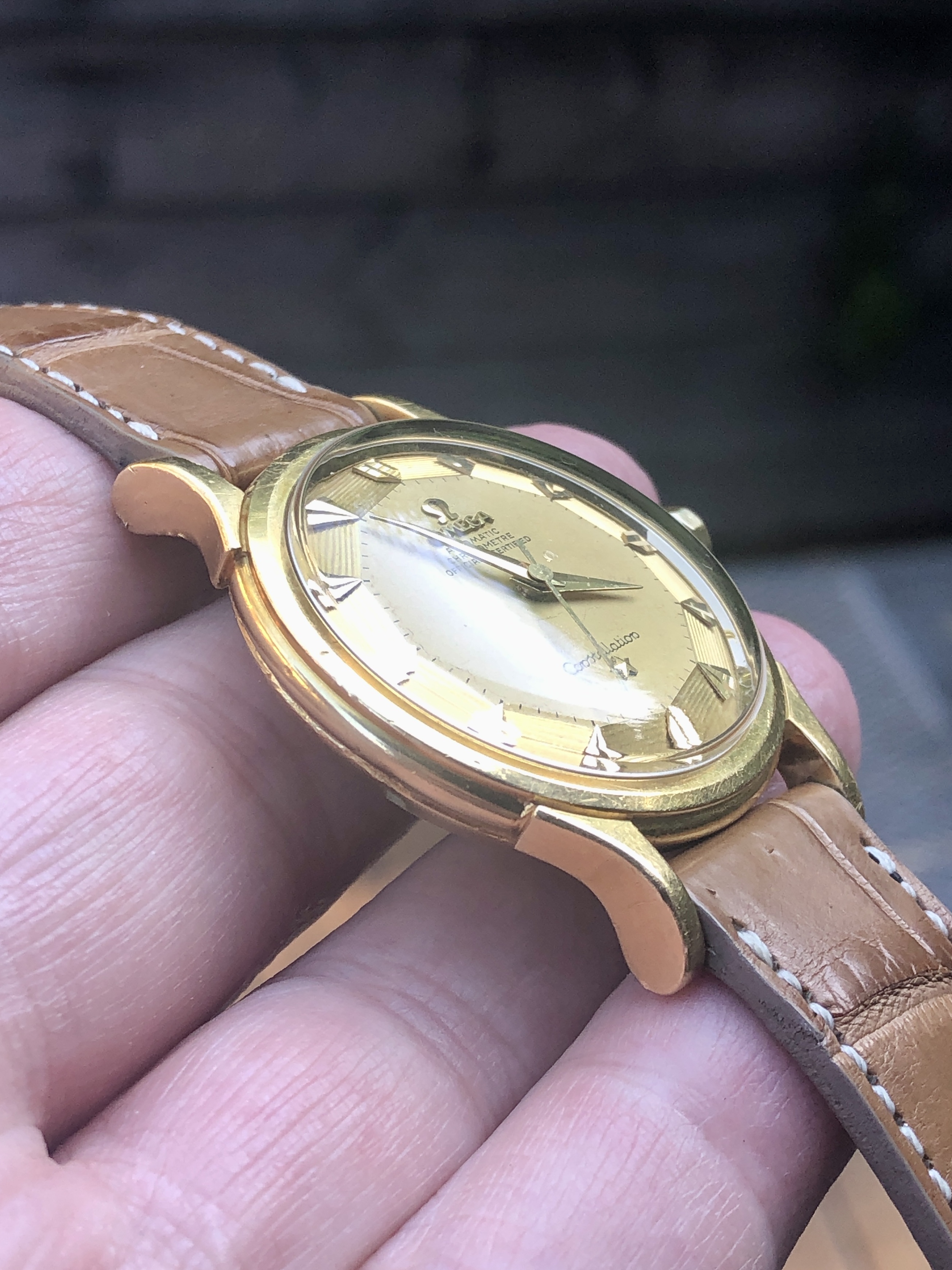 I'm selling a 1954 18K yellow gold Omega Constellation De Luxe with a stepped dial, here are the details: