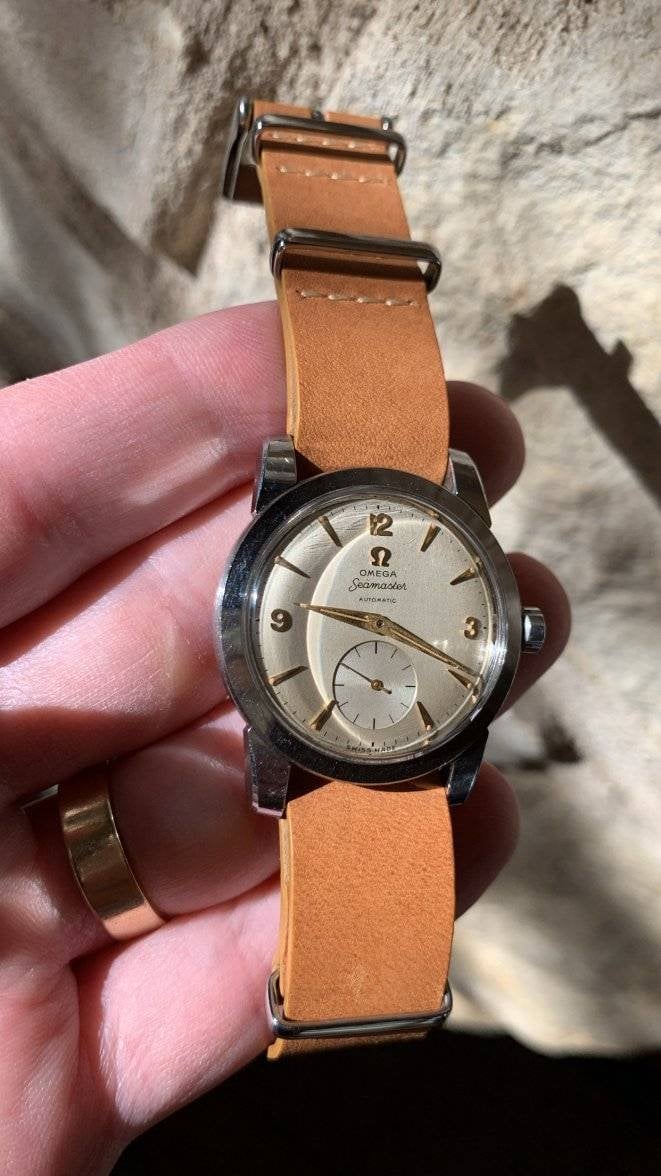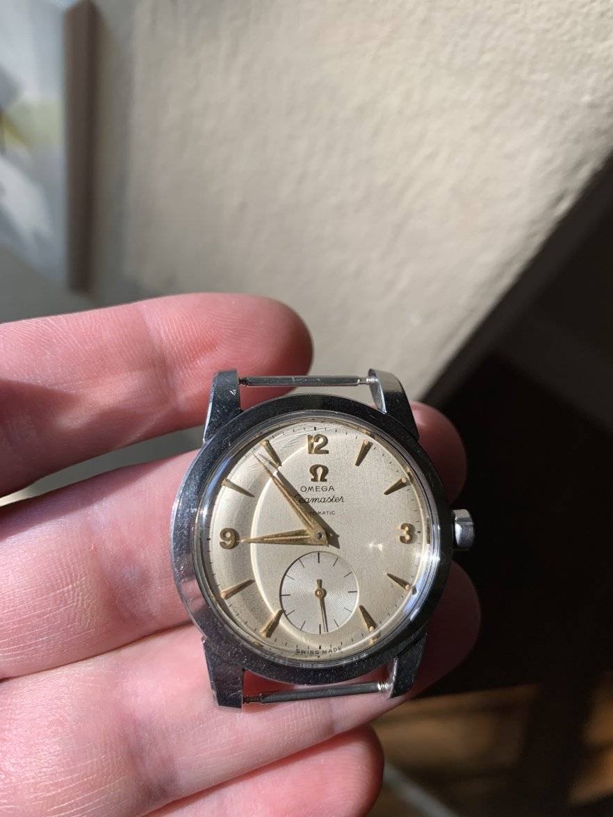 Dial: FANTASTIC all original omega silver radium seamaster dial with arabic numbers (12,3,9). Great condition of the hands/dial LUME. Mild dial patina (w/ loupe).