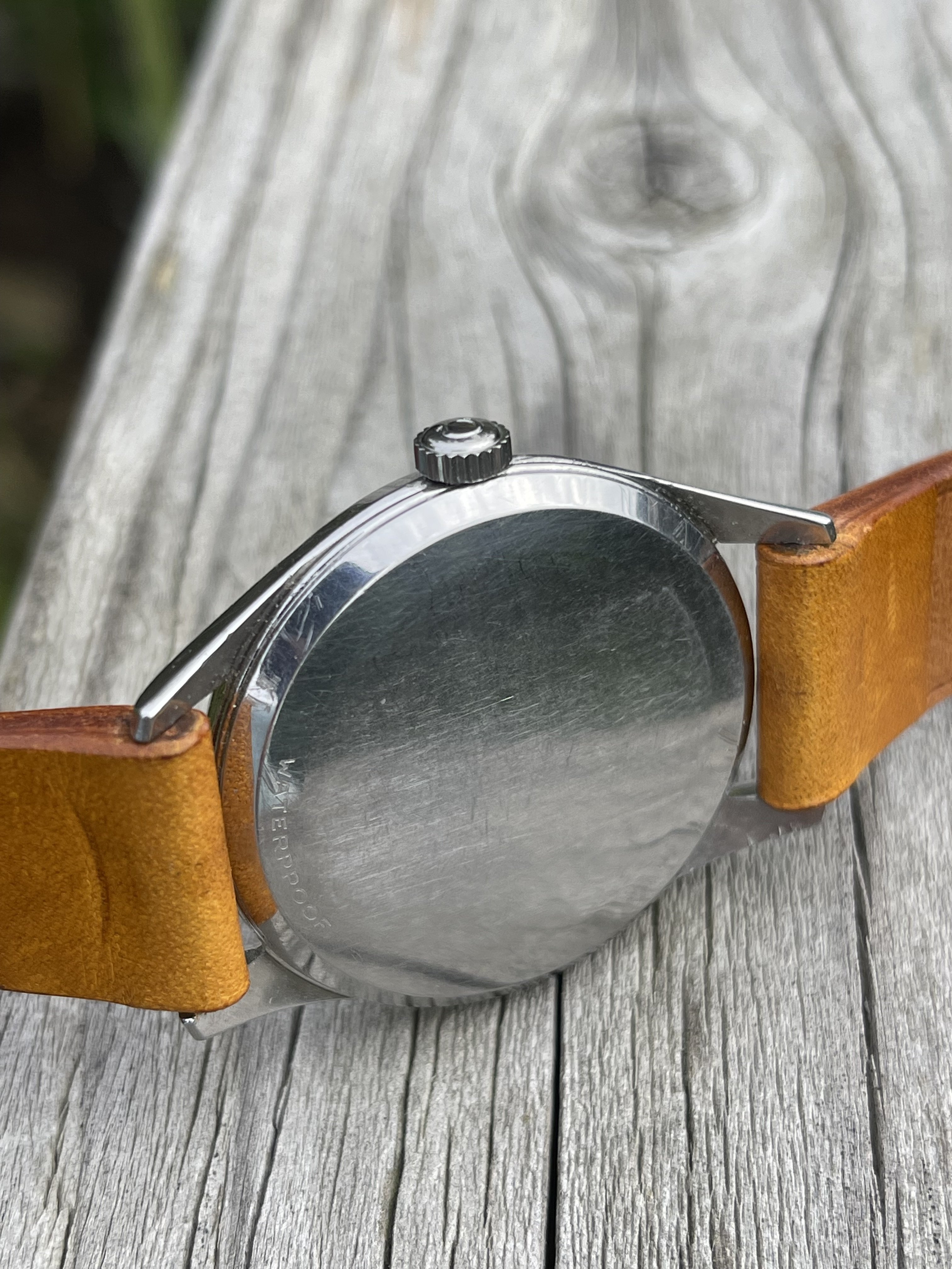 The stainless steel case is unpolished. Some will mistake the model for a 2639 but these 2791 lugs are skinnier and taller. Caseback has the legible waterproof writing. It’s got scratches here and there, please see photos.