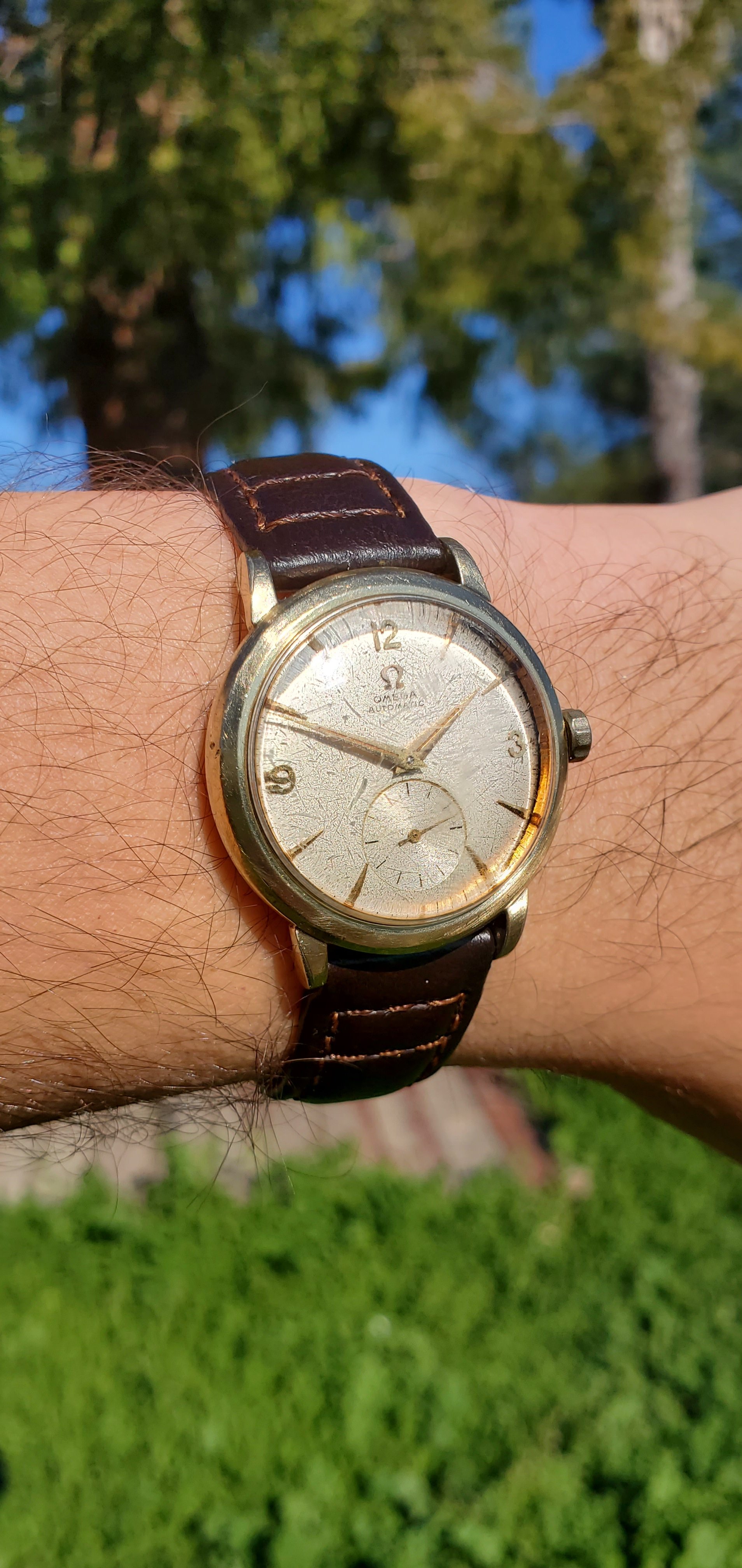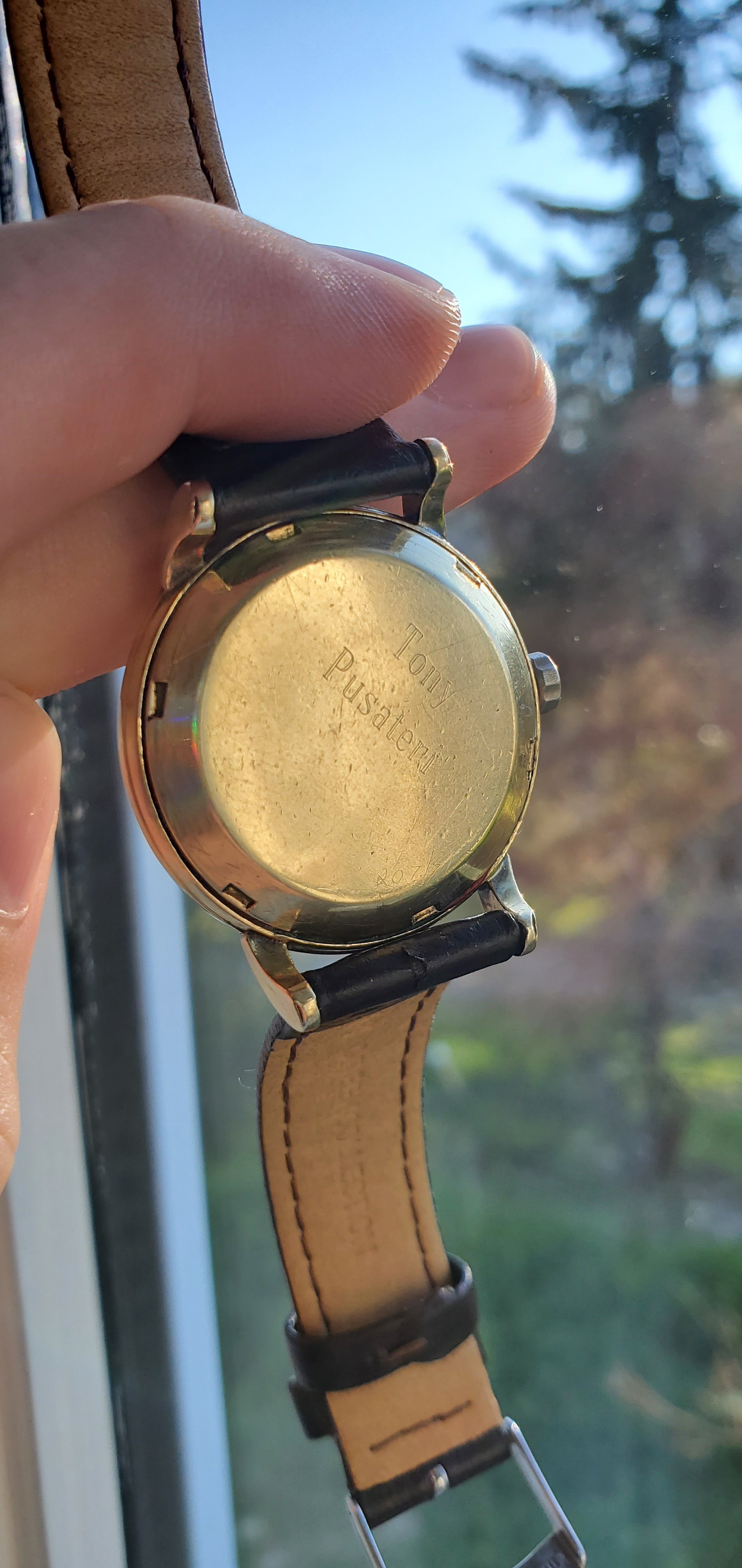 Anyways, the movement serial number is 14121101 which dates it to 1954. The caliber is 344. The inside of the case back has serial #0183075 with reference F6266. The crown for sure isn't original and I suspect the stem isn't correct for the movement either. It runs and keeps good time though. Below the 6 o'clock indice on the case it says "14K GOLD FILLED ROSS".