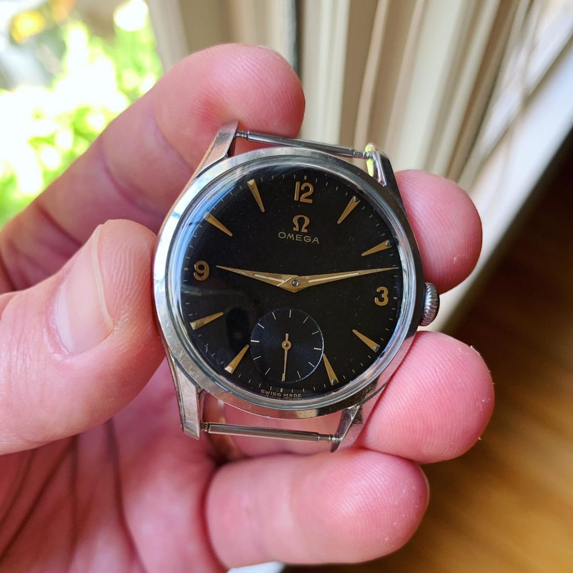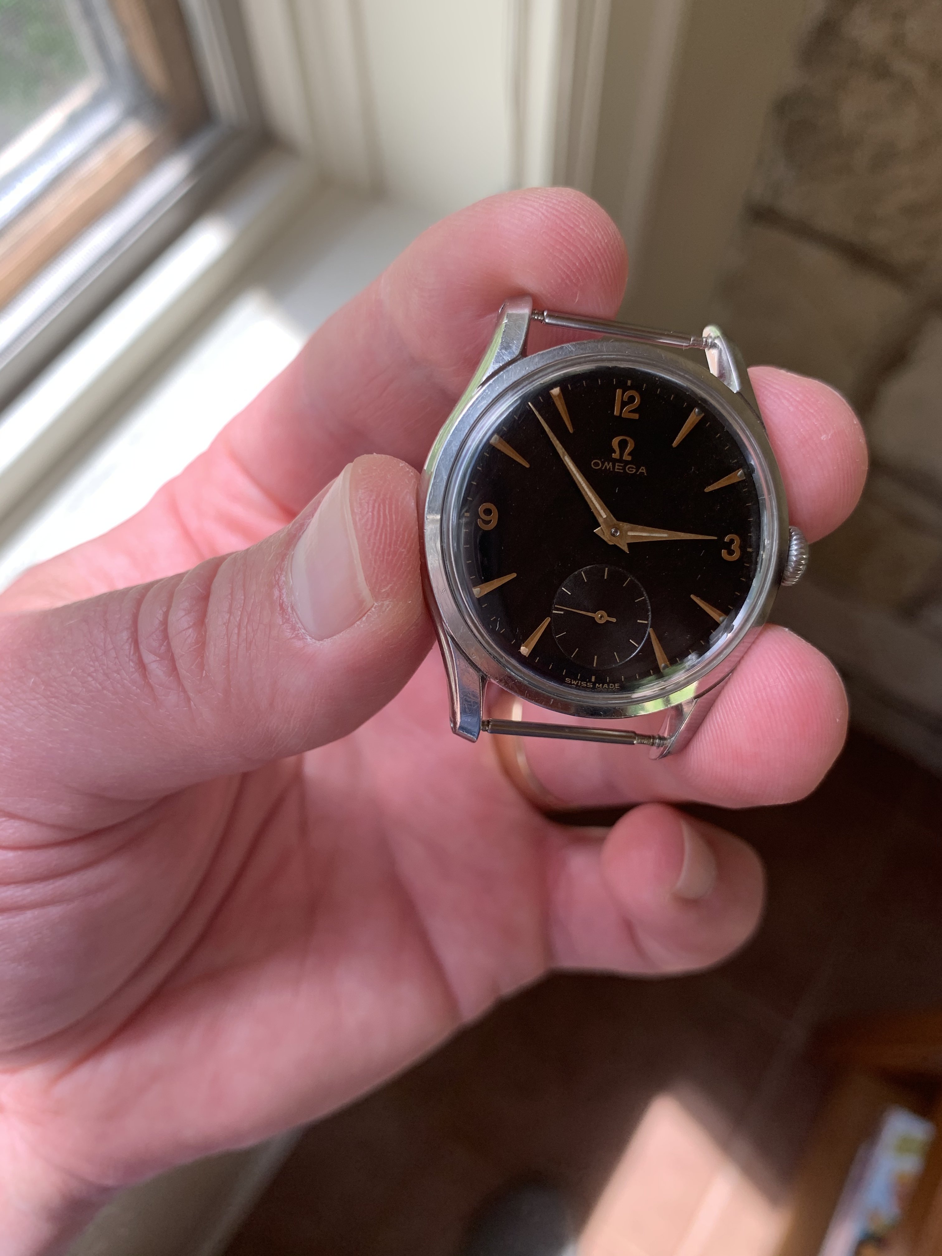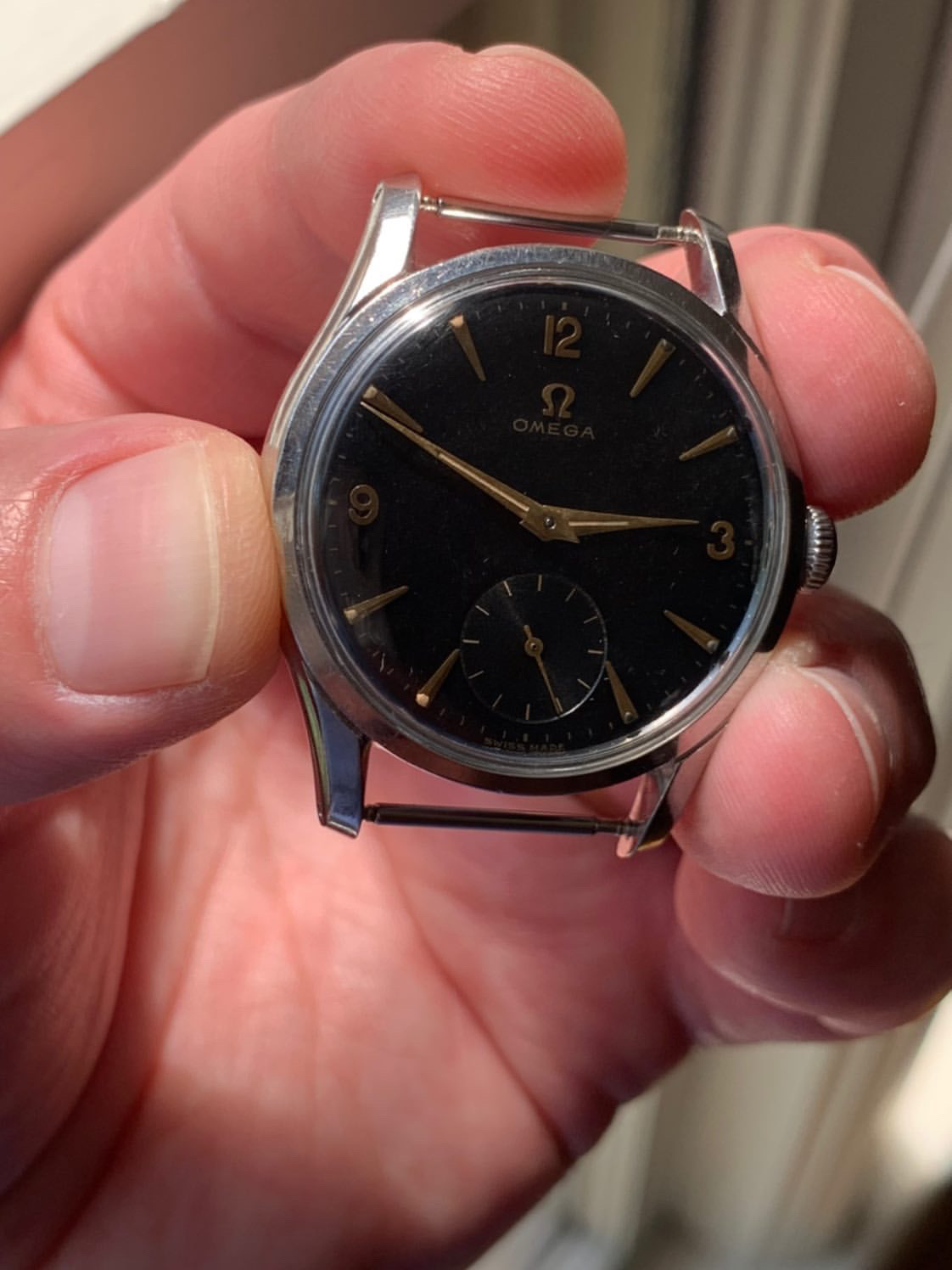 Dial: FANTASTIC all original GILT black dial. Sub second in INCREDIBLE condition. 12,3,9 NUMBERS. RARE gilt dial, especially in this condition.