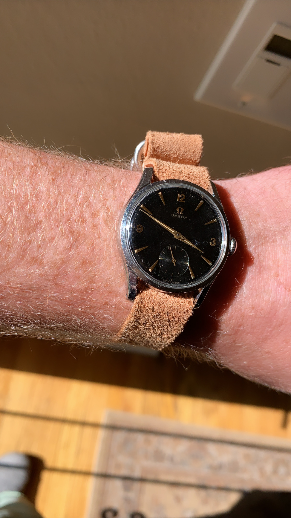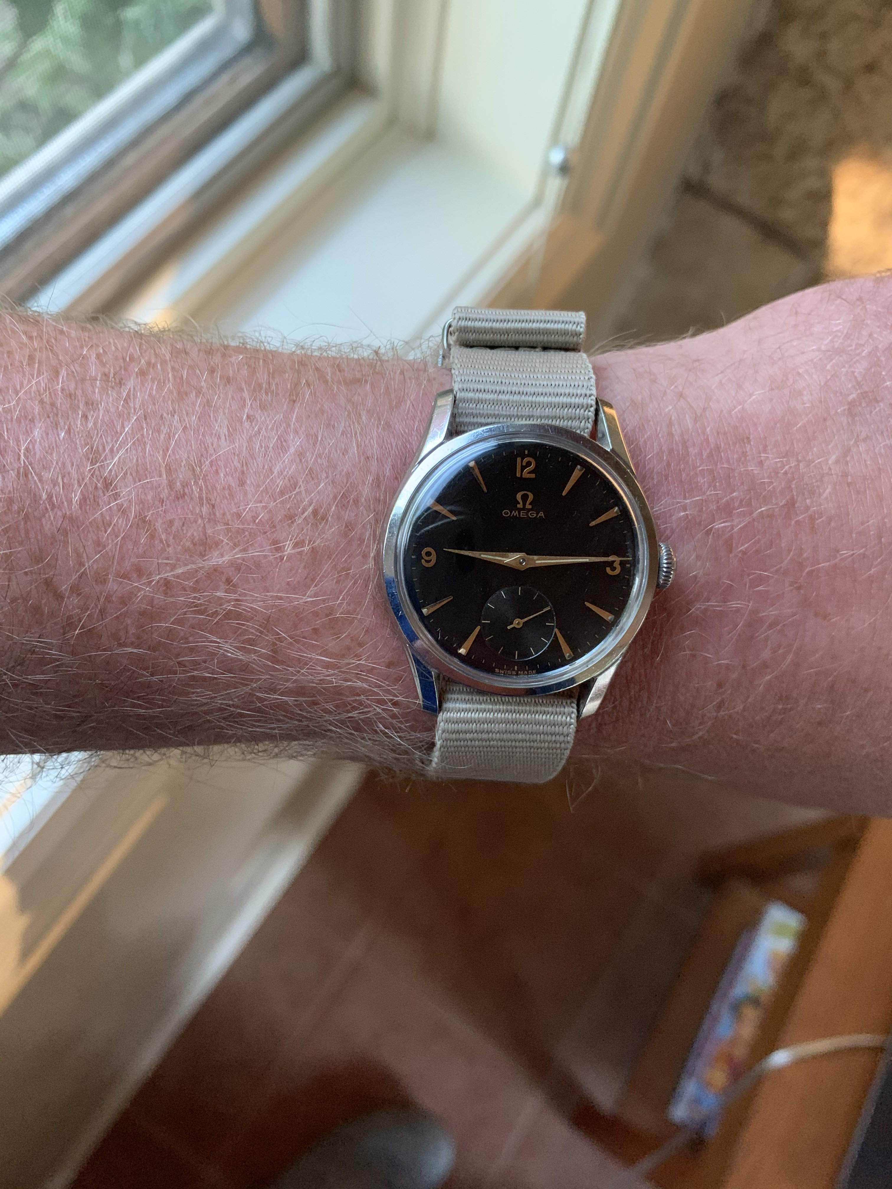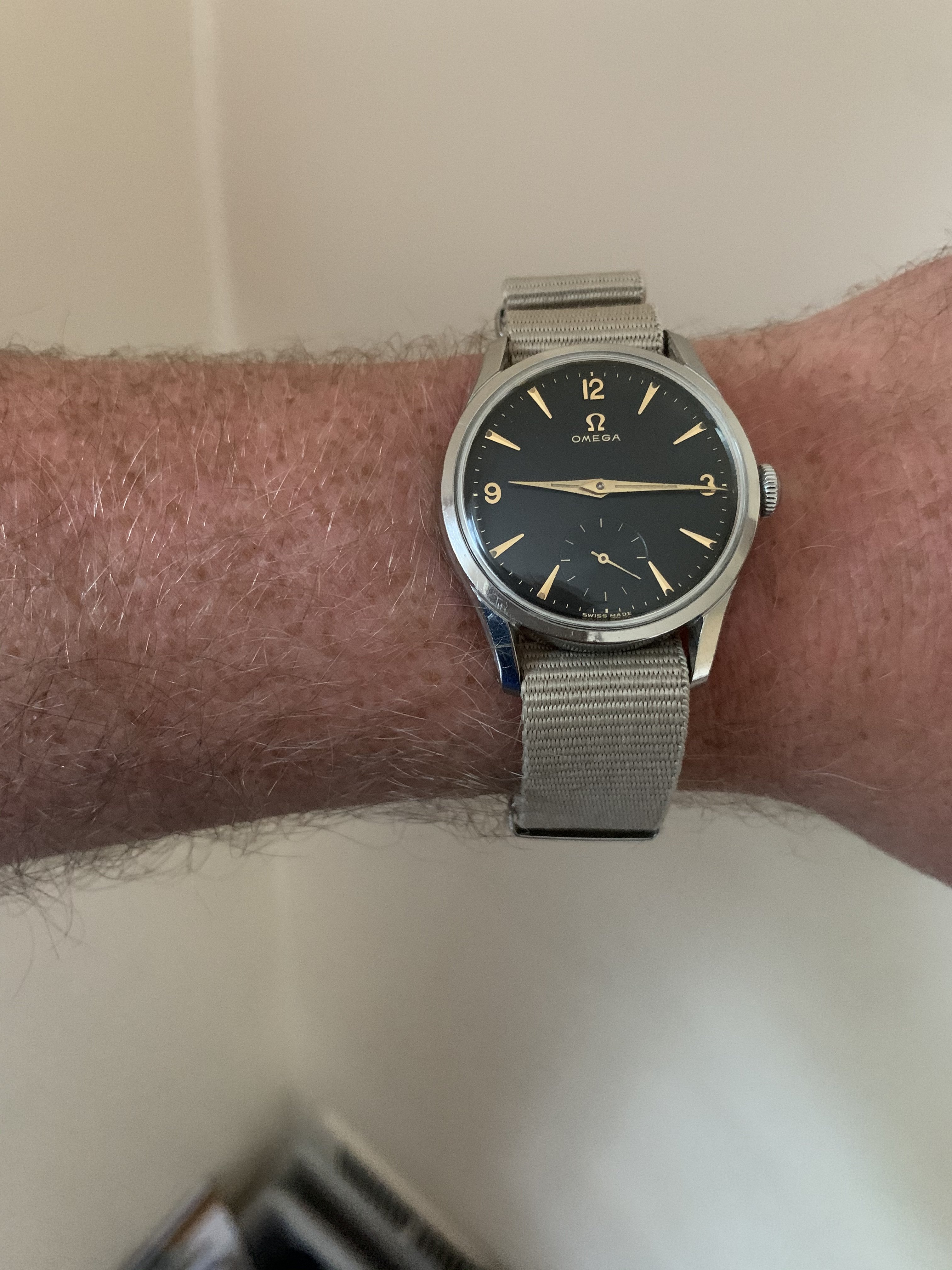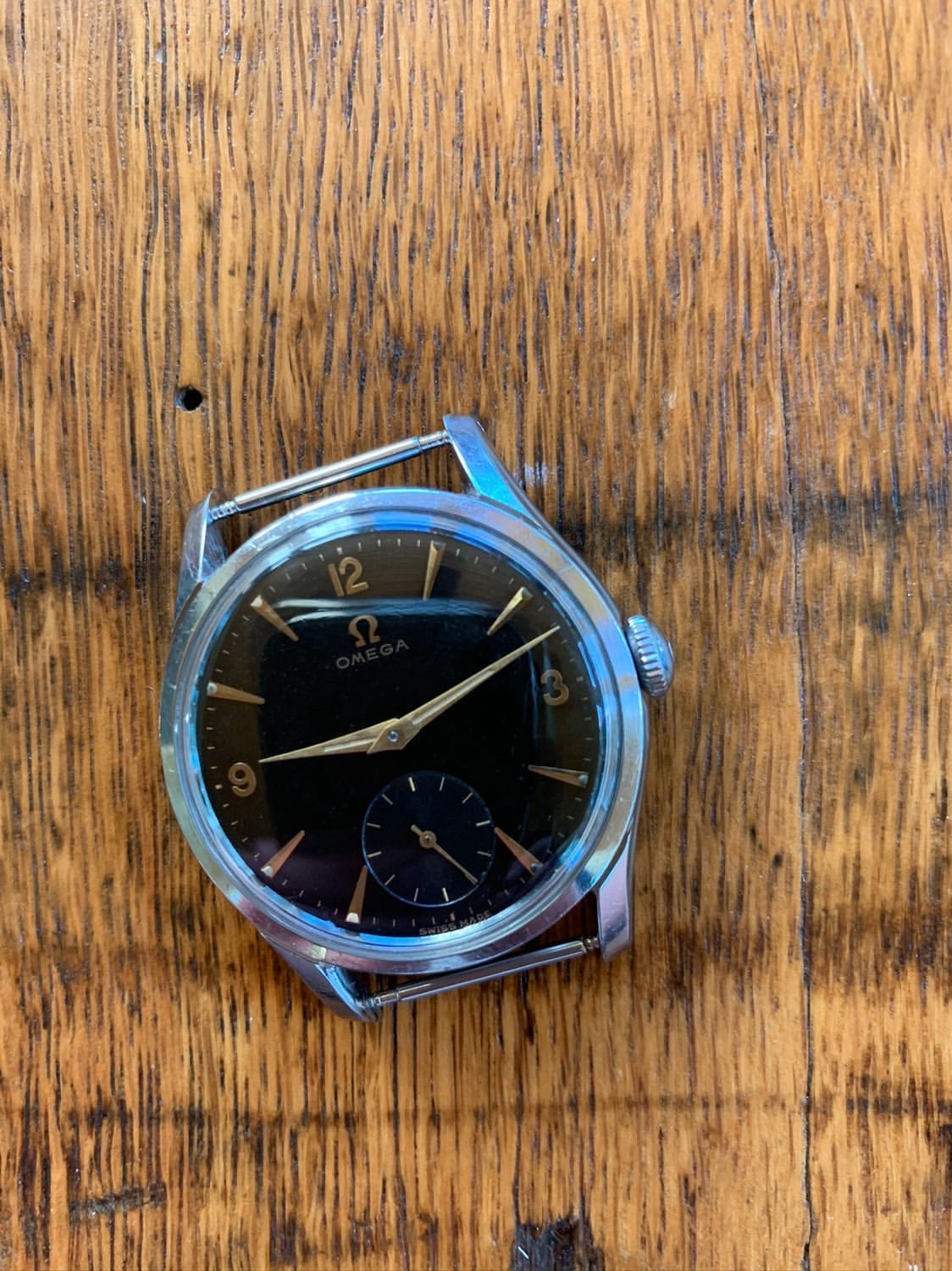 Dial: FANTASTIC all original GILT black dial. Sub second in INCREDIBLE condition. 12,3,9 NUMBERS. RARE gilt dial, especially in this condition.