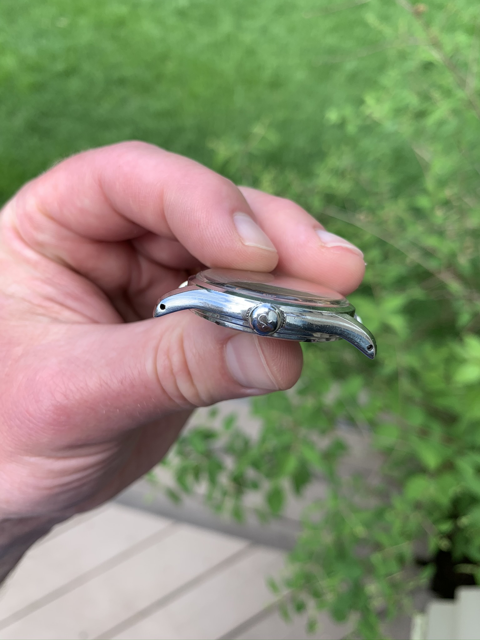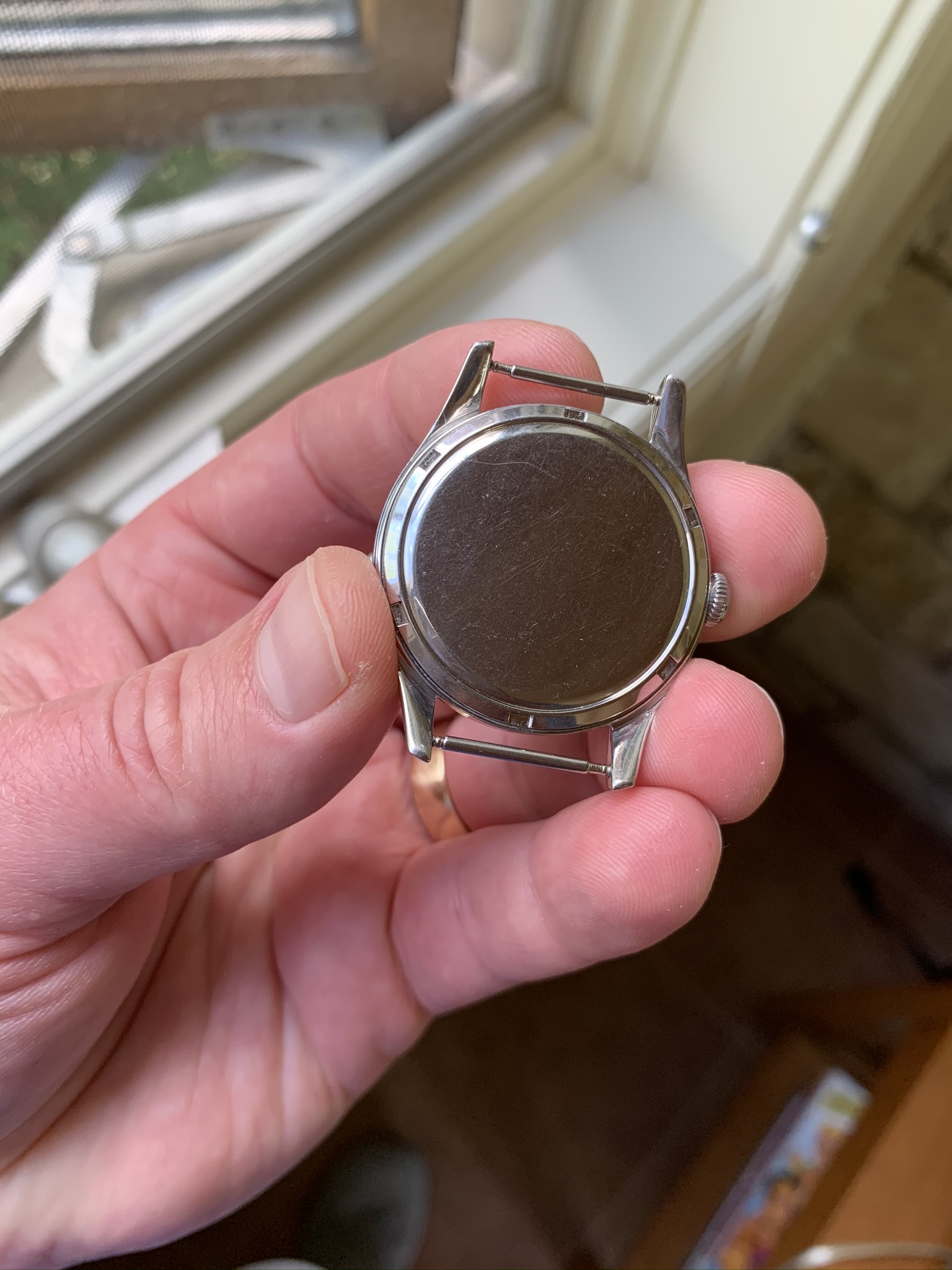 Case: Original stainless steel. Probably polished (underside) at some point. Great condition. These references have NICE THICK cases.