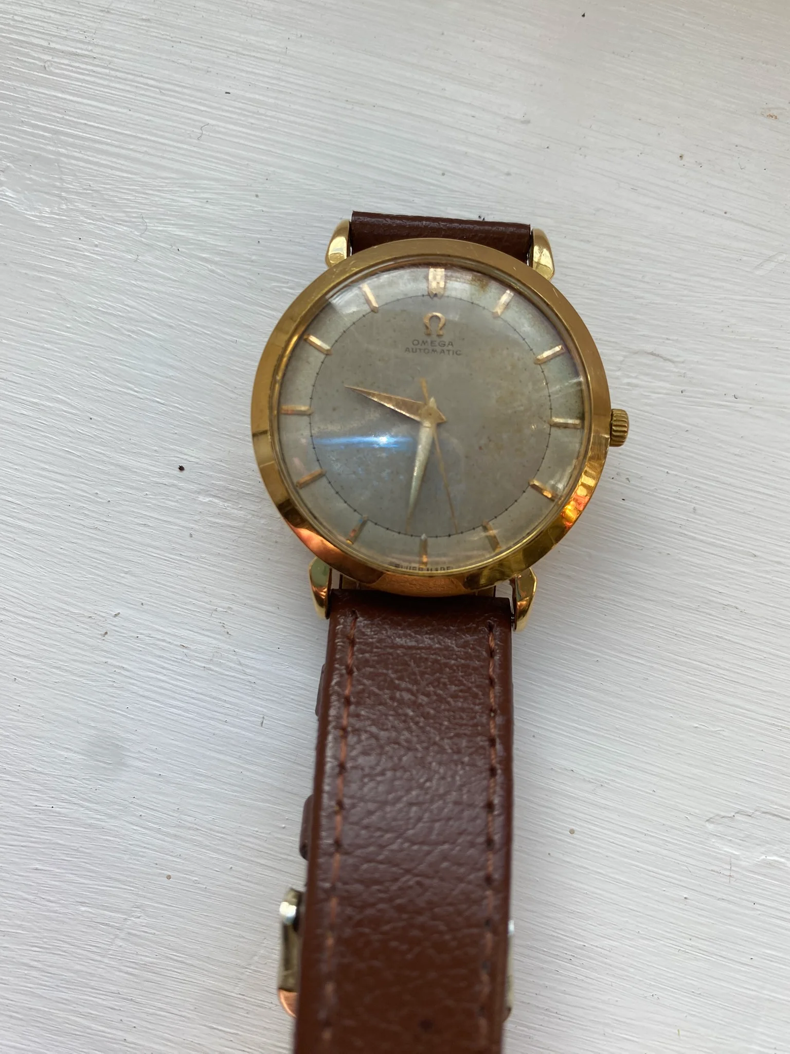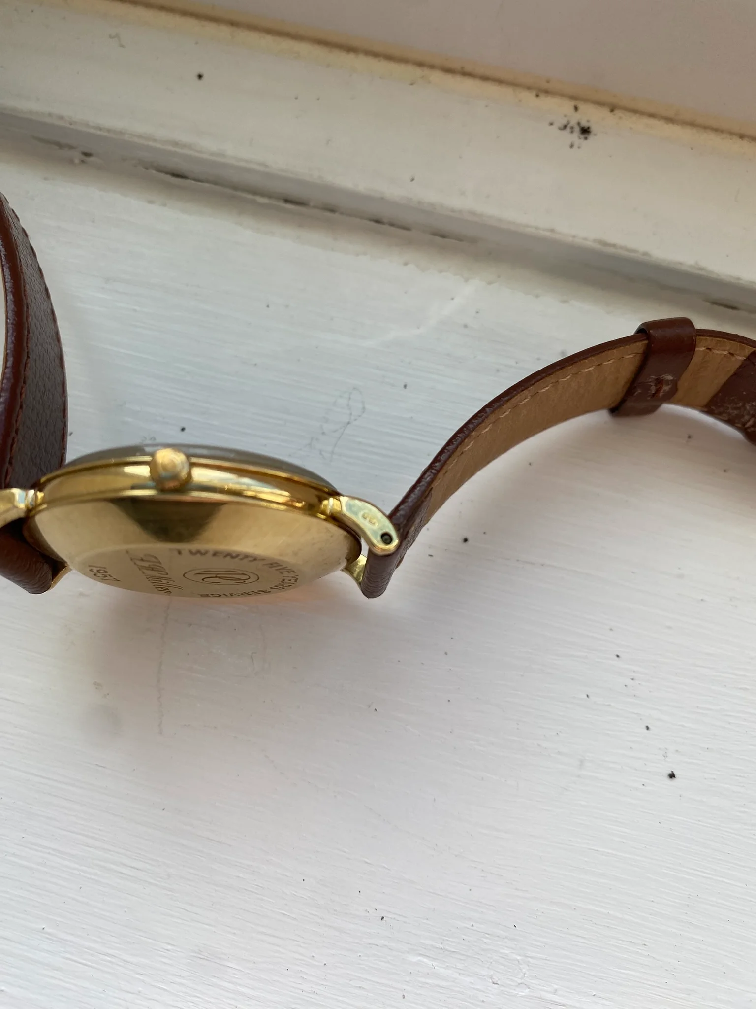 ·Please help me evaluate this watch which was presented to my father to mark 25 years service with Iraq Petroleum Company in 1957 as shown in the inscription on the back. It has not been used since he died in 1992 nor has it been serviced since then. I have no knowledge of any servicing while he owned it. As far as I am aware all elements of the watch are original. Certainly, I have done nothing with it since 1992.