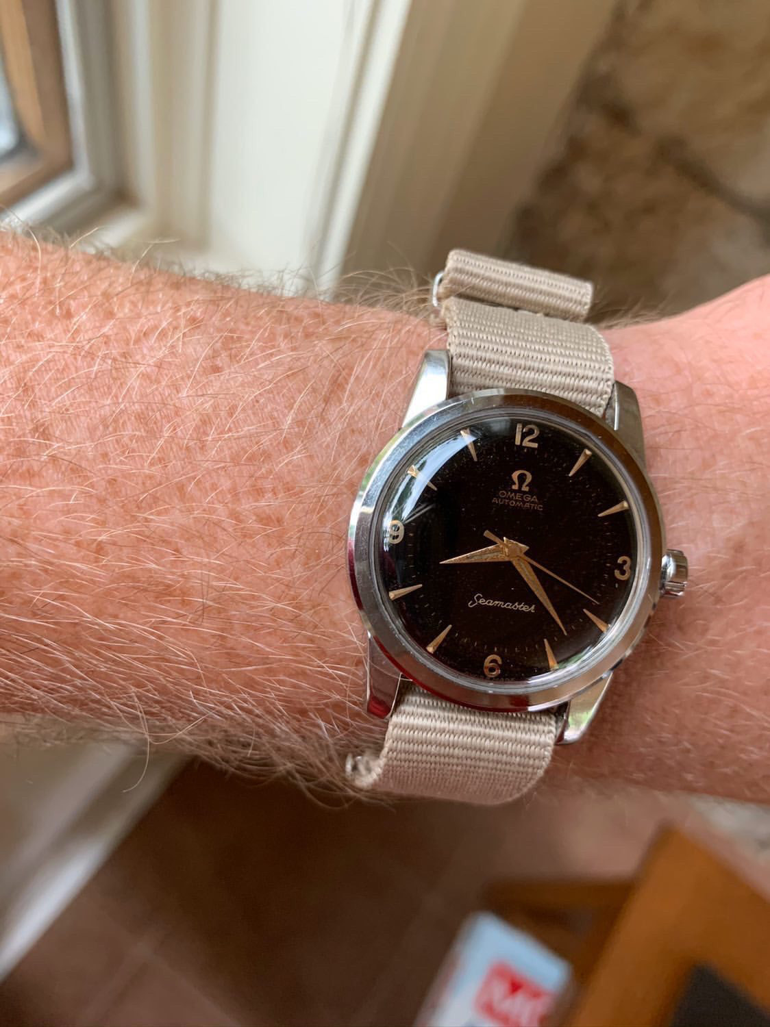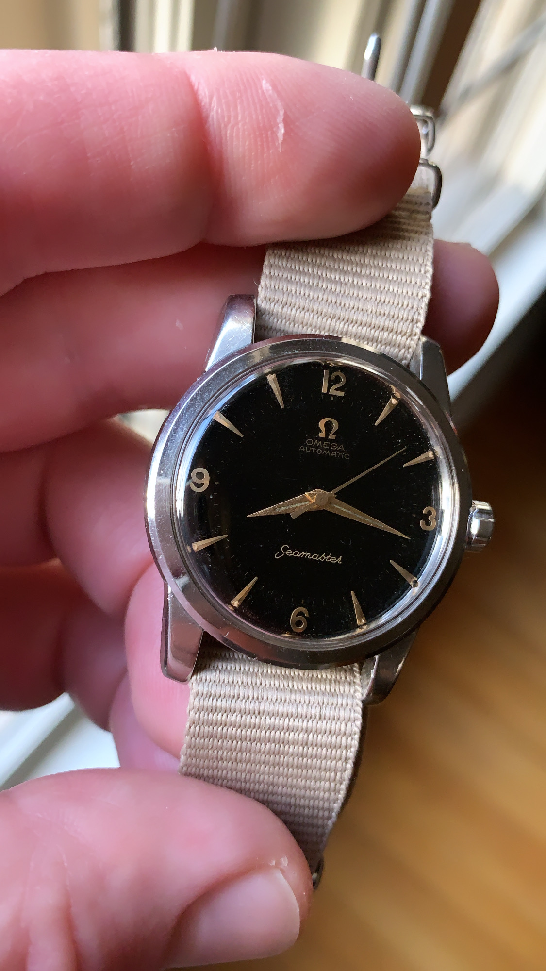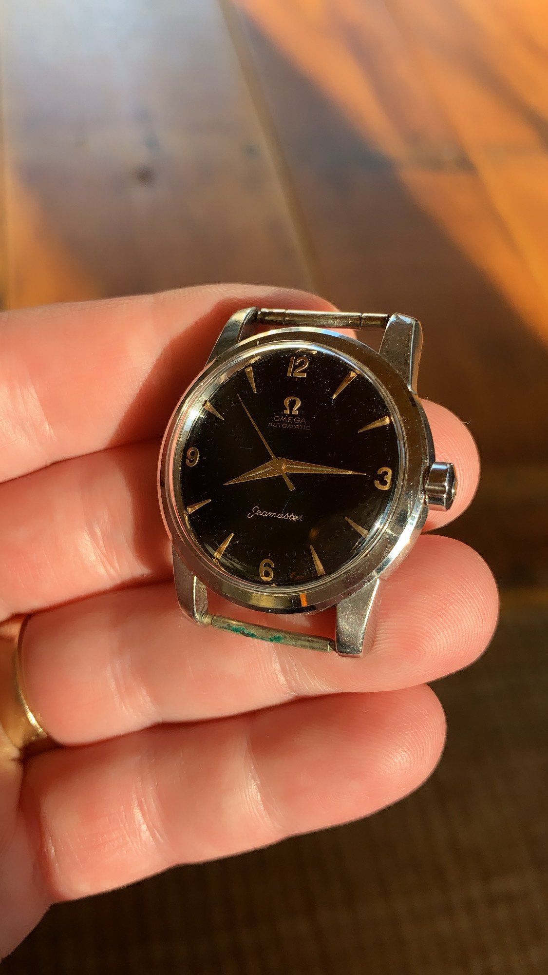 Case: Original stainless steel BEEFY lug. Lettering visible on the back “waterproof” and “seamaster”.