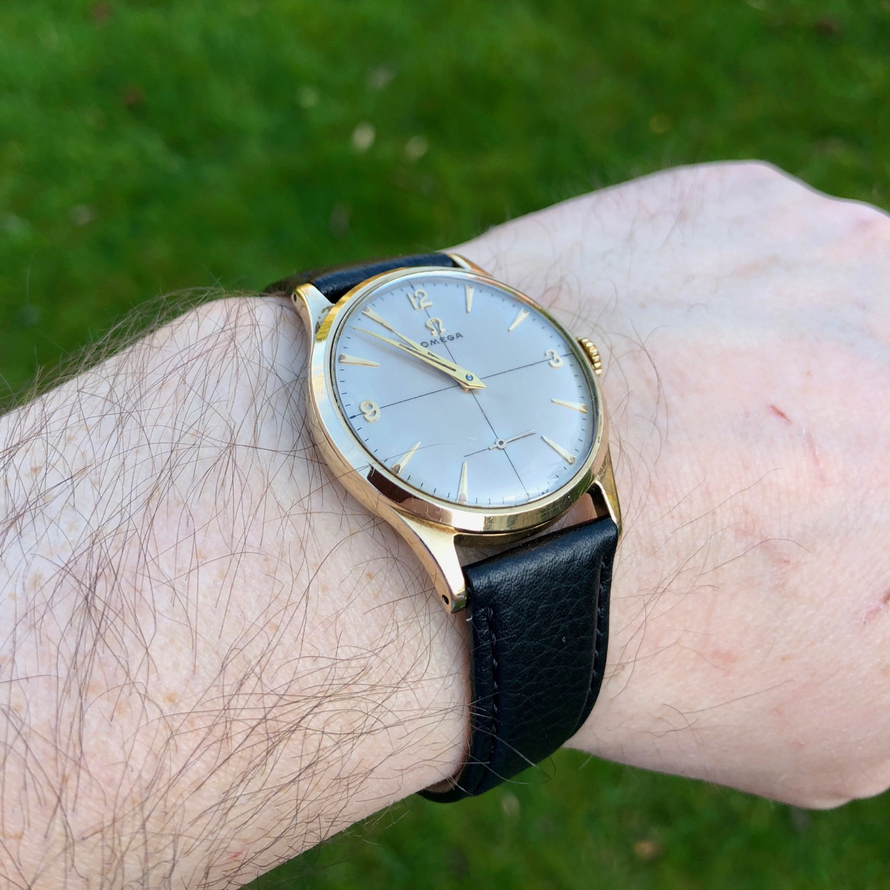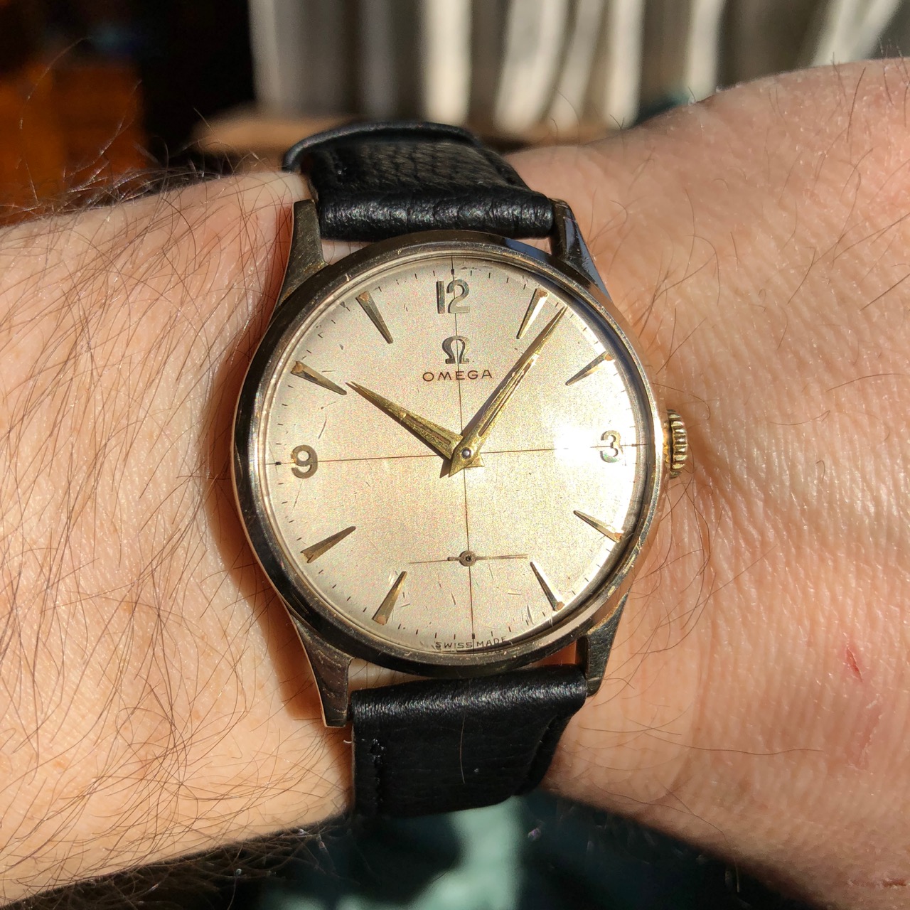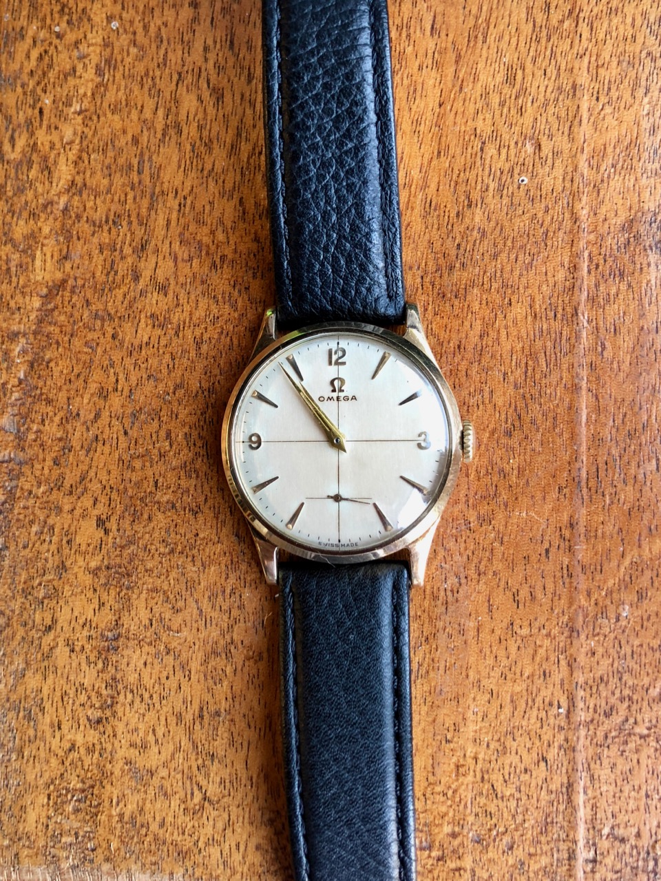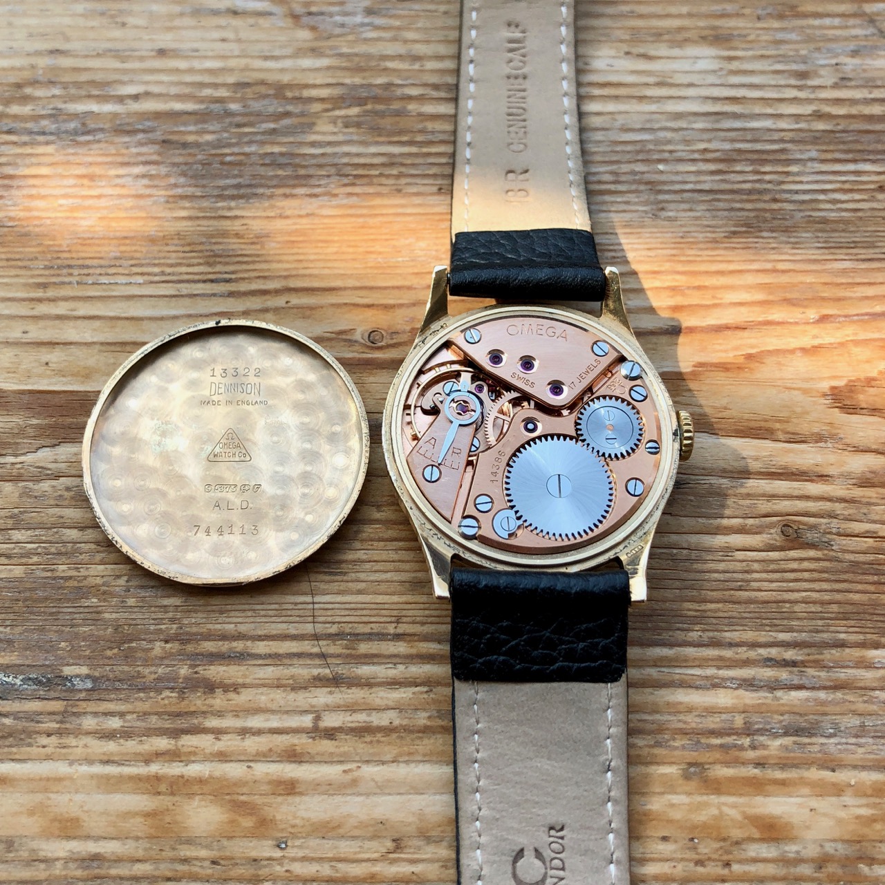 ··Oooo subtitles!For sale a solid 9K gold 34mm Omega using the 266 manual wind movement (a development of the classic 30T2 but with 17 jewels and shock protection). It uses an Omega marked Dennison case which has the UK hallmark for 1956 (letter G) which tallies with the 14.38m movement serial number (blurred in pic below but intact). It was serviced by the seller when I got it about a year ago and it is running strongly and accurately at around -2s per day as confirmed in wear and on my timing machine and as can be seen below the movement is very clean.