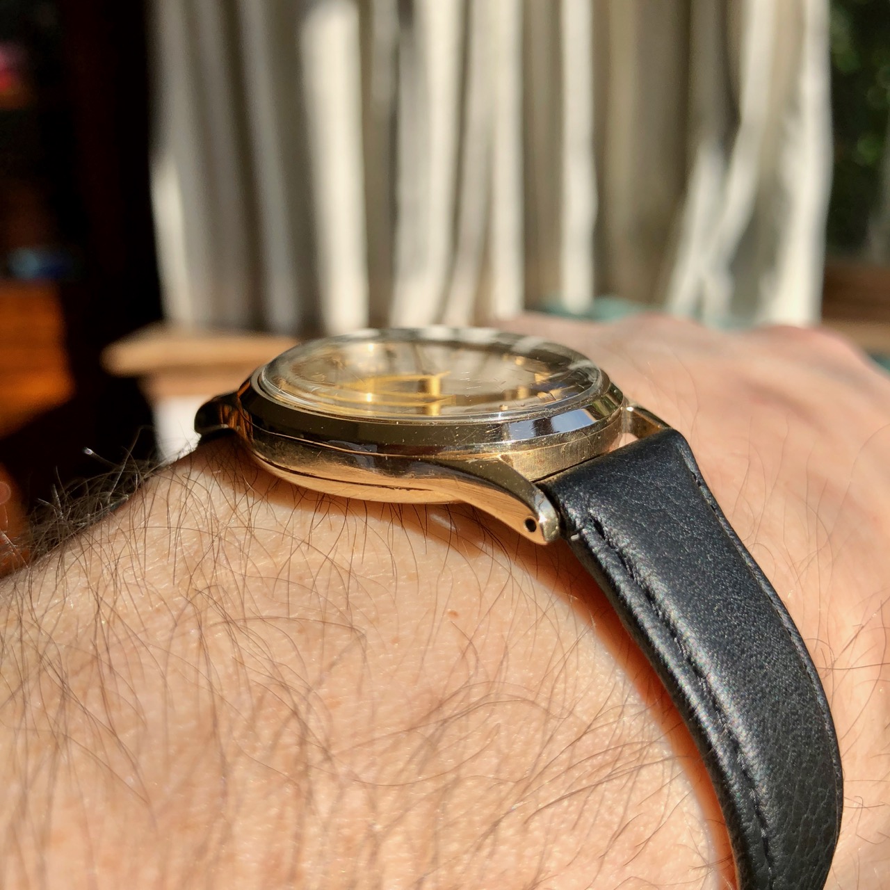 It is all original AFAIK with a few scratches on the case here and there but has a clear crystal and nice unmarked dial which is showing a little patina in the varnish but no real issues. The lug edges are still sharp so I don’t think this has seen a polish, or at least not a bad one. The unsigned crown may well be original but is a little worn round the edges. These watches have no gaskets so should not be considered waterproof. Supplied on unworn black calf leather Condor strap. The sale should be considered final, unless of an issue not mentioned in the listing. The watch is located in Birmingham UK (where it was originally hallmarked 62 years ago) and is available for face to face inspection.