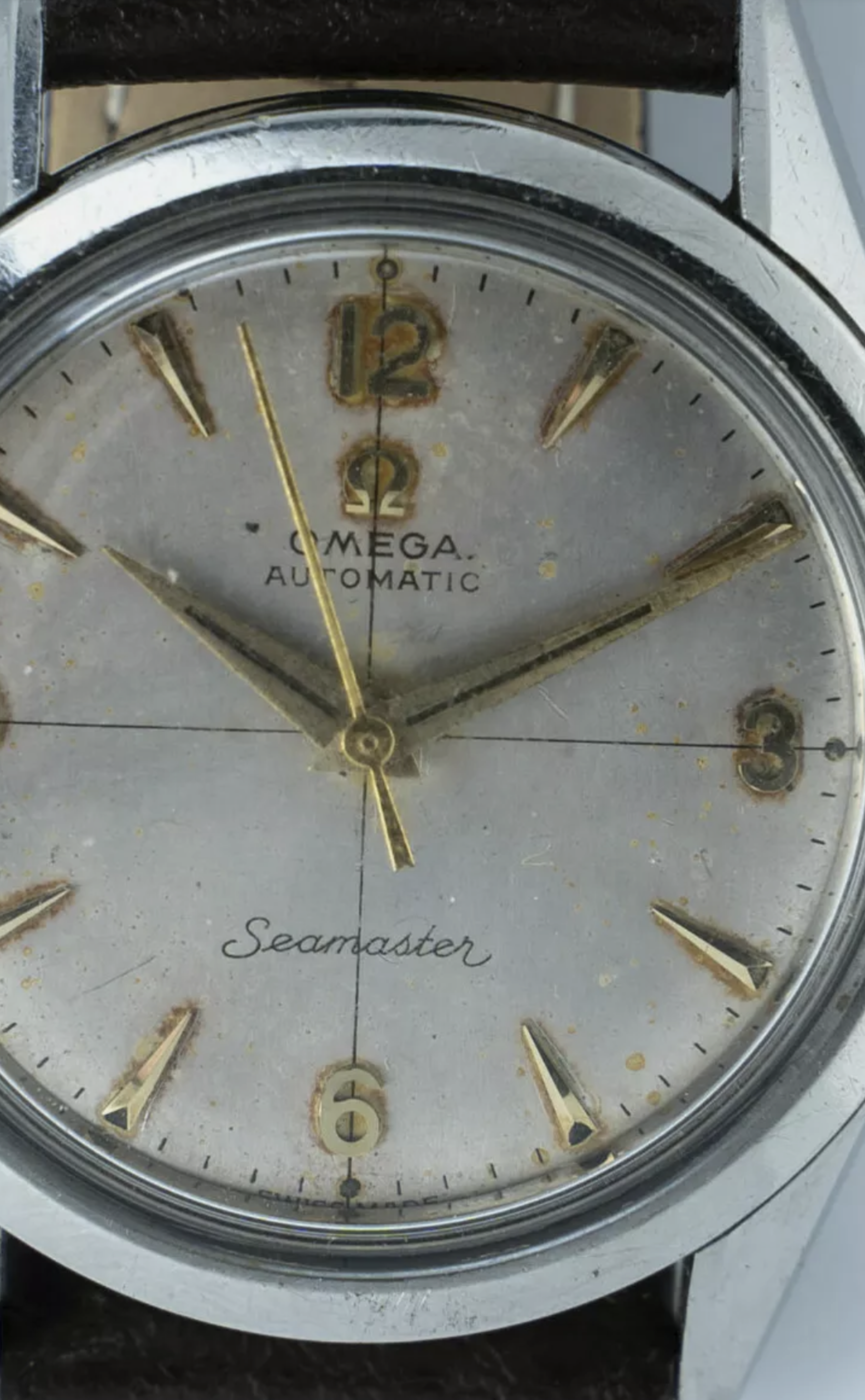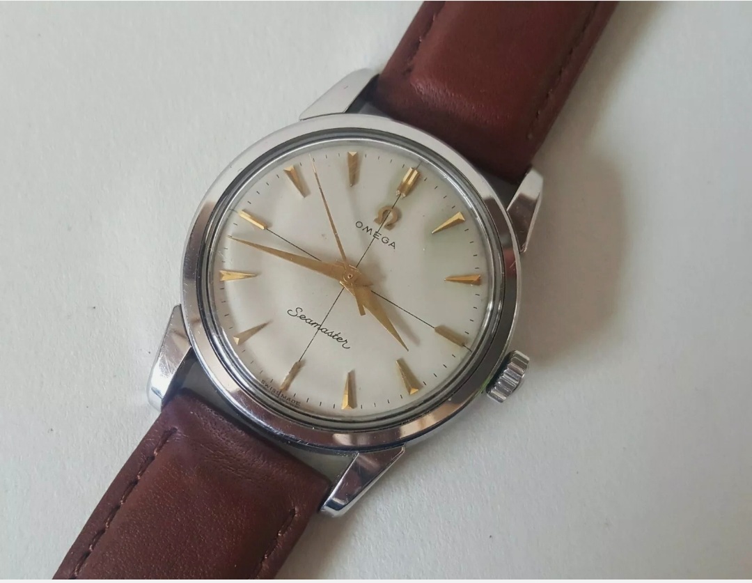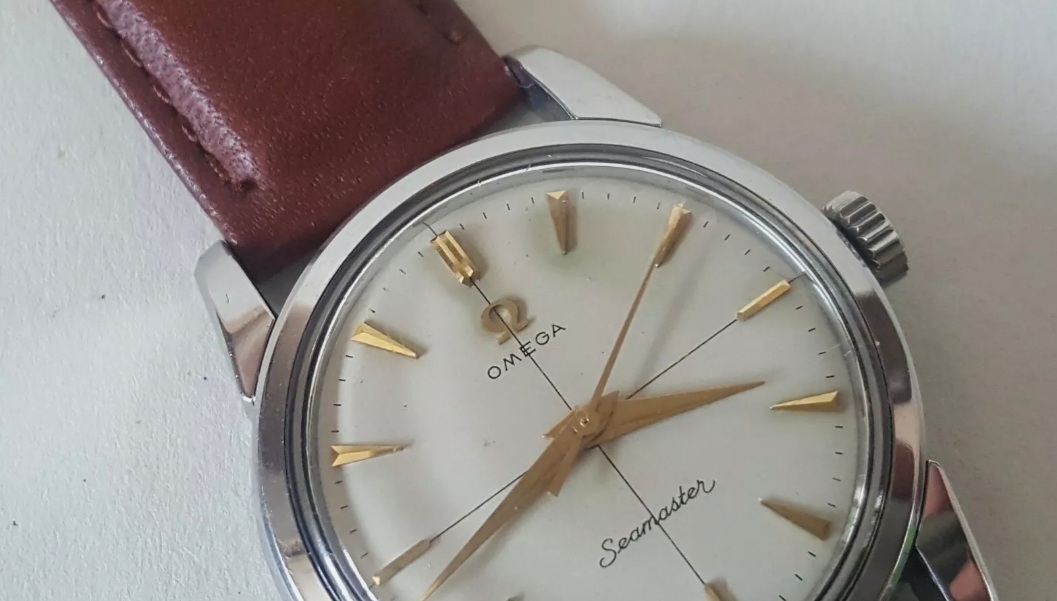 I'm in need of some advice with this one as it has me slightly torn. Usually I can spot a re-dial a mile off however there is a tricky period in vintage omega wristwatches where numerous changes to the font style took place and I believe this watch may be one of those watches. The watch is a 1956 omega seamaster, case reference 2823-1SC and from what I've found on the Web, there aren't many pictures for reference however those which I have found do appear to resemble this one, albiet without the crosshair design.