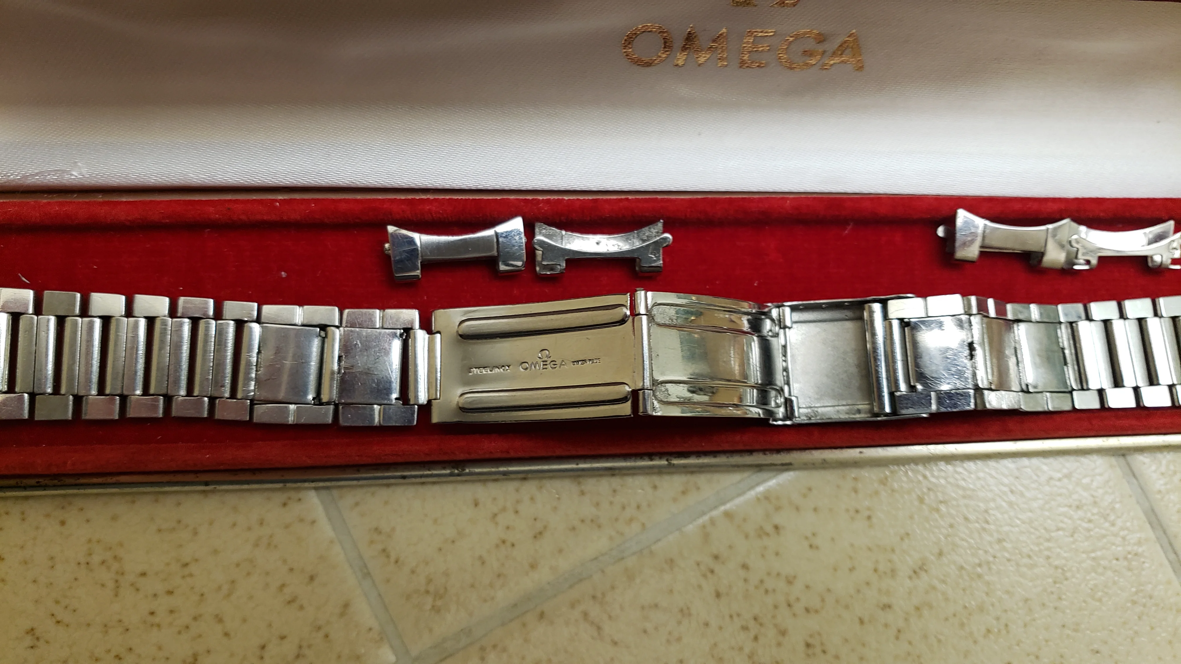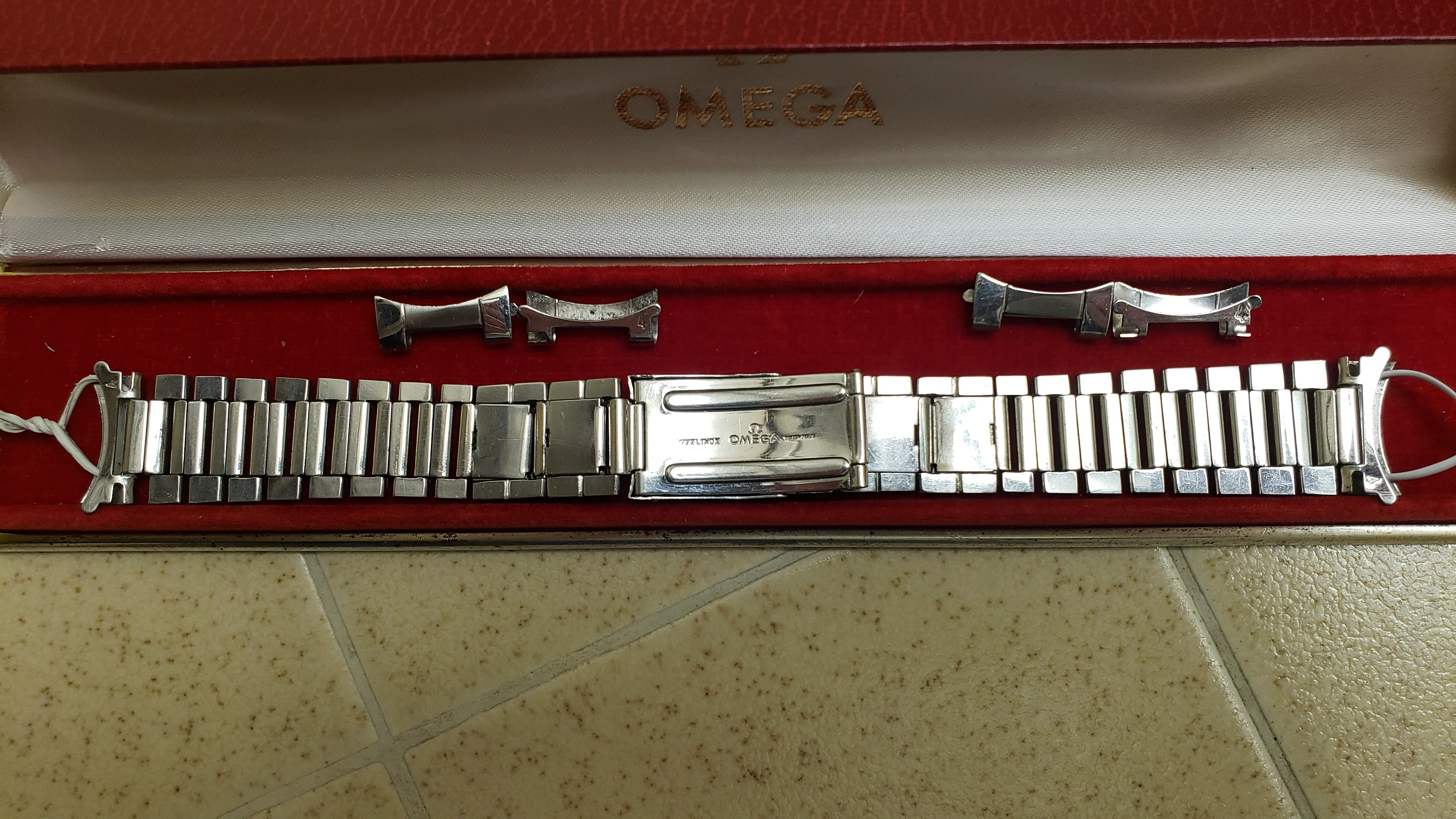 $1500 (net to me) includes the full length 7077 bracelet a pair of aftermarket #4 end links and shipping within the USA. International shipping can be arranged. Offered in the featured vintage red velvet-lined Omega box PayPal except, but add 3% to cover service fee.