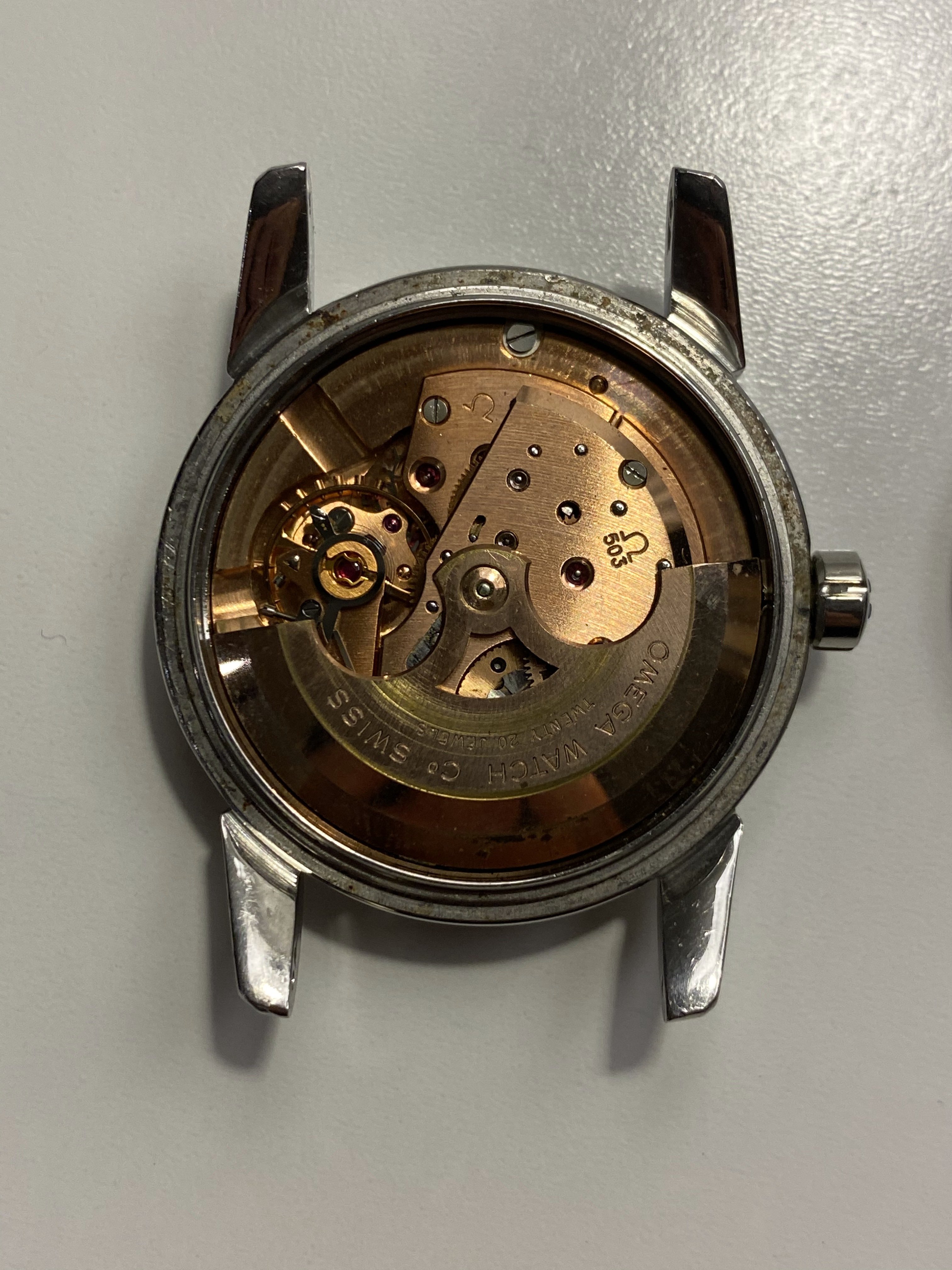 Movement: Original 503 caliber movement dates to 1957. The movement runs, winds, and sets well, but service history is unknown so a service is recommended prior to regular use.