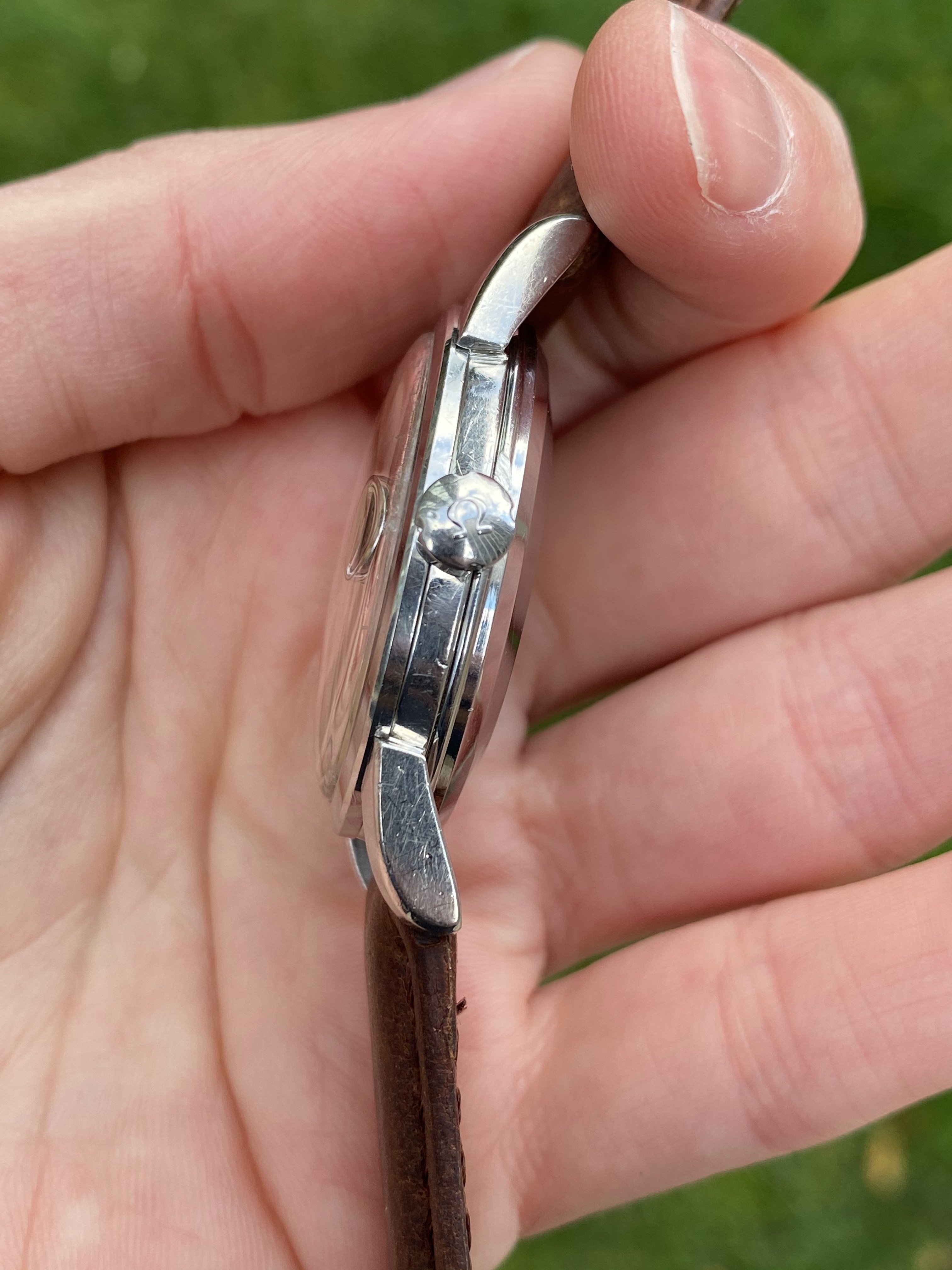 Crystal: Original (I believe) signed crystal with Omega logo etched at center. Has light scratches that should buff out.