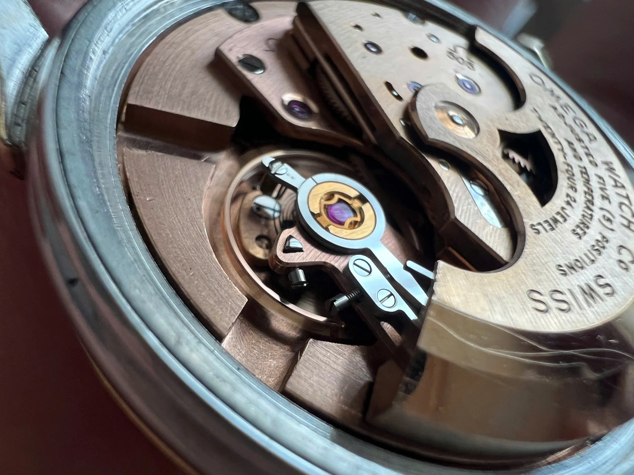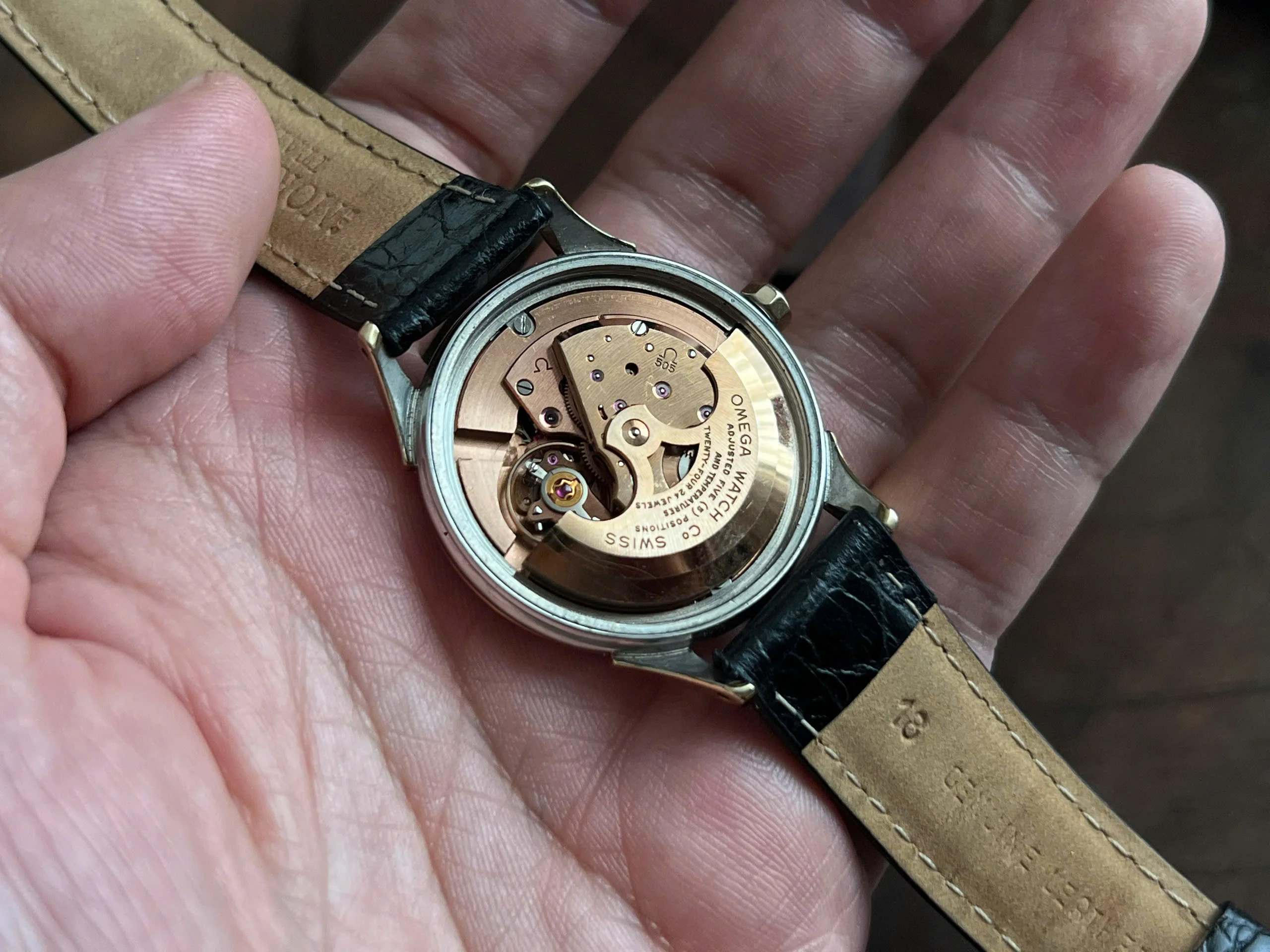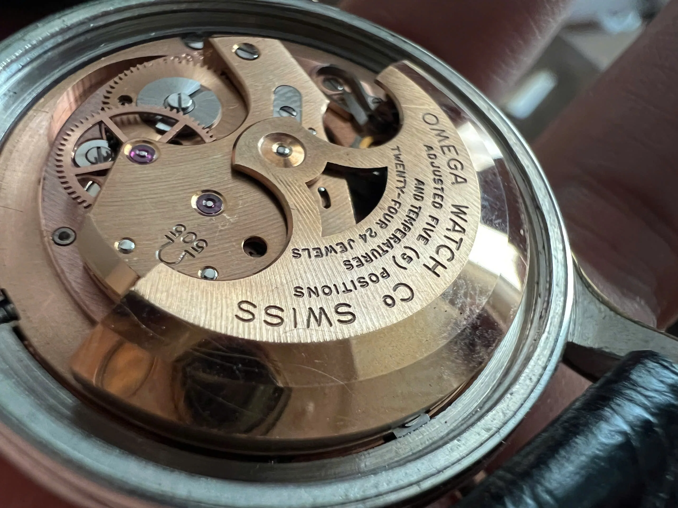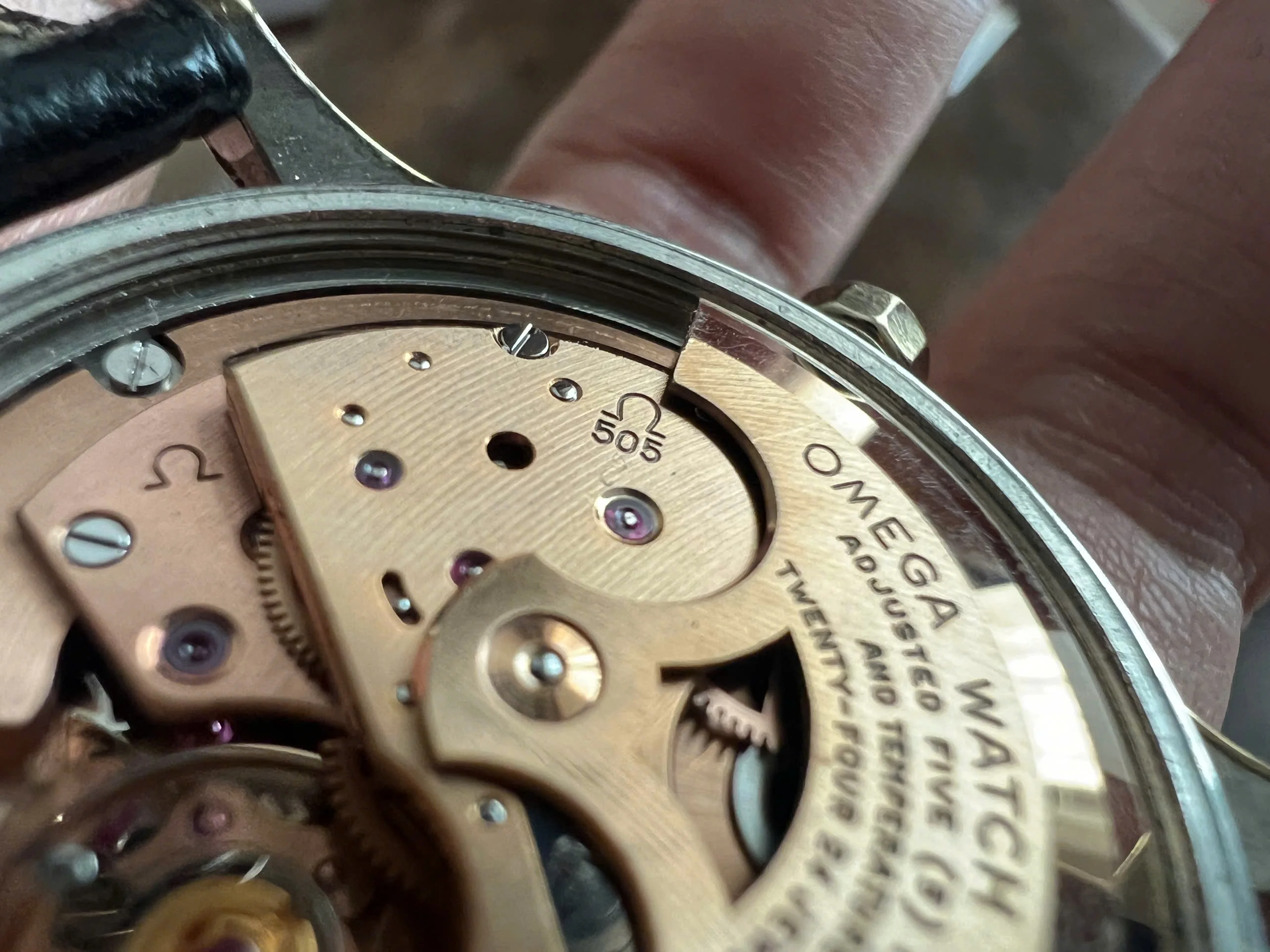 Movement: Omega Chronometer Cal. 505 with serial number dates it to 1958; the watch is running; winding feels smooth with unknown service.