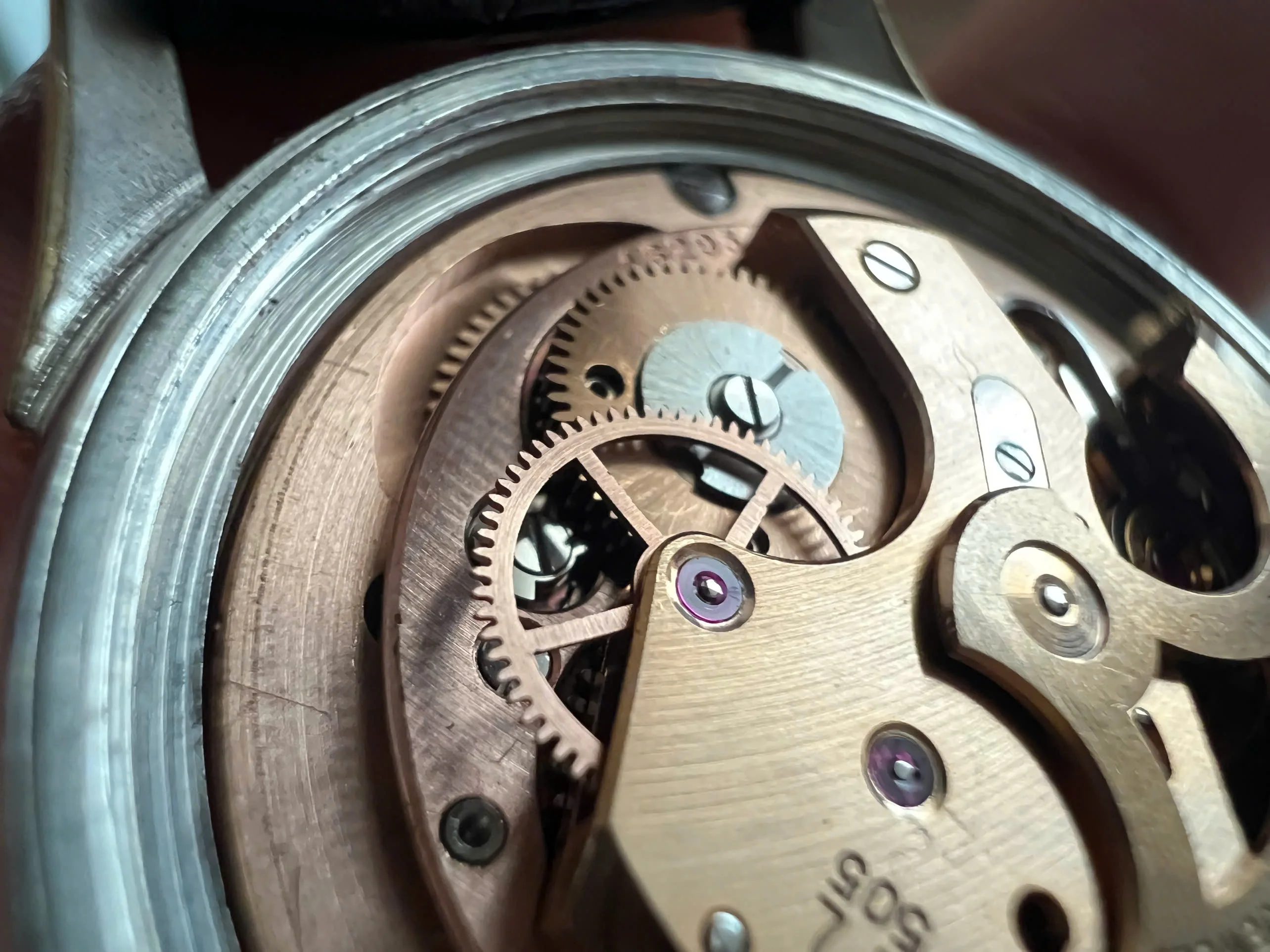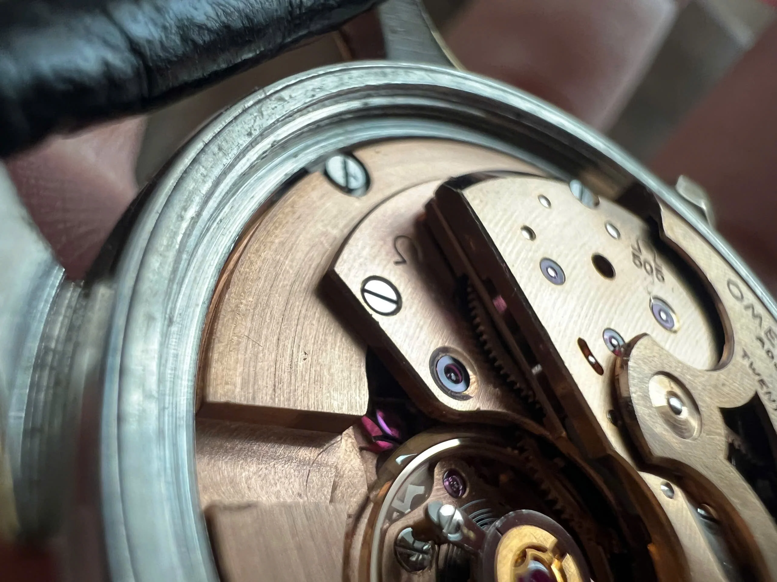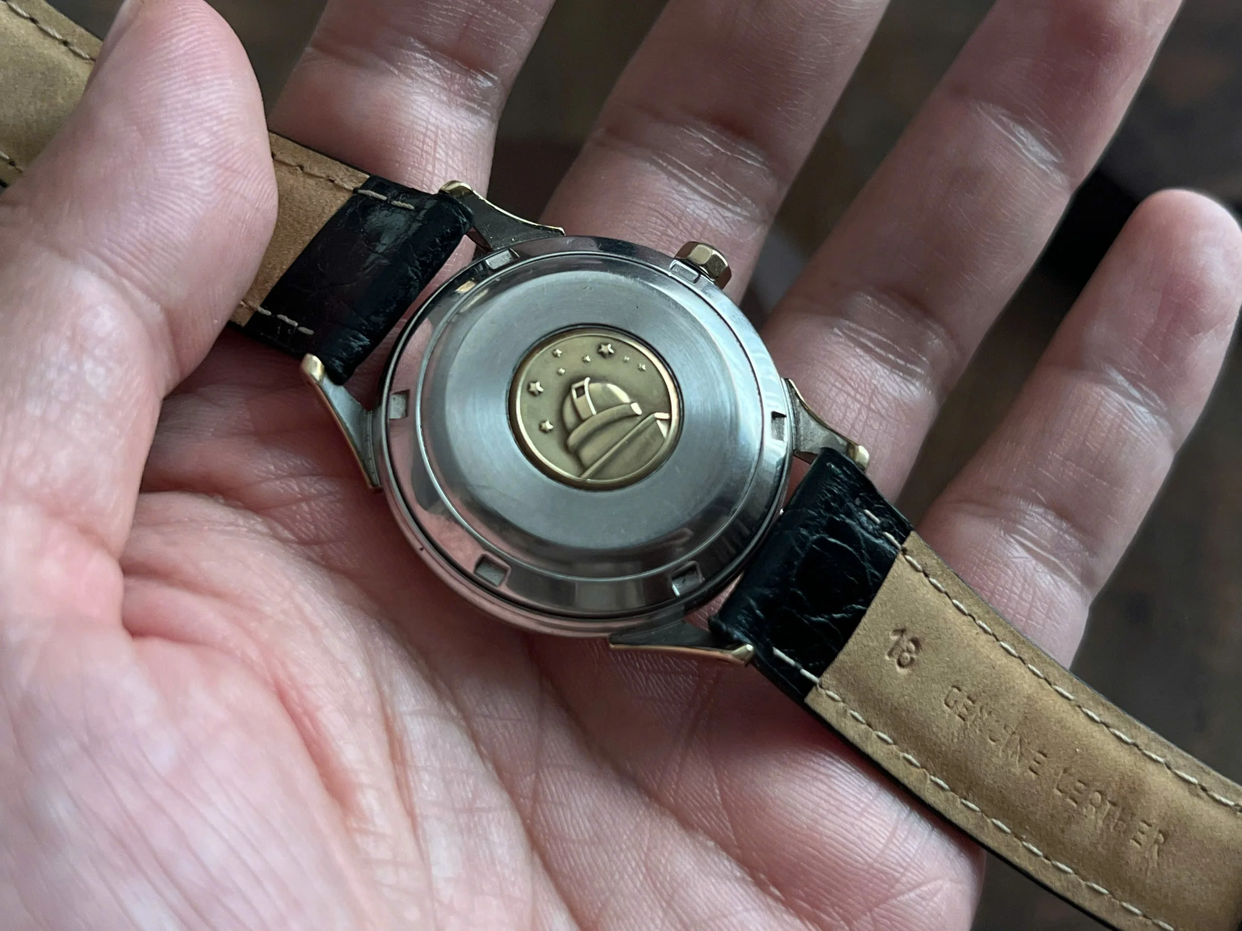 Movement: Omega Chronometer Cal. 505 with serial number dates it to 1958; the watch is running; winding feels smooth with unknown service.