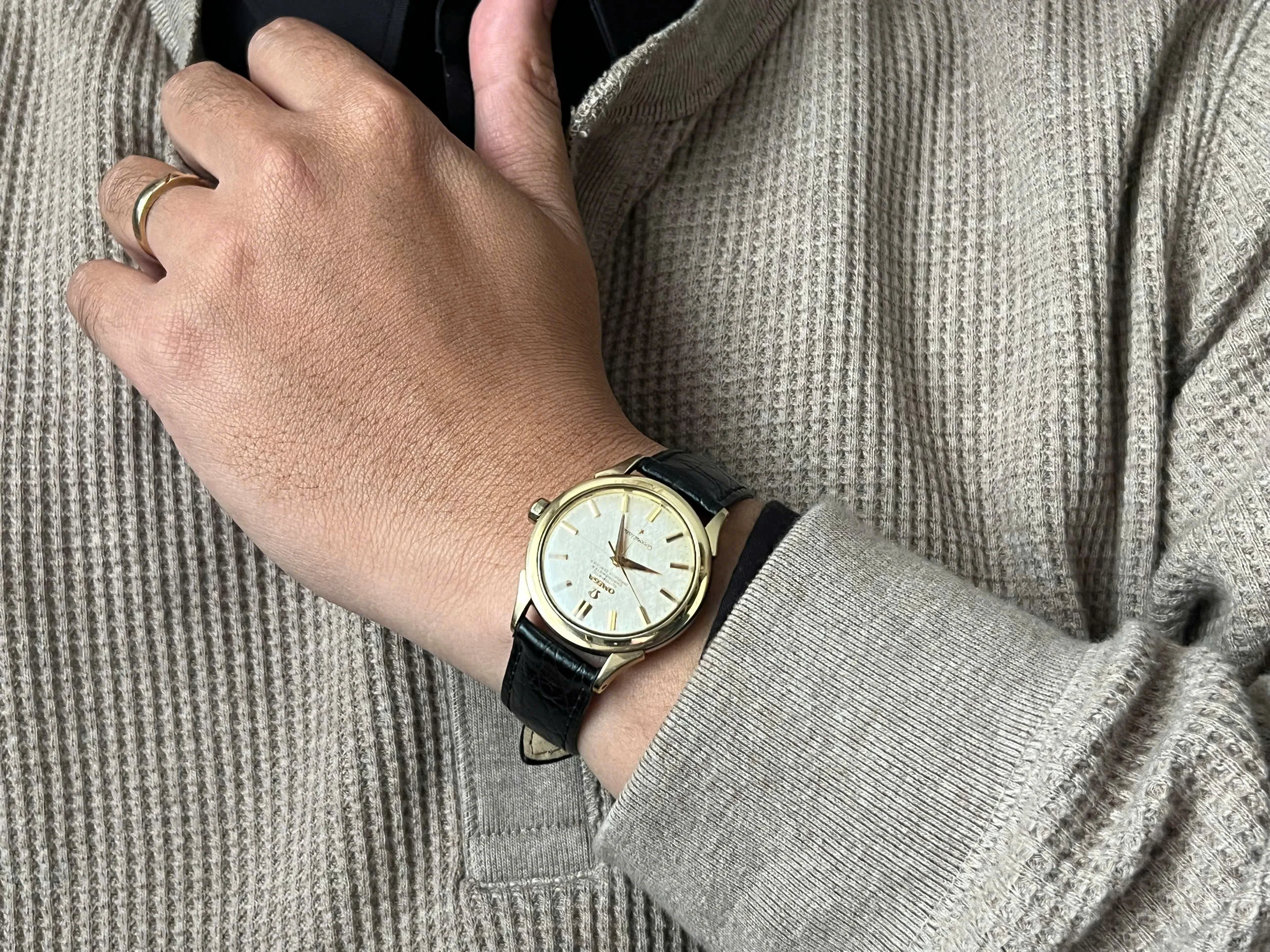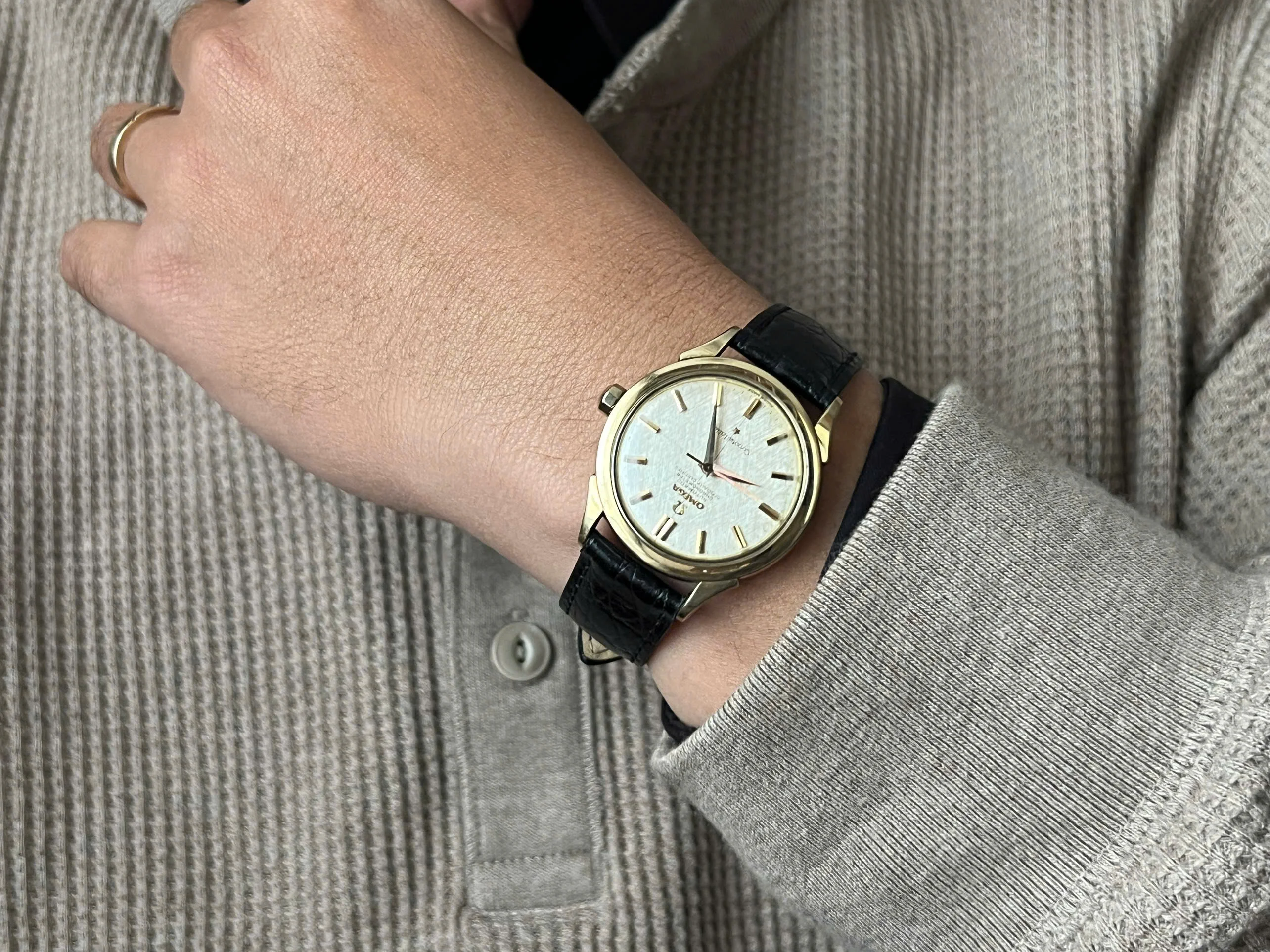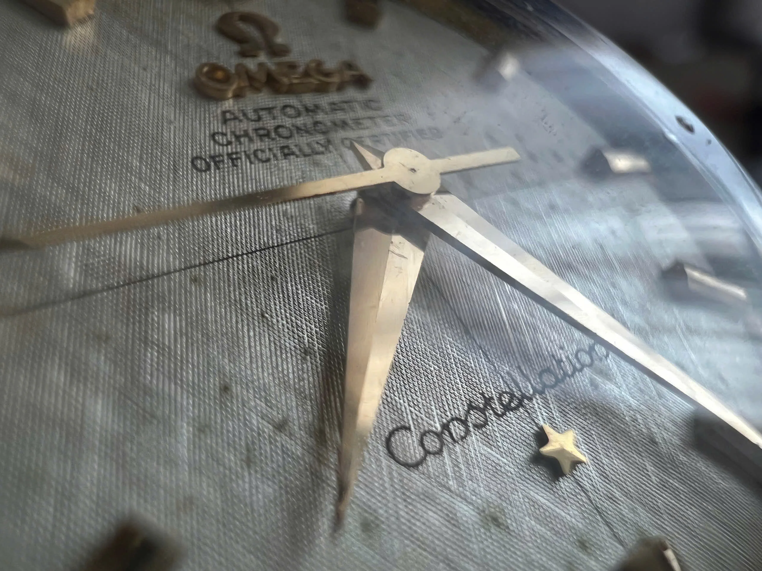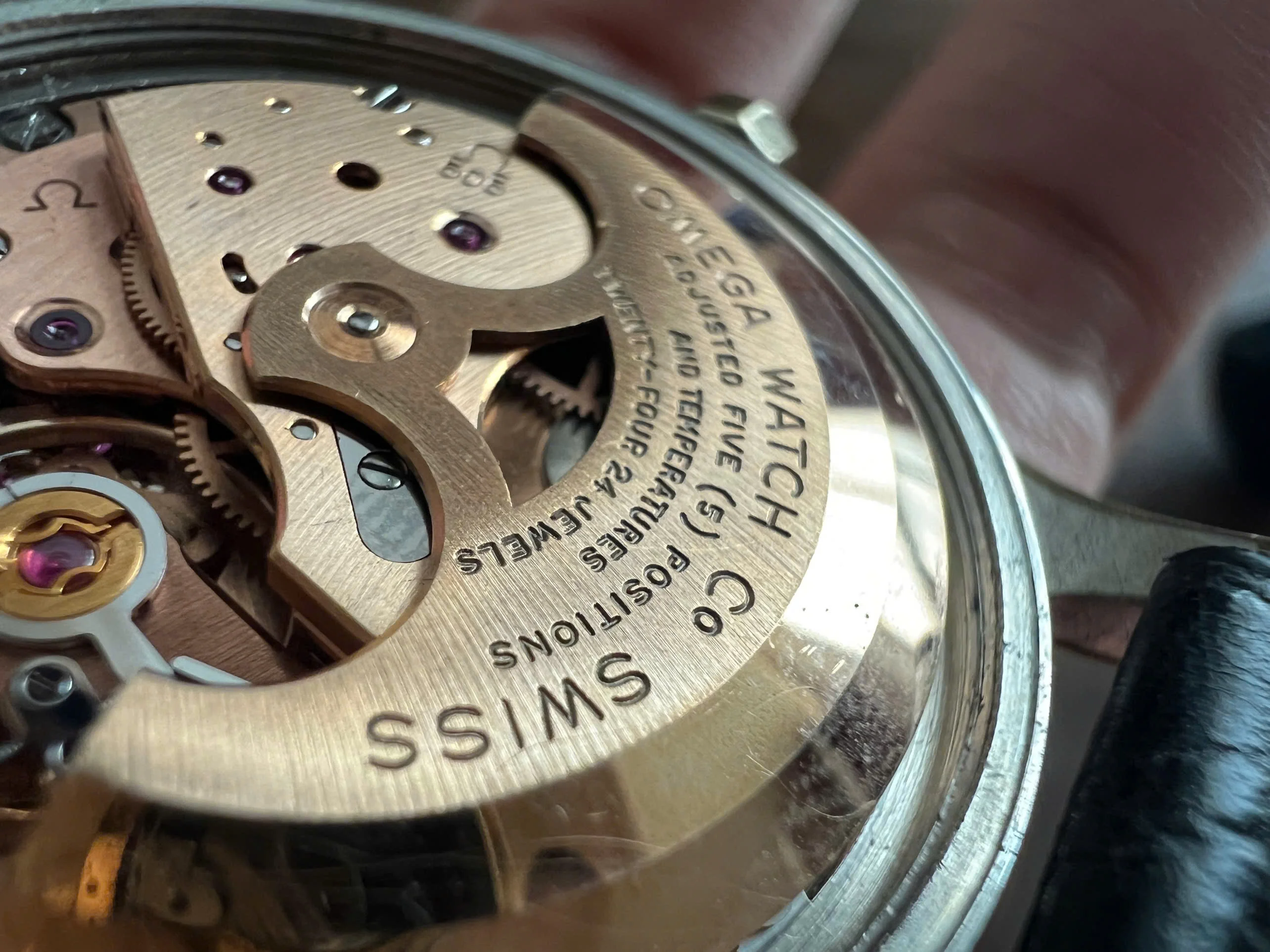 Movement: Omega Chronometer Cal. 505 with serial number dates it to 1958; the watch is running; winding feels smooth with unknown service.