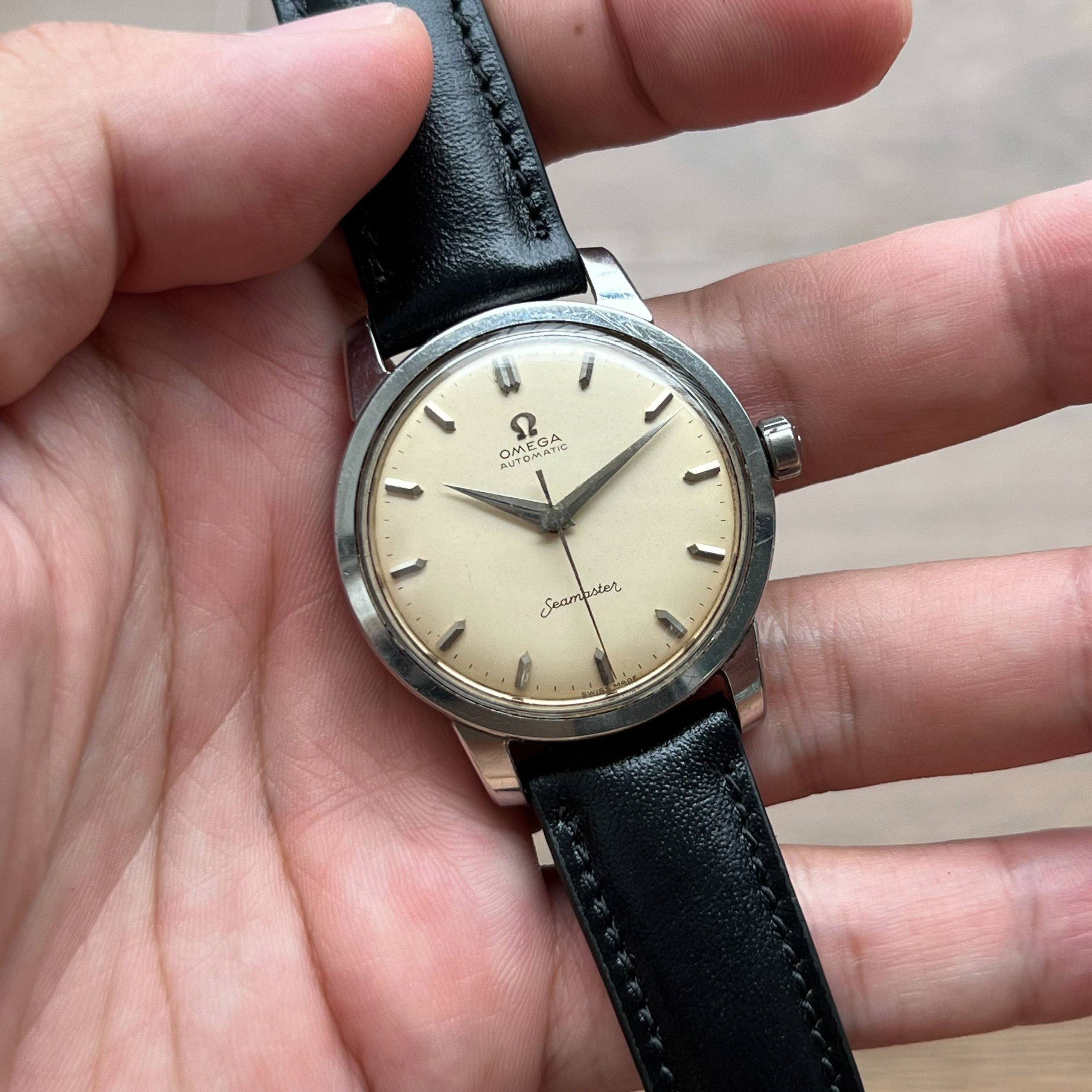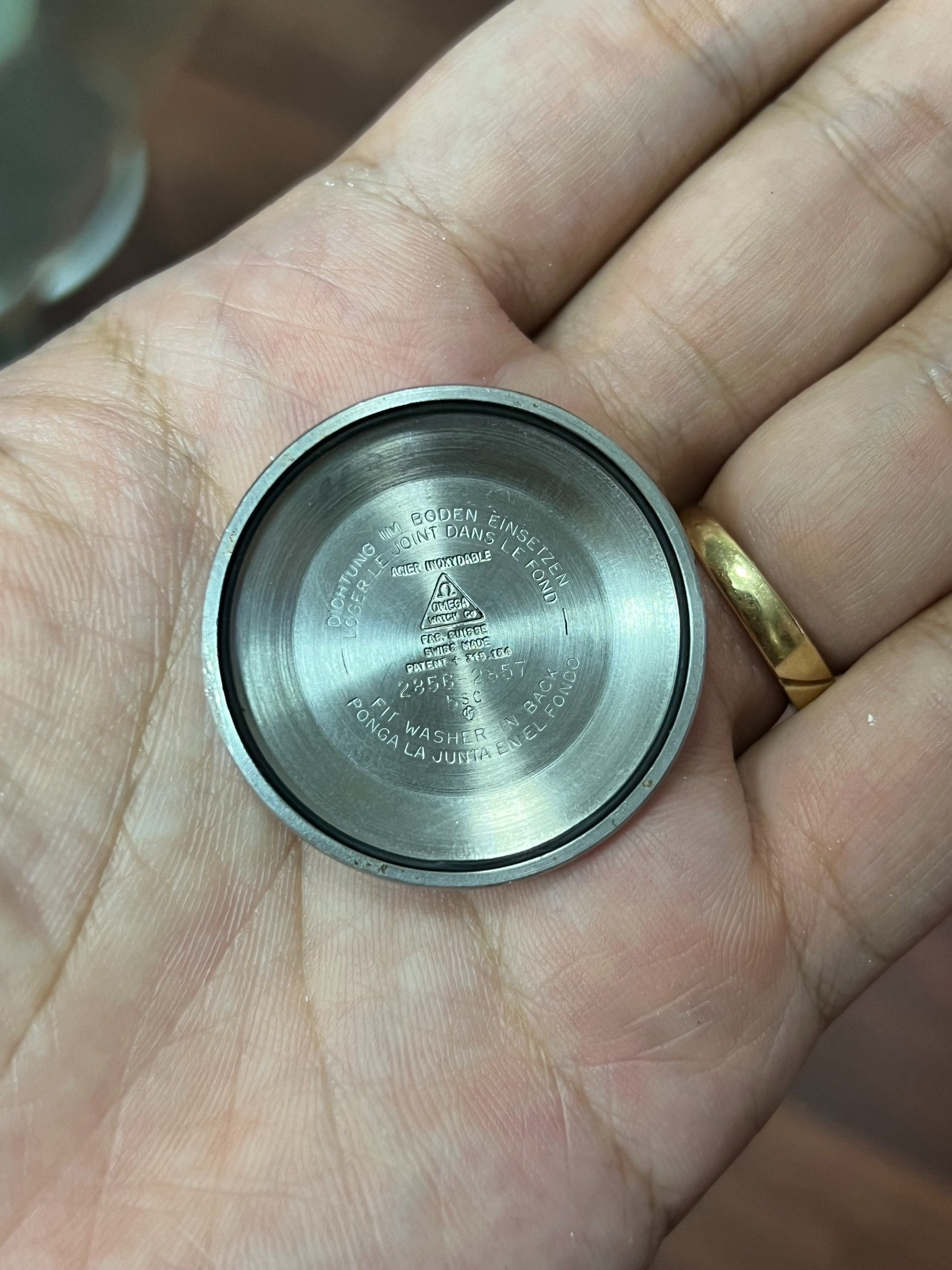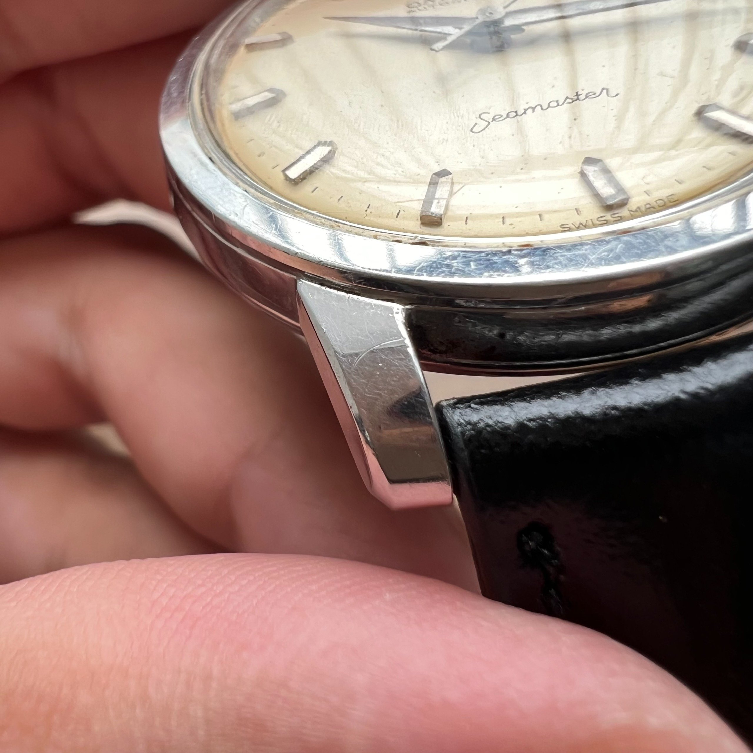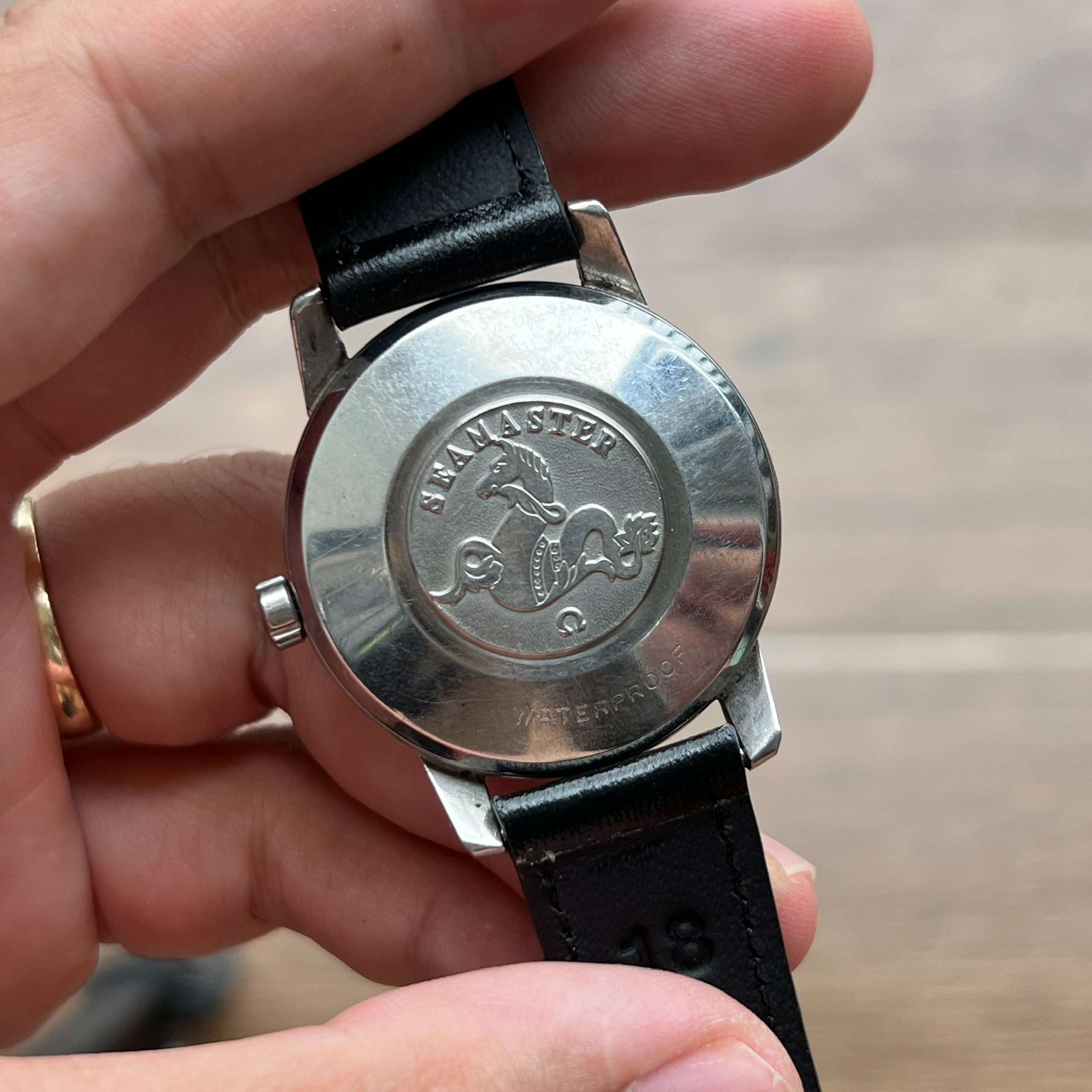 - Case: 36mm w/o crown, Sharp case with facets of the lugs are still well visible, may have been slightly polished in the past with hairline scratches. Large Hippocampus logo in the back which Omega only produce on 1 year - 1958.