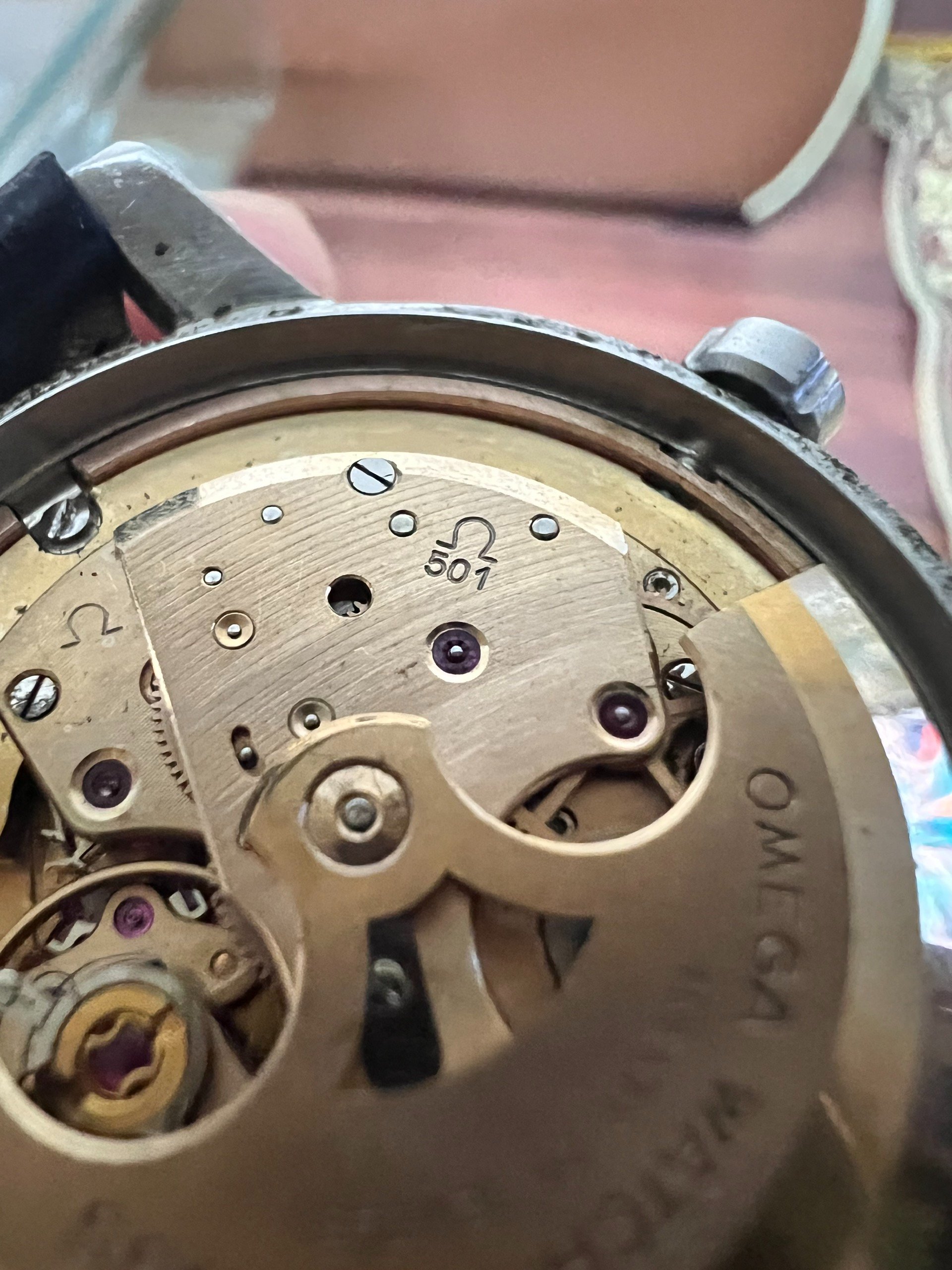 - Movement: Power by Omega cal. 501, running, winding smoothly, unknown service and untested for accuraccy.