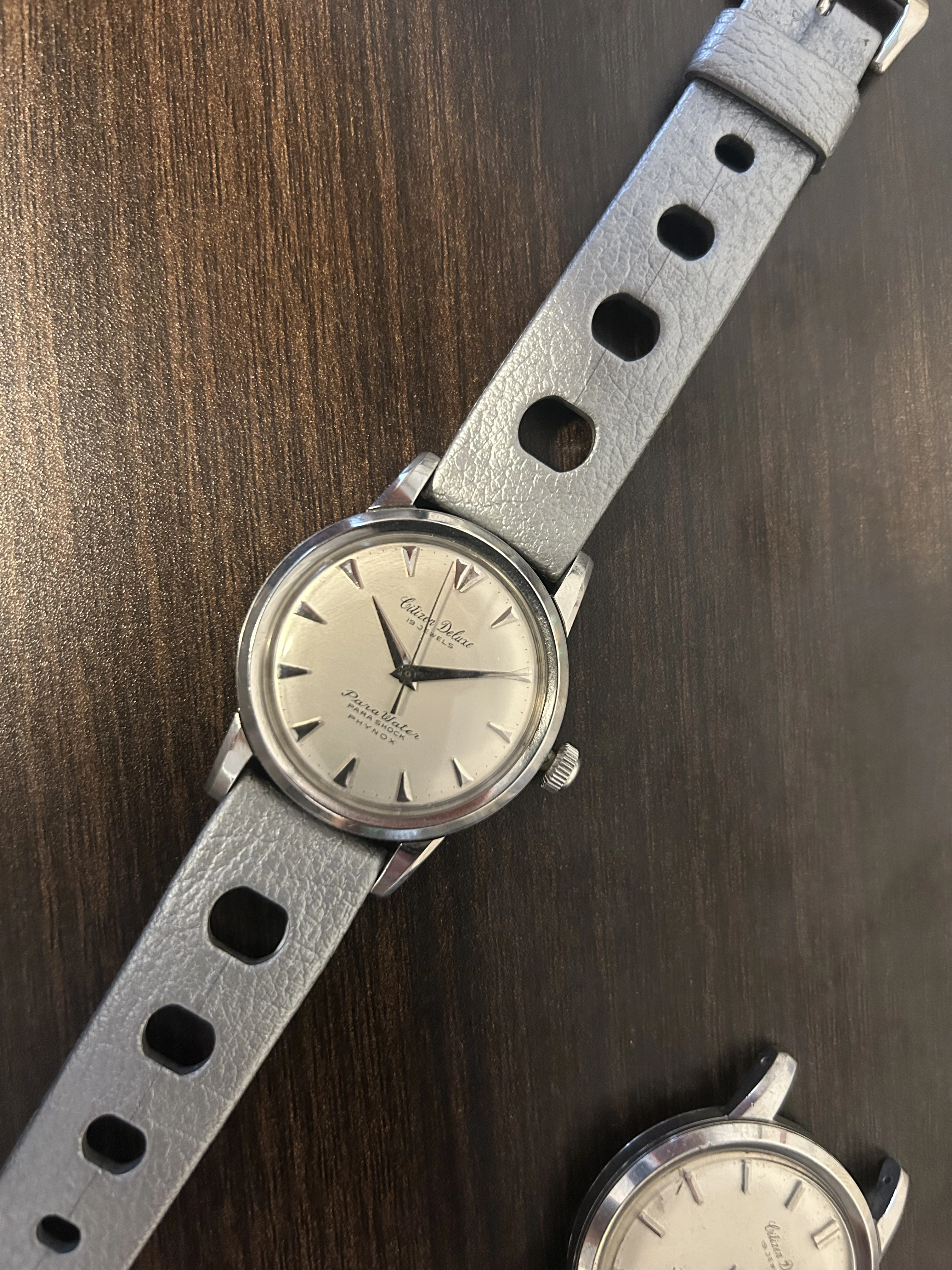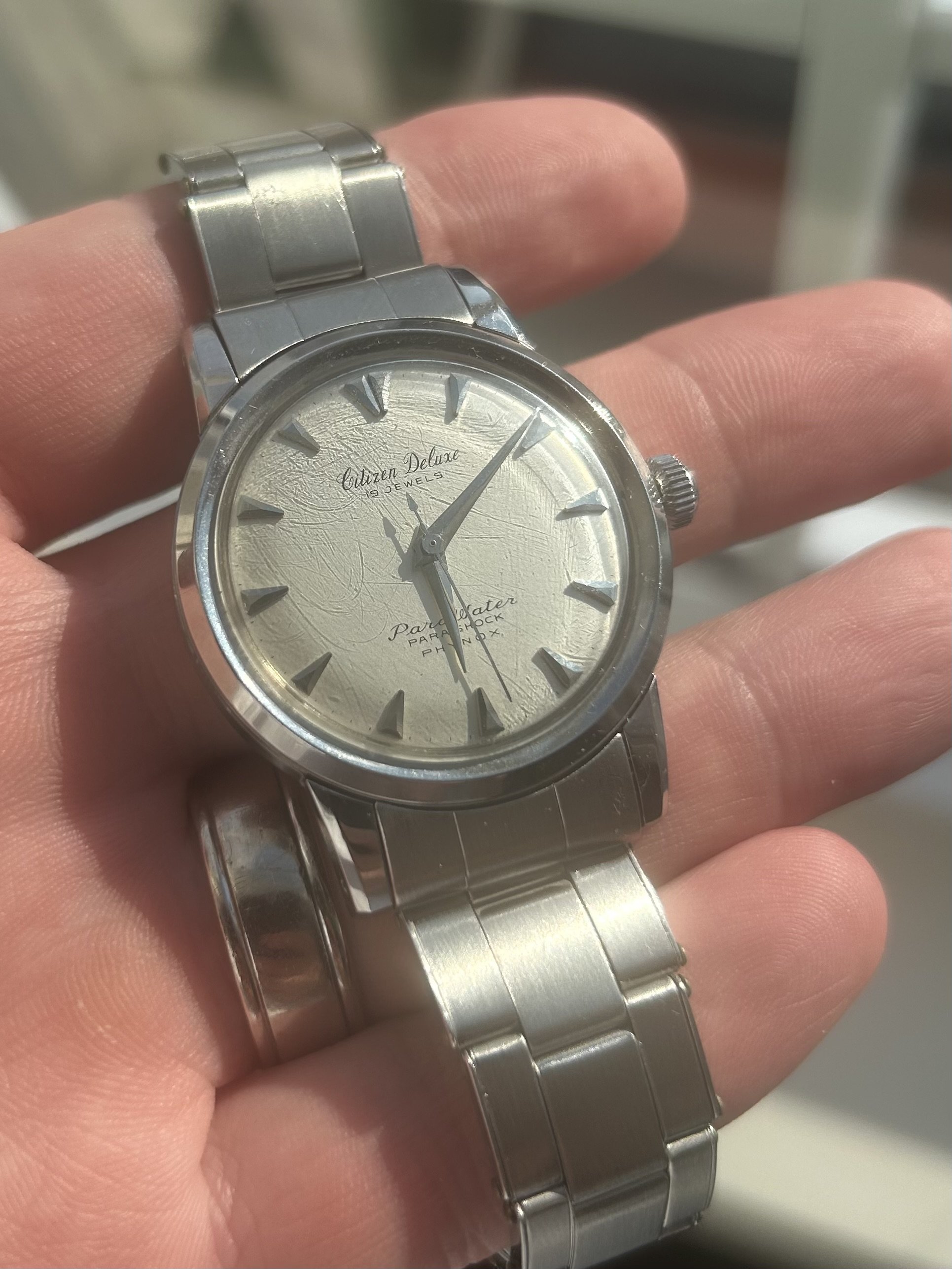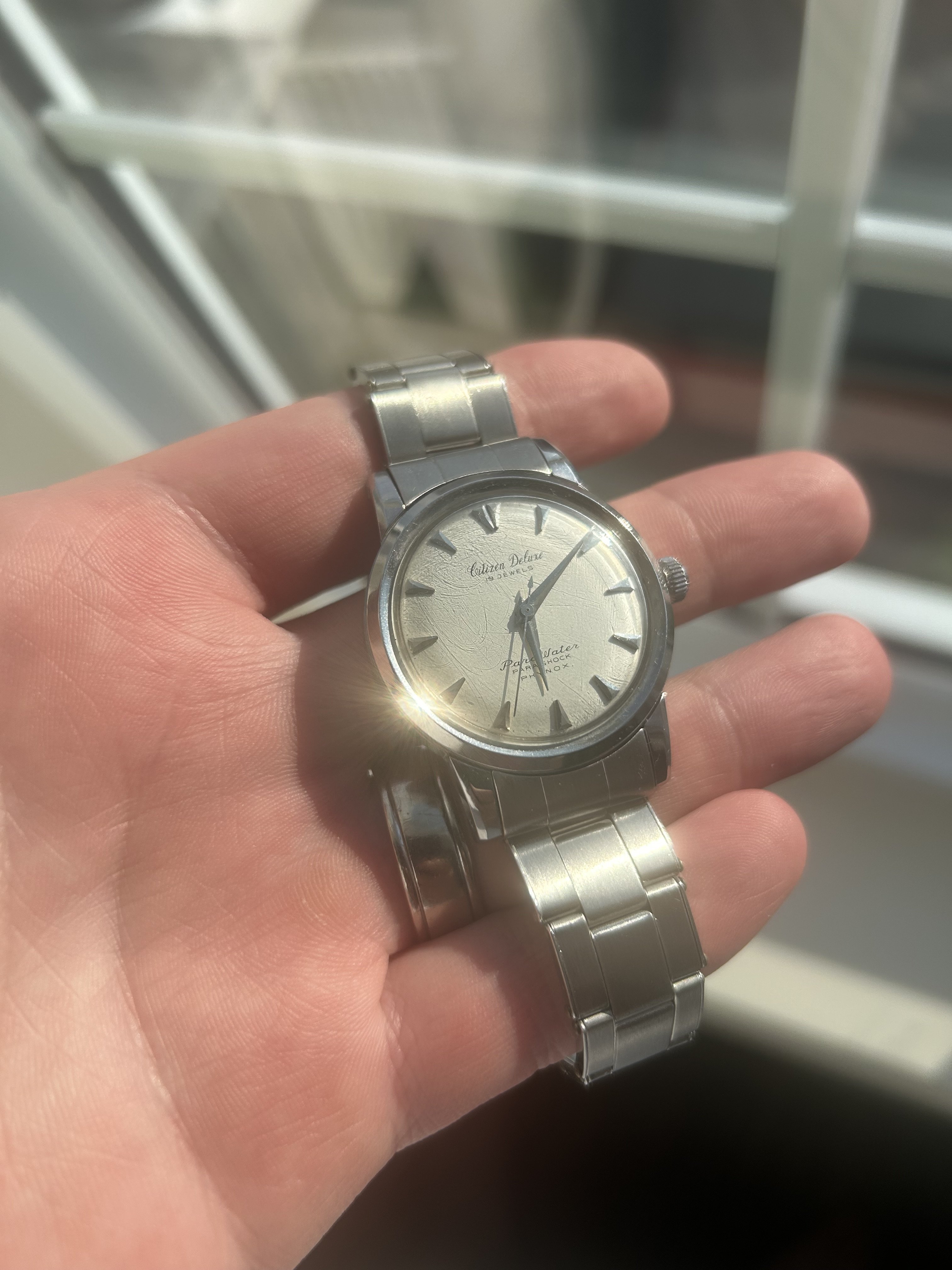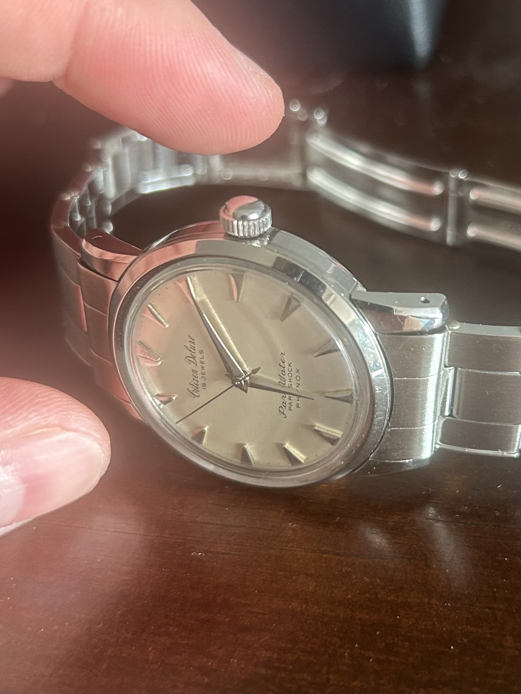 For sale is my 1959 Citizen deluxe parawater. Watch keeps time. Service history is unknown so recommend service for daily wear. Watch looks unpolished but not sure case seems sharp.