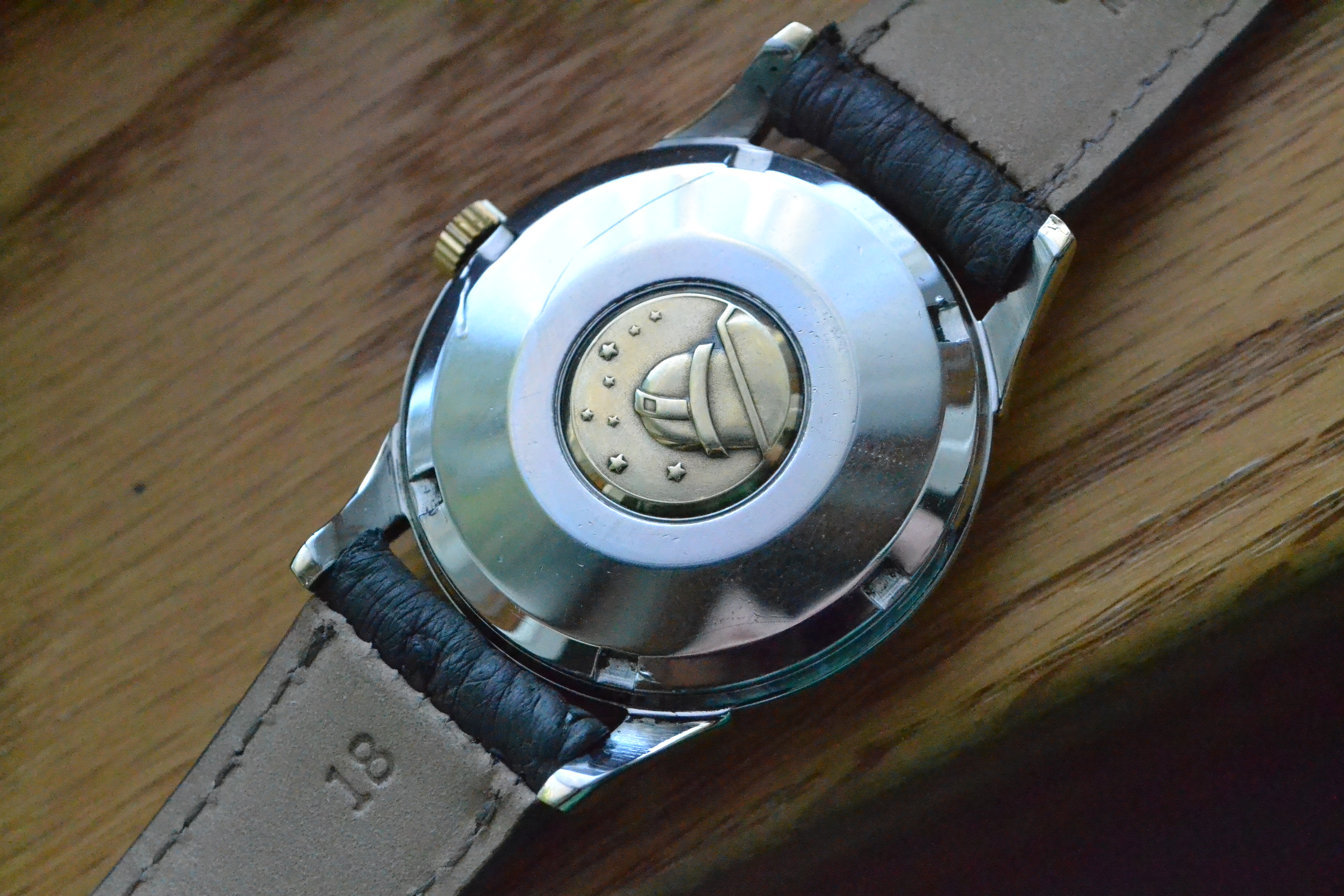The watch looked like it was a sock drawer find, and came from an estate sale. The case back was pretty much cemented shut, and needed my watchmakers special tool to open. Unfortunately, I scratched the back trying to open it myself. Also, the gold cap was completely peeled off the crown, and that needed replaced. Also, I'm having issues with the stem coming out now, when setting the time. Looks like it'll have to go back to my watchmaker 🙁