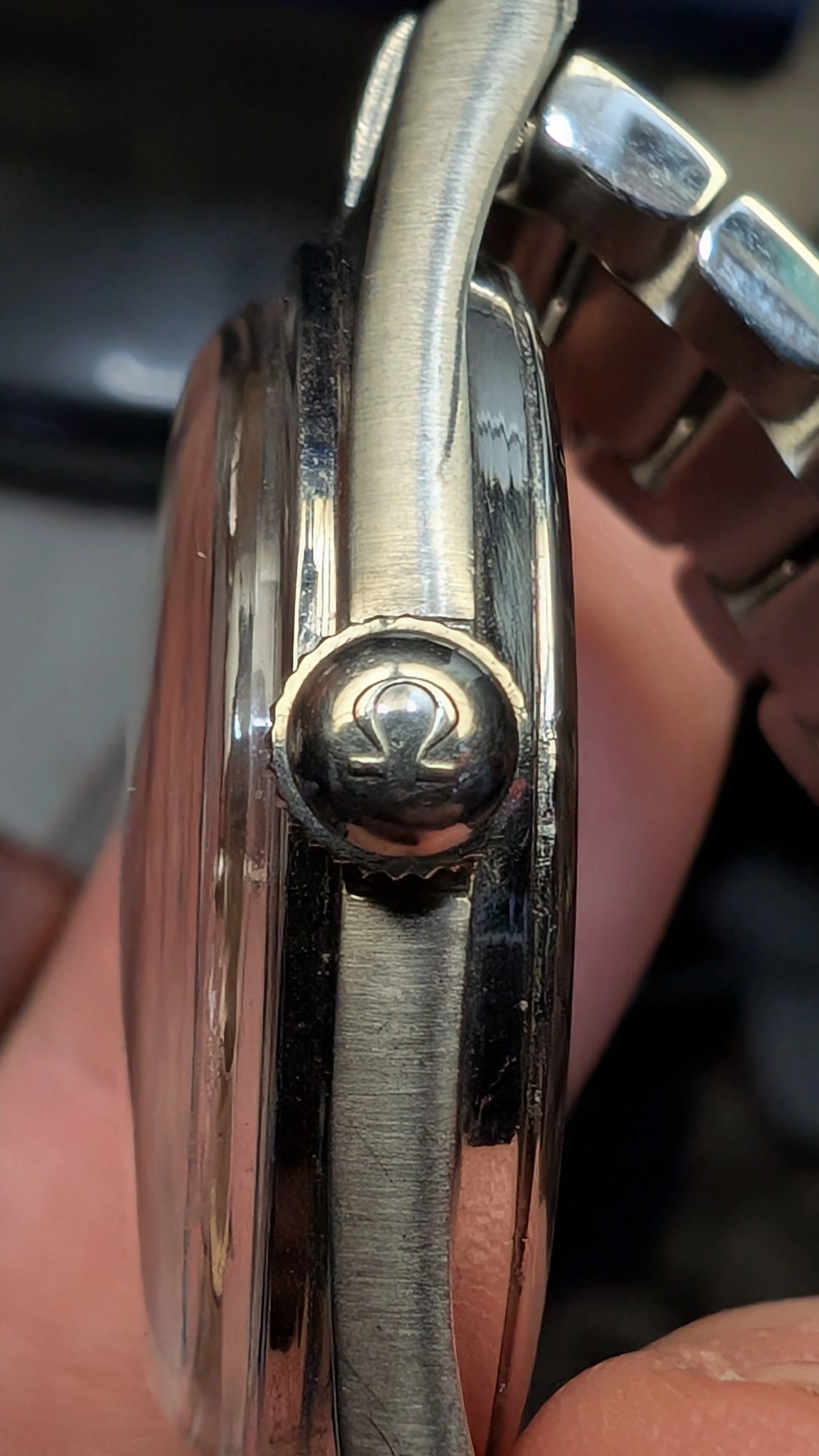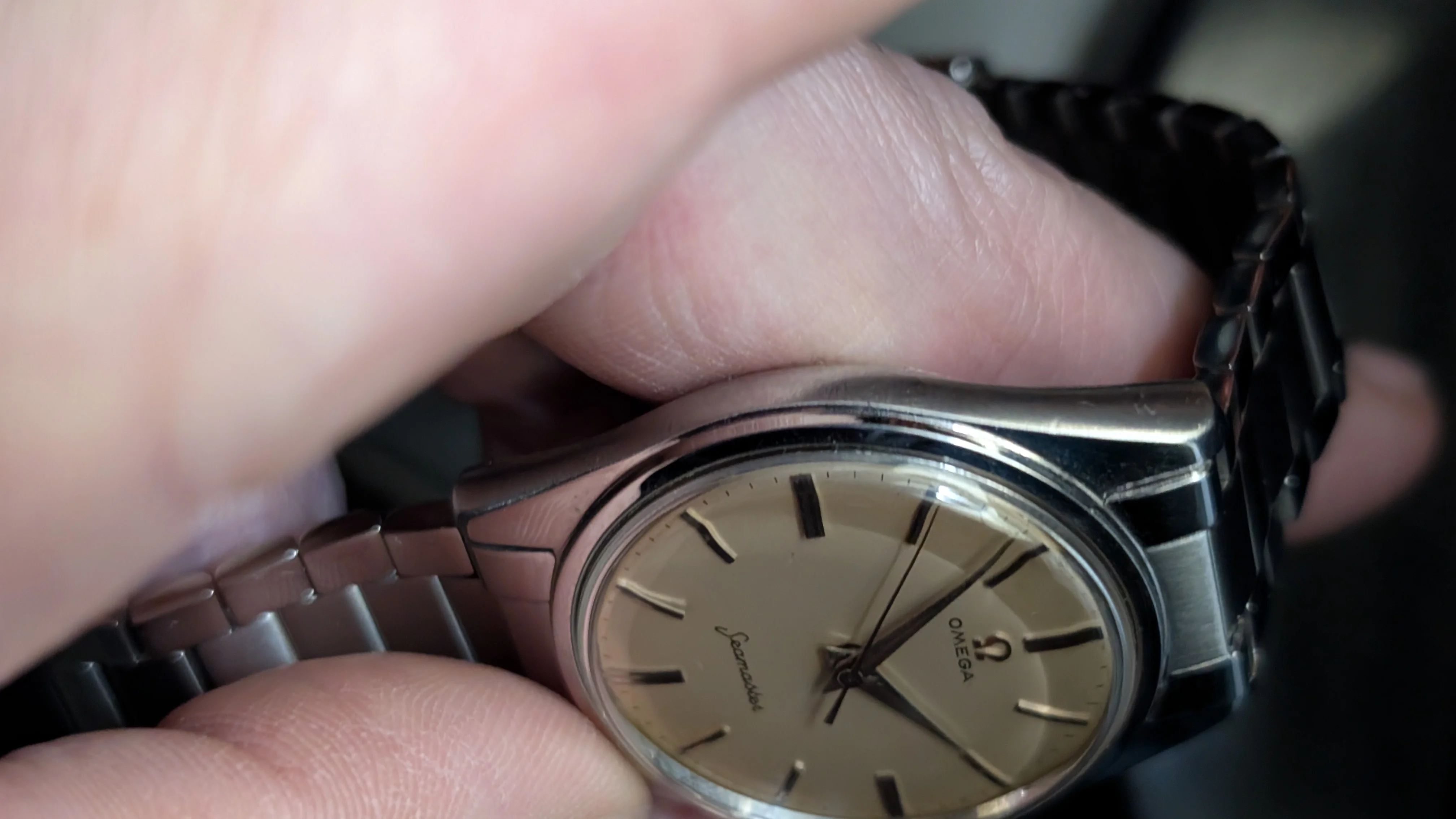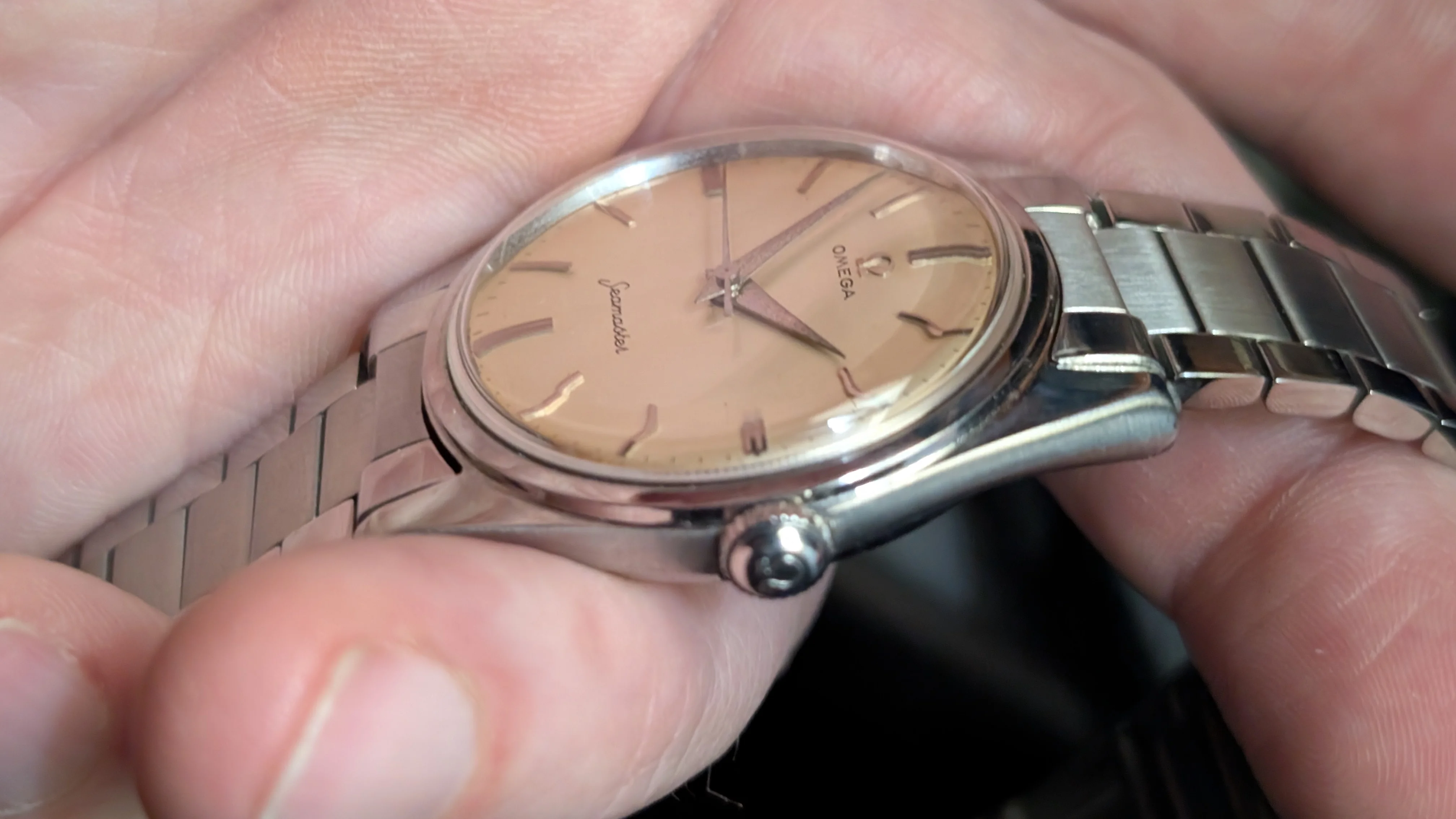 Here's a lovely 1959 Omega "Seachero" as they are known in collector circles. This is a very clean, original Seamaster dial with a cal 285 movement in the 17xxxxxx range in a 2990-1 SC / 2996 case that's, IMHO, in beautiful condition with only slight patina. Paired with this Uncle Straps (Seiko) flat link bracelet, it's vintage charm is on full display.