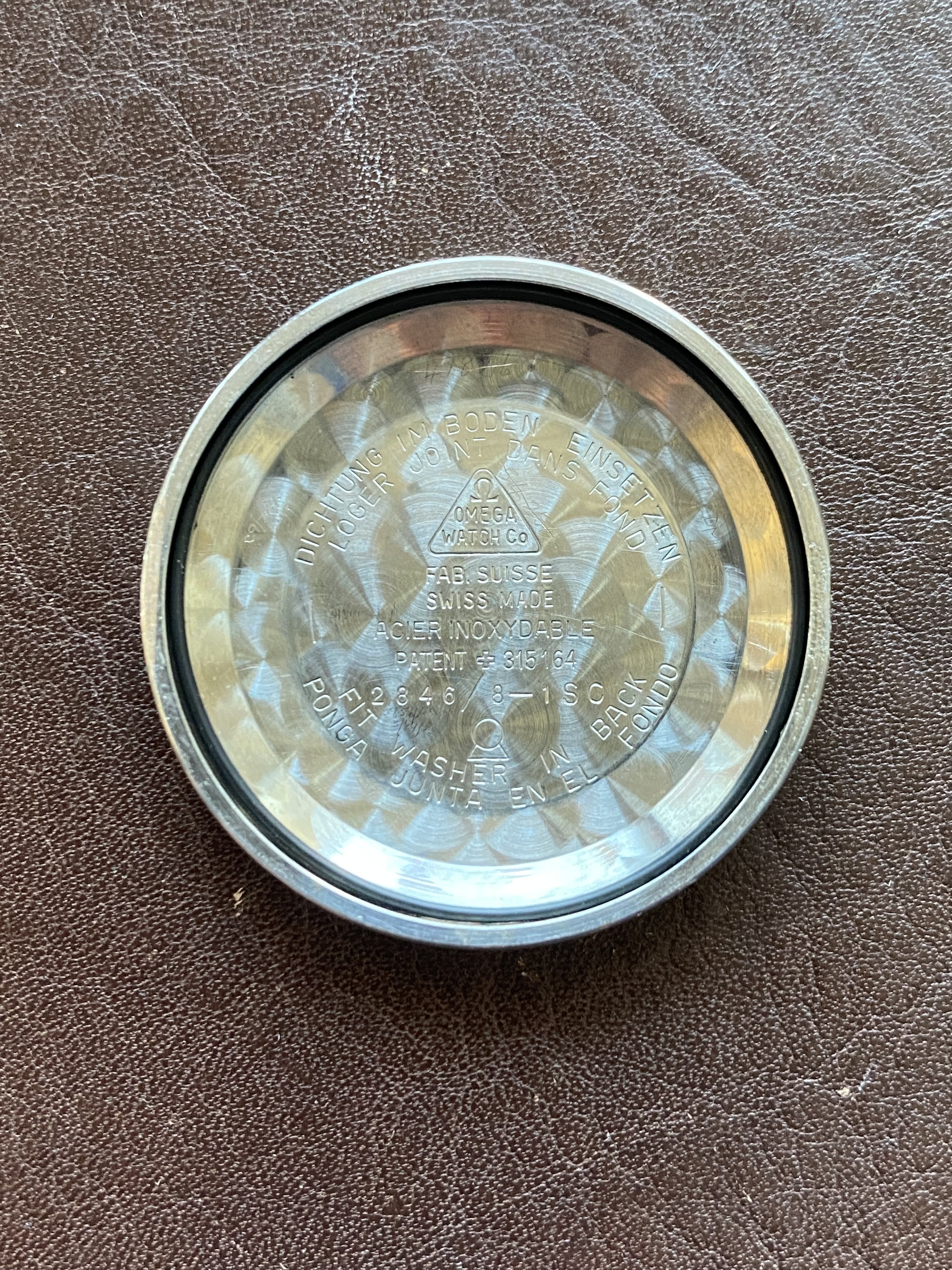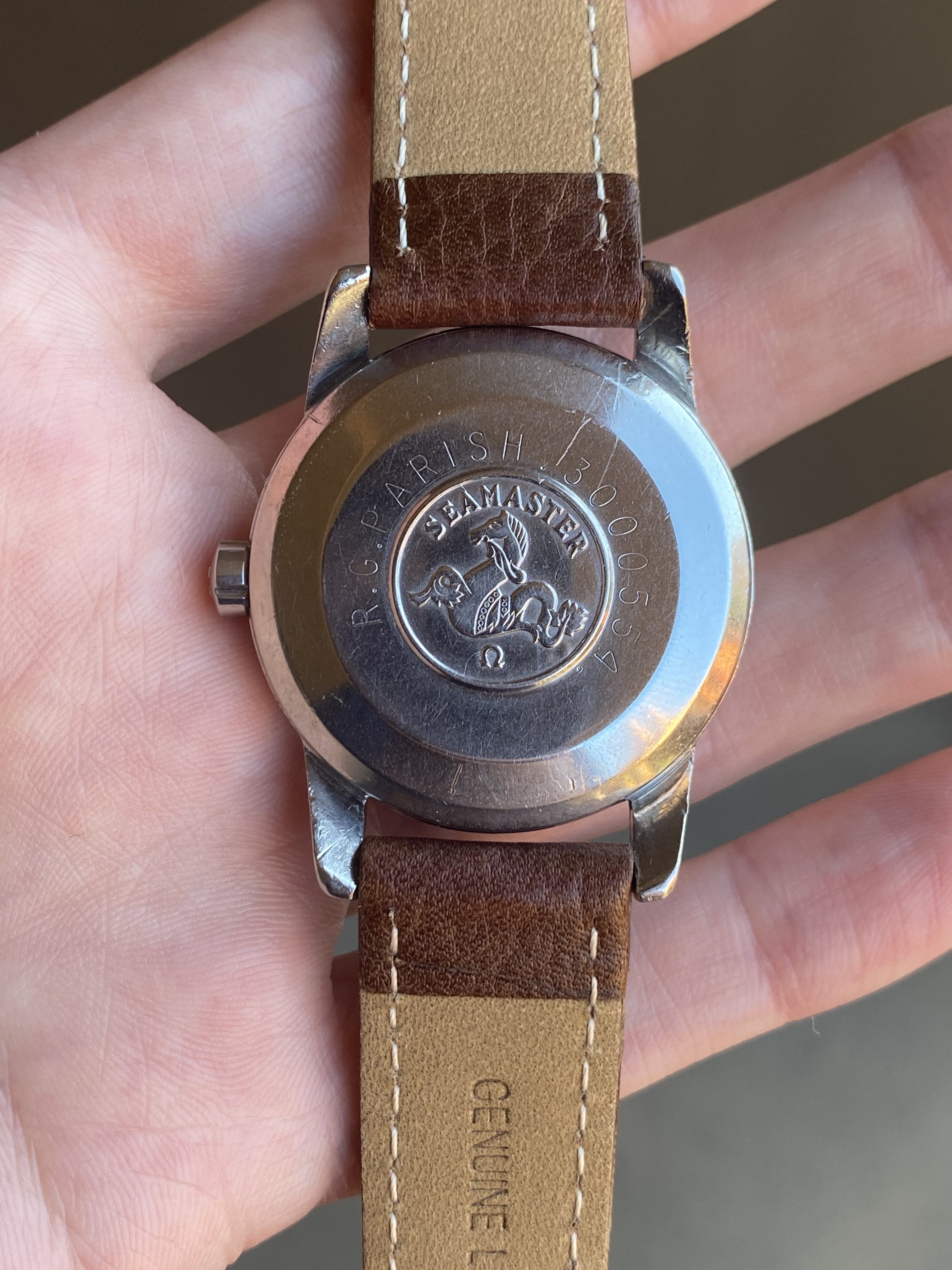Case: The original 34.5mm stainless steel 2846 ref case has some wear and may have been polished in the past. Caseback has an engraving, potentially military related (not confirmed).
