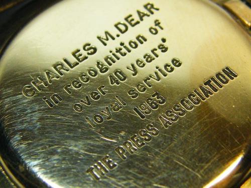 From my research, it is a 9ct gold case (with Dennison and Baume stampings) and the movement is a Longines 19.4S manual wind with a serial number that dates it to 1960 or 1961.