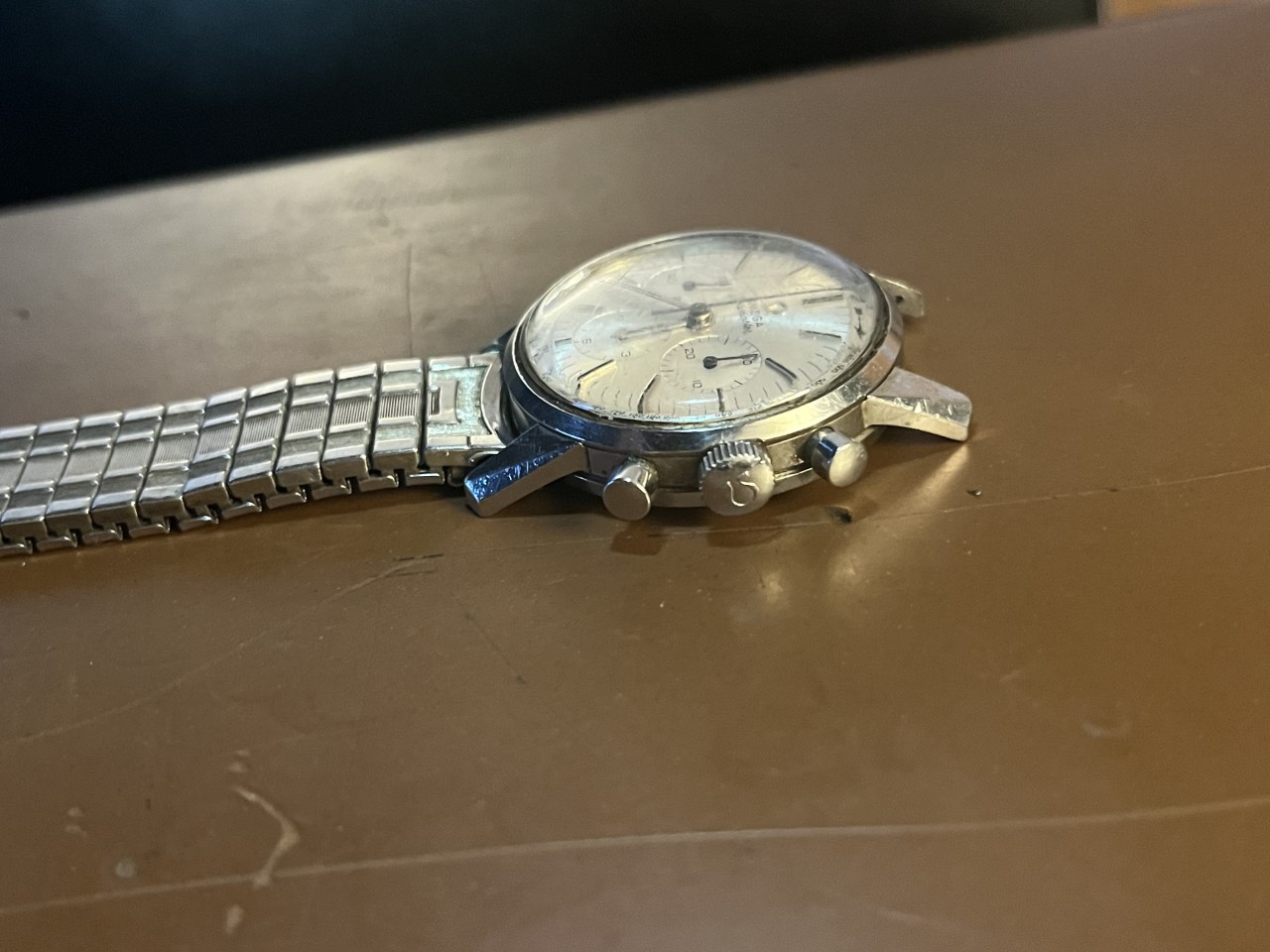 ·My wife's grandparents generously gifted me this watch. They knew that I was interested in watches and gifted me this (and a Wakmann Triple Date), along with several other 1960's watches for Christmas. I have visited a watchmaker and was told that for around $700 it could be made to look brand new. This watch maker is very professional and gets great reviews locally. He works on high end watches. He has special polishing wheels as to not degrade the facets during polishing. Any suggestions regarding polishing the case and the crystal? I'm really new to this and I don't want to ruin this watch. Also, I plan on keeping and wearing the watch. I just don't want to completely ruin it's value. Any help or suggestions are greatly appreciated. Neither the Omega or the Wakmann are currently working. As you can see in the last pic the caseback indicates that the ref # is 315.164 and CK2947/1