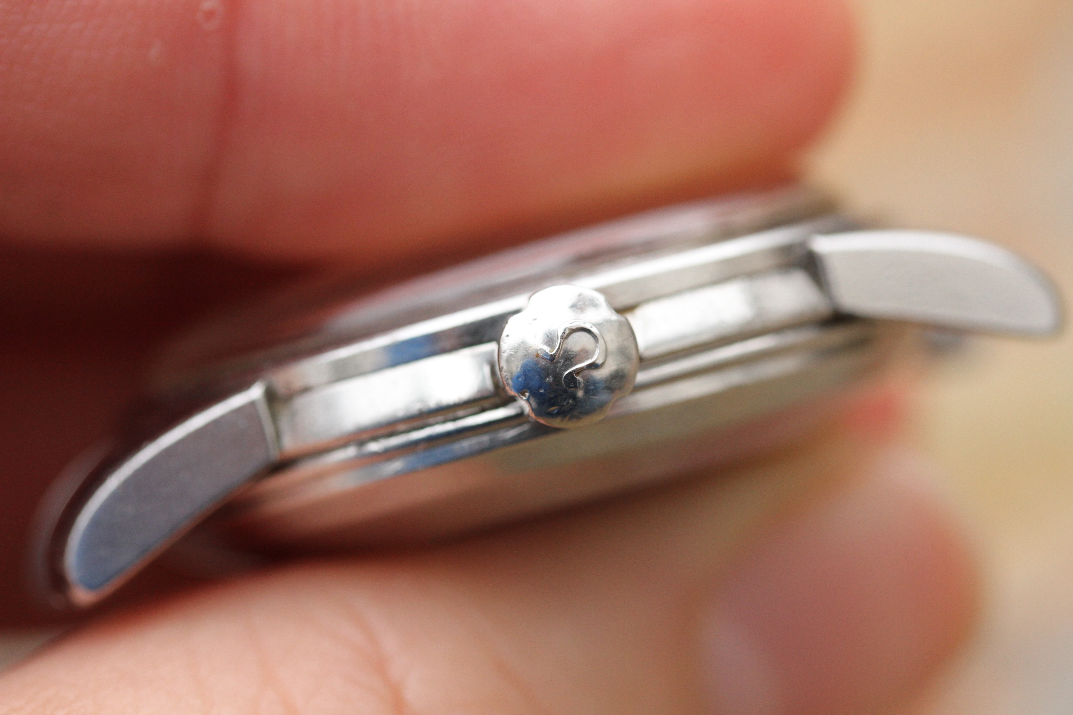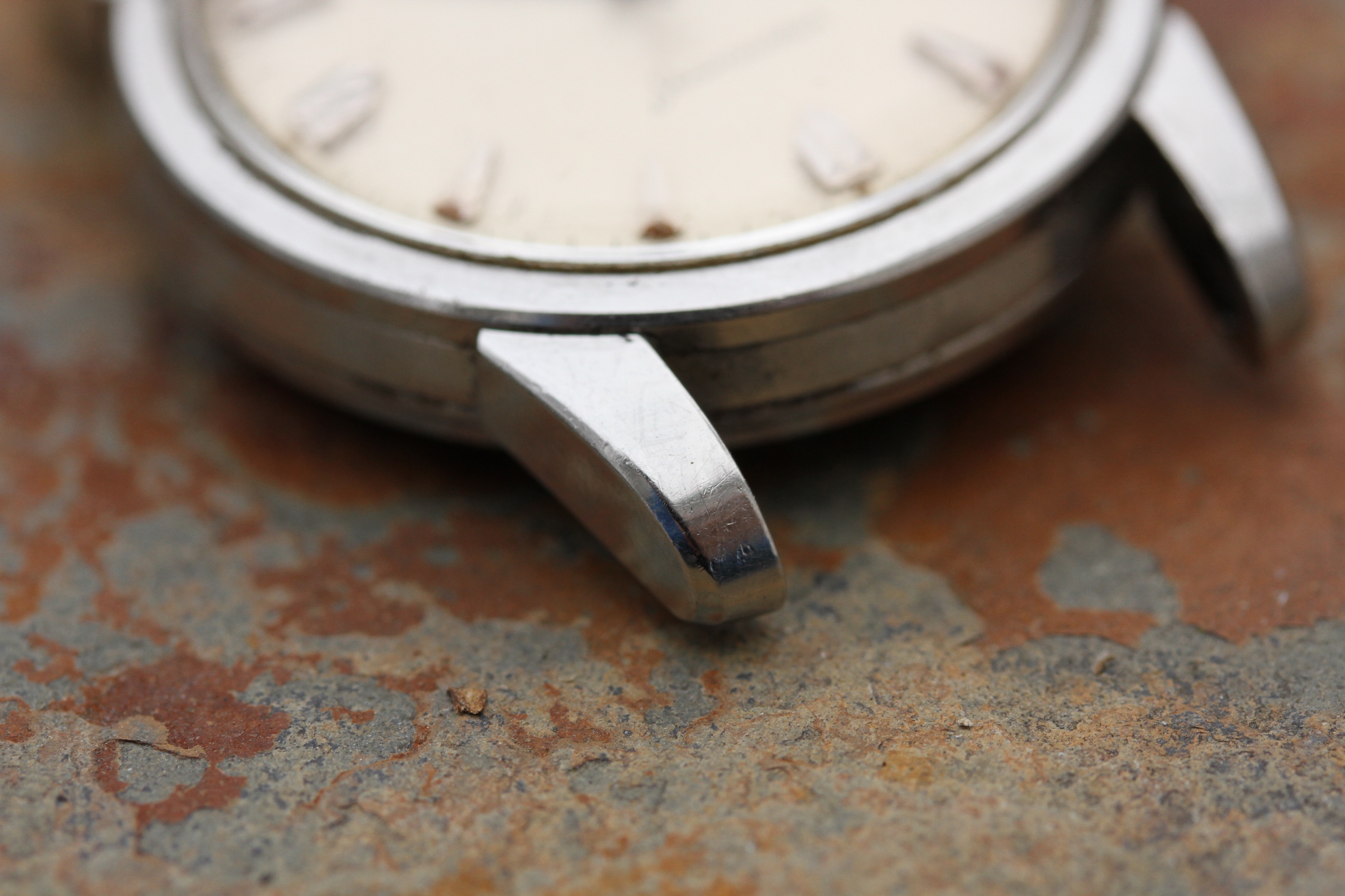 Excellent vintage condition watch without any major dings or dents. Watch shows signs of wear, but appears to be close to unpolished with original beveled lugs. No corrosion or pitting.