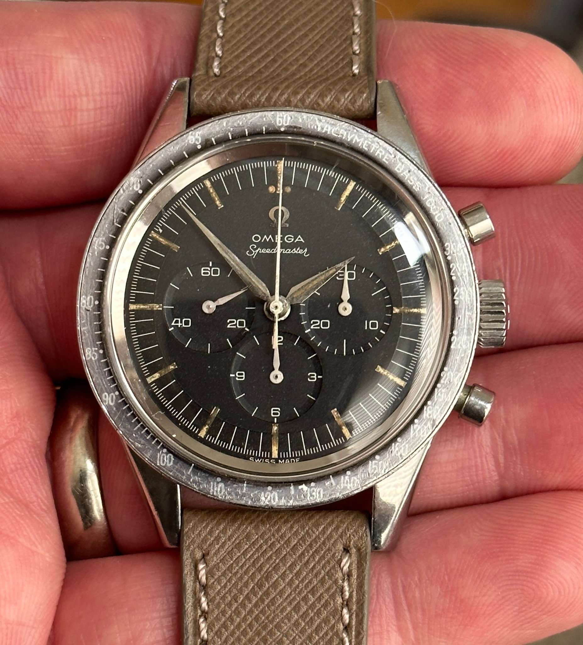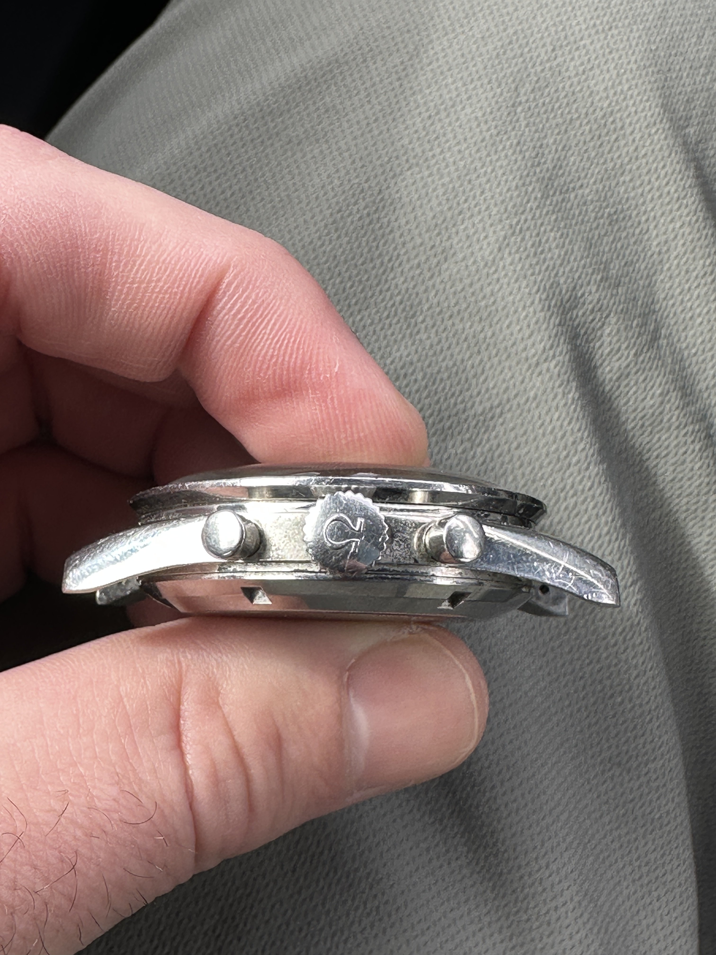 Case: Straight lug symmetrical case has been polished in the distant past. Case shows wear/scratches/dings, but nothing deep or that seems out of place I would pick out that doesn’t match the overall patina. Case back has a nice hippocampus and good threads. Omega replacement crystal.
