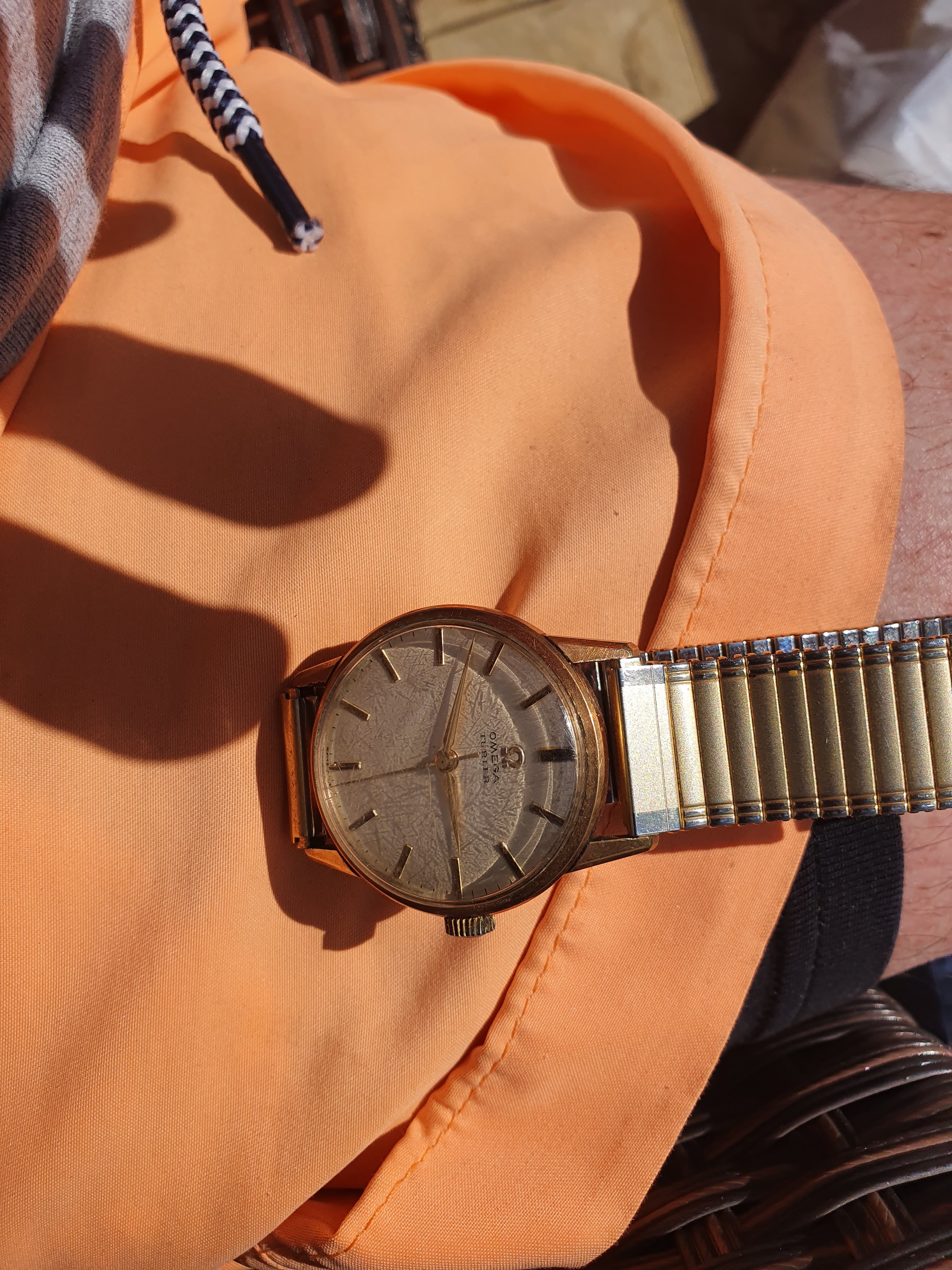 If you could make you first picture as good as your second two, and make all three even better, it would be easier to appreciate the watch. Because it is your father's watch, there is no monetary value equal to the personal value it has for you. Searching for all watches on eBay with the Turler name will give you an idea of what premium it might add to your watch. The bracelet looks to be worth very little...but again, if that is how your father wore it, you might want to put it aside and just keep it. The crystal on the watch is badly scratched and should be replaced with an Omega crystal. You should make the effort to find a quality watch repair store that services and knows Omega. Gold plated probably has less value than regular stainless steel...but on your wrist, no one is going to spot the difference except a well educated eye. A basic Omega manual wind movement is a simple but quality piece of work. I would put a little money into and enjoy wearing it. It is still a handsome piece.