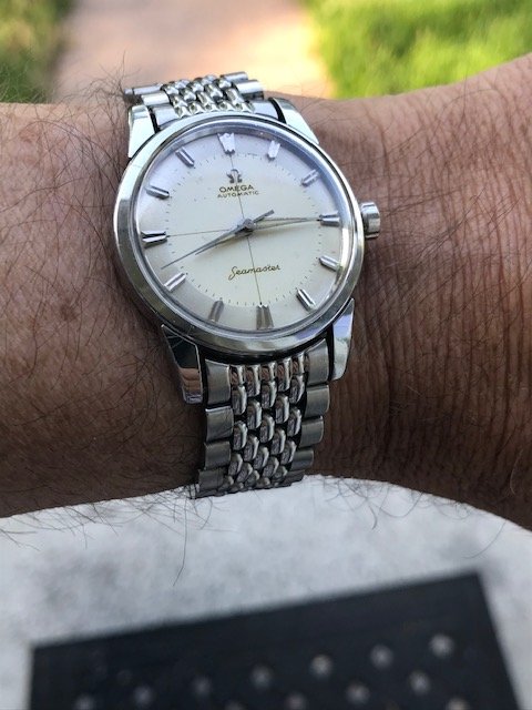 Been meaning to post some updates in the watch treasure hunting thread but wanted to first ask about this oldie but goodie Seamaster. Got it from a local family up here in snooty Connecticut and she's lookin AOK except the BOR head links appear too narrow for the lugs. I called it a 1960 model only because of the inscription date on the case back. It has one of those snap backs that I hate to pry open so I don't know the model number but hopefully some of you experts could clue me in as to what it is, along with suggestions on what # BOR head link would fit that case better? My guess is #11 but wanted to run it by y'all before I start hunting down a pair of them.