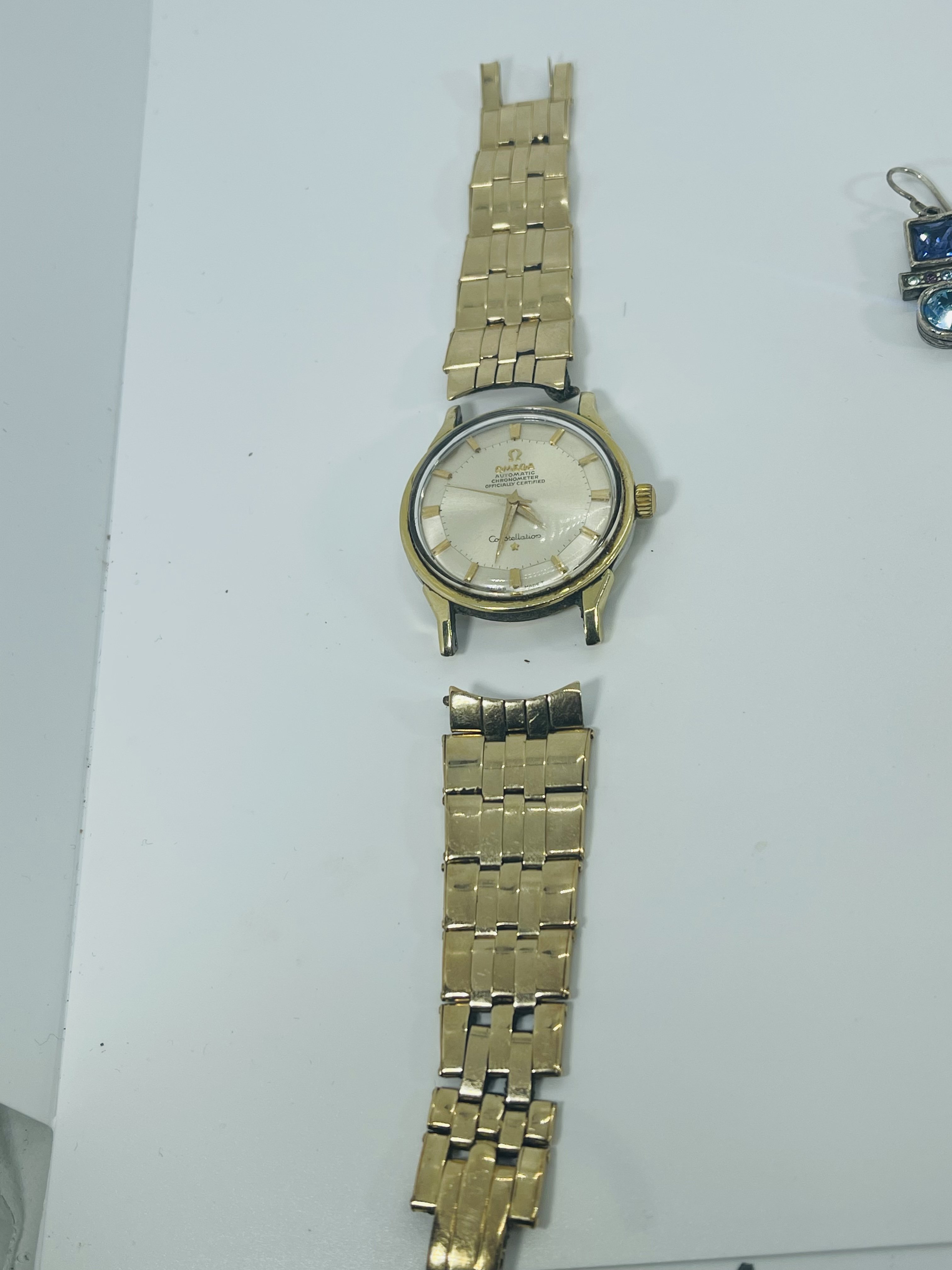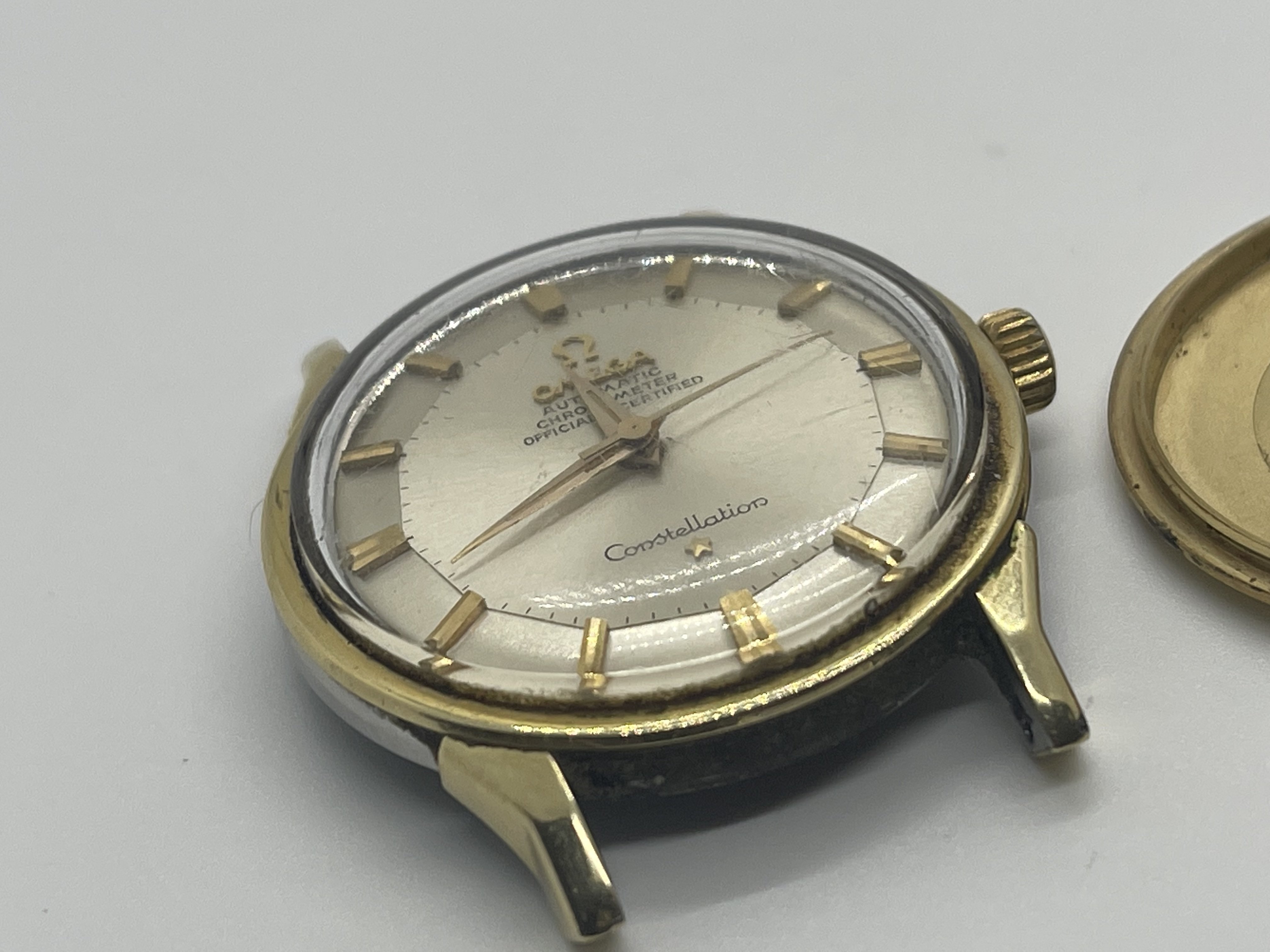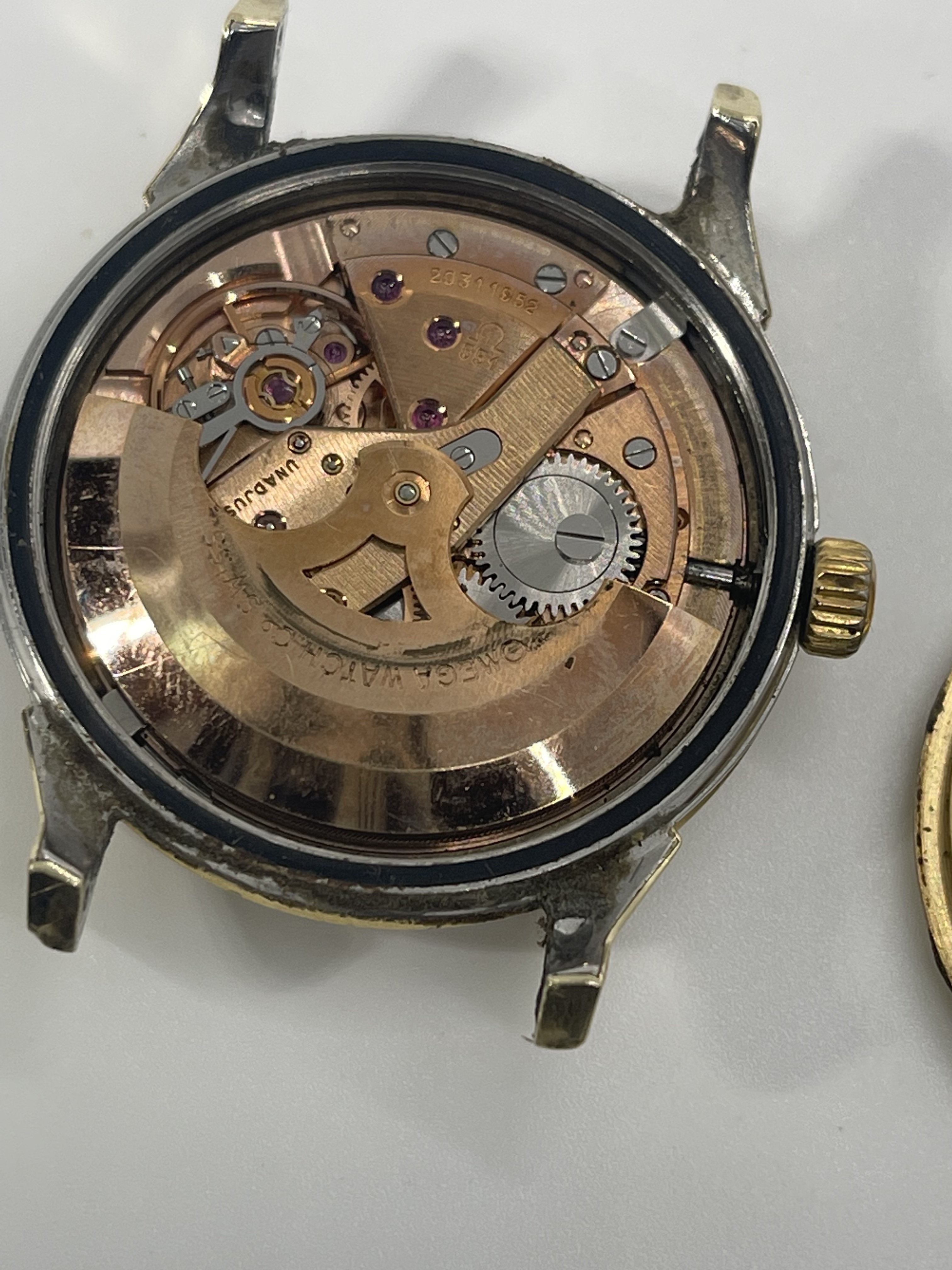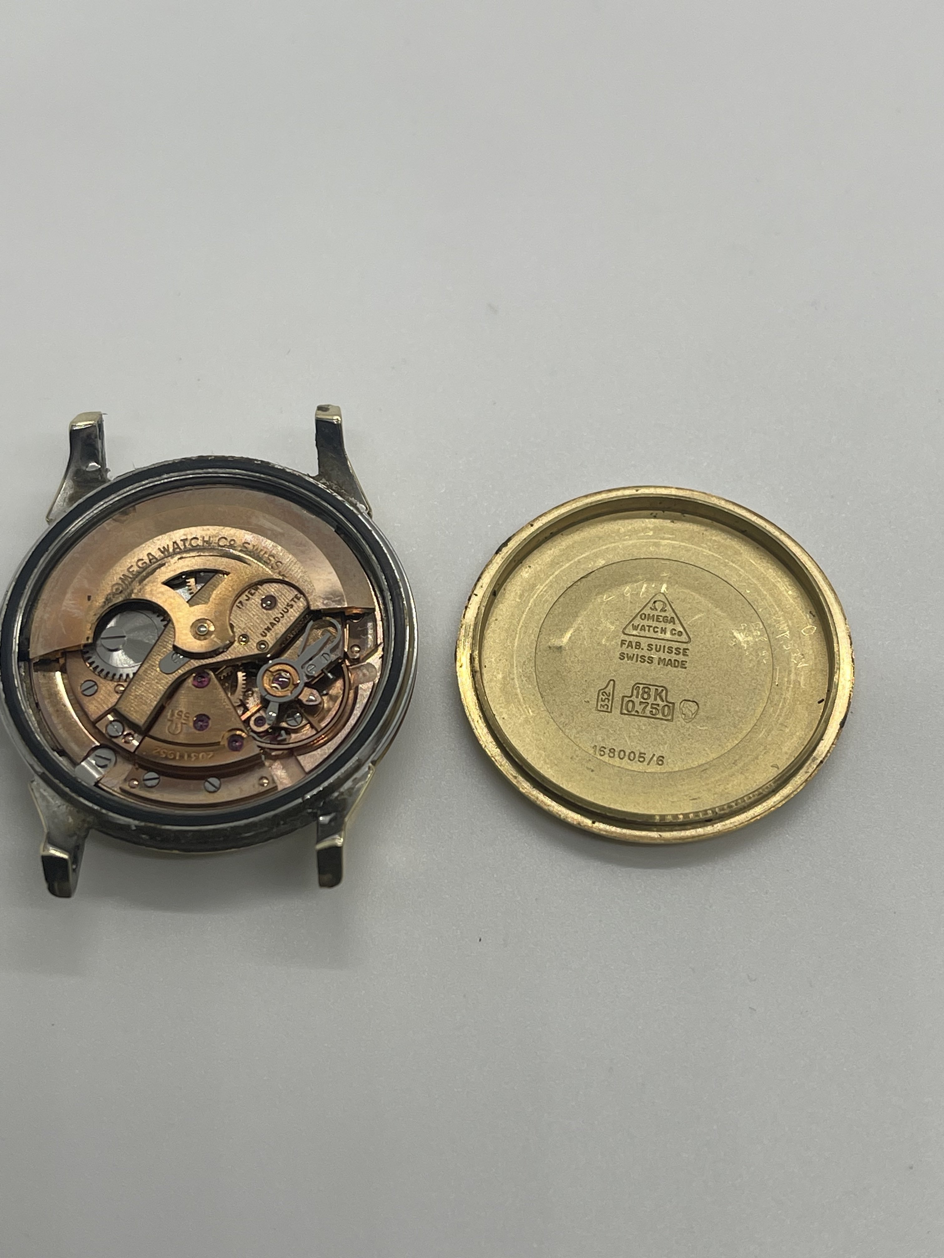 ·It has been a few years since I posted or commented. And hadn’t really had a reason or anything to post. I used to come across vintage Omegas for cheap at least once or twice a year. By cheap I mean under $100US. Pretty spoiled until the stores I frequented started examining their donated goods a bit closer. Anyway, I was checking out a store last week and imagine my surprise at seeing a Connie in a jar for $12.99! I immediately thought “take a picture for the forum!”. It needs a bit of work and since I still have some regret for selling the Pie Pan in my avatar, I am considering investing the time in getting this fixed. Several questions come to mind. The case back has a dent that is rubbing on the movement and you can see that in the pics. I suspect this must have happened in recent times or maybe happened and the owner stopped wearing the watch. Can this be fixed by a professional as well as the movement damage (if needed)? Also, this beauty came on a CDL 14K bracelet. Yes, I was simply shocked and went out to buy some lottery tickets after this! The bracelet is stretched and missing the end pin and I have no idea of the cost of having it repaired/serviced and I’m not even sure at this point if I would keep the bracket on this watch anyway. Gray & Sons in Florida offers gold bracelet repair but I have not contacted them yet and based on the damage that was done to a previous barn find (67 Speedmaster that I regrettably sold), I would rather have any work done by folks suggested by this forum. Any suggestions would be appreciated. Oh…and before I took these picks, I dropped the watch (minus) the bracelet on the cement floor of my basement! While small, there is damage to the top right lug of watch that reminds me I can be an idiot sometimes. Anyway, any info about this model or suggestions would be greatly appreciated!