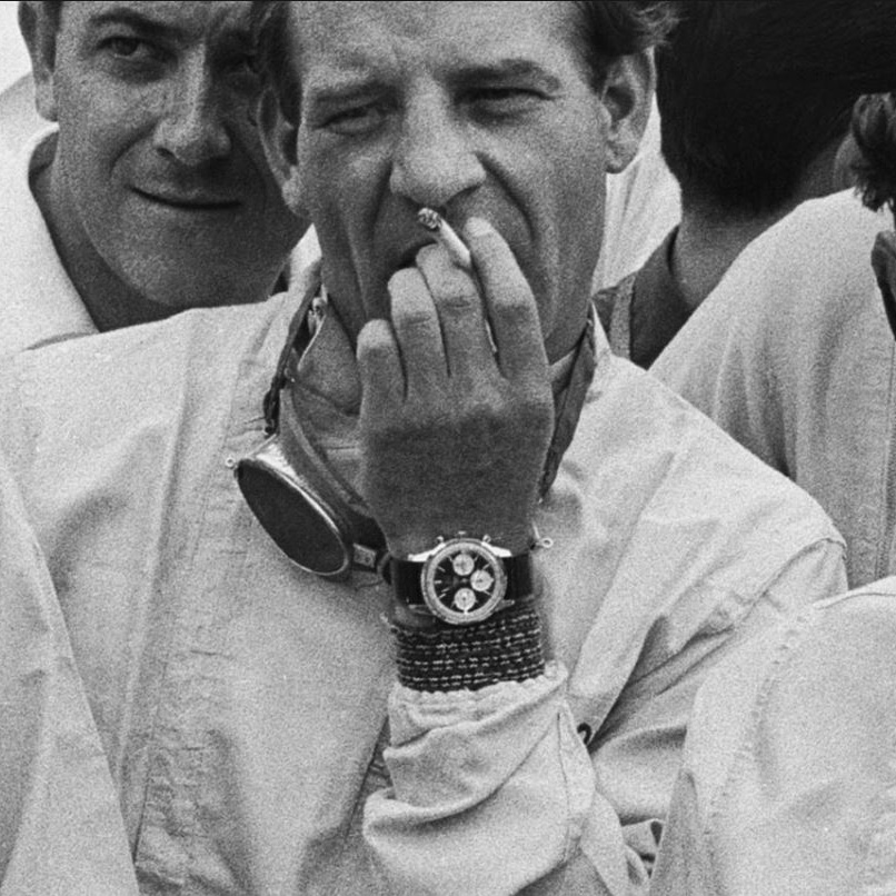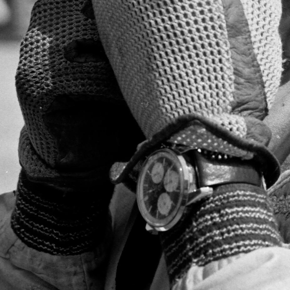 When I was looking for Jim Clark pics and his connection to Enicar, I came across other, some more some less famous drivers that were wearing a Sherpa Graph on their wrists. What I found out about Jim Clark you can find here: https://enicar101.com/2021/11/19/the-correct-reference-of-jim-clarks-sherpa-graph/