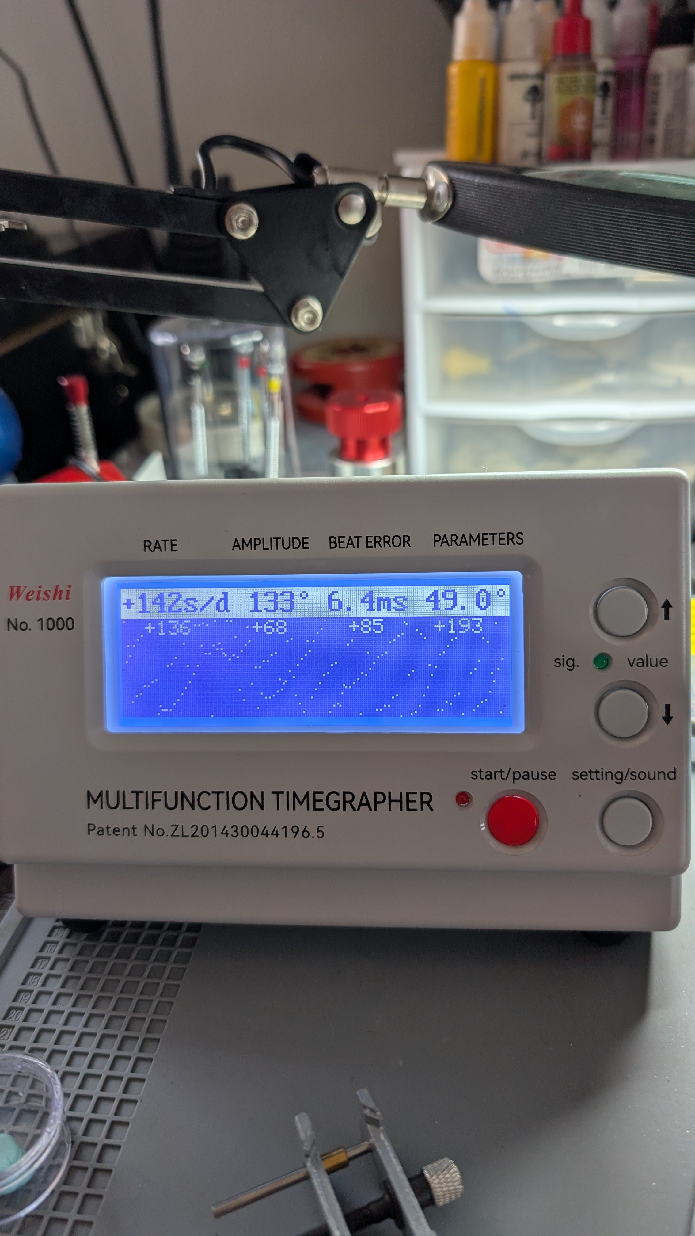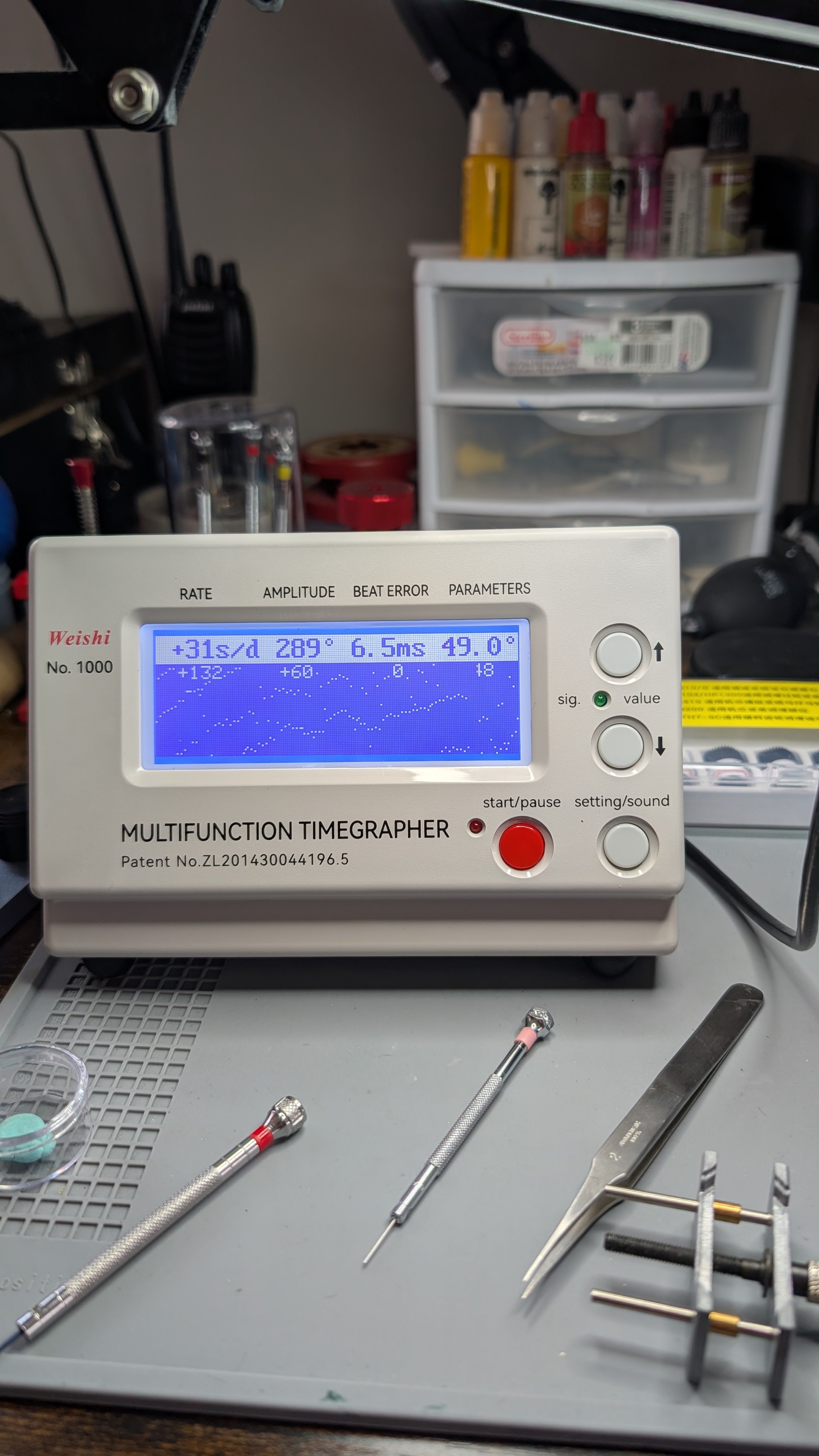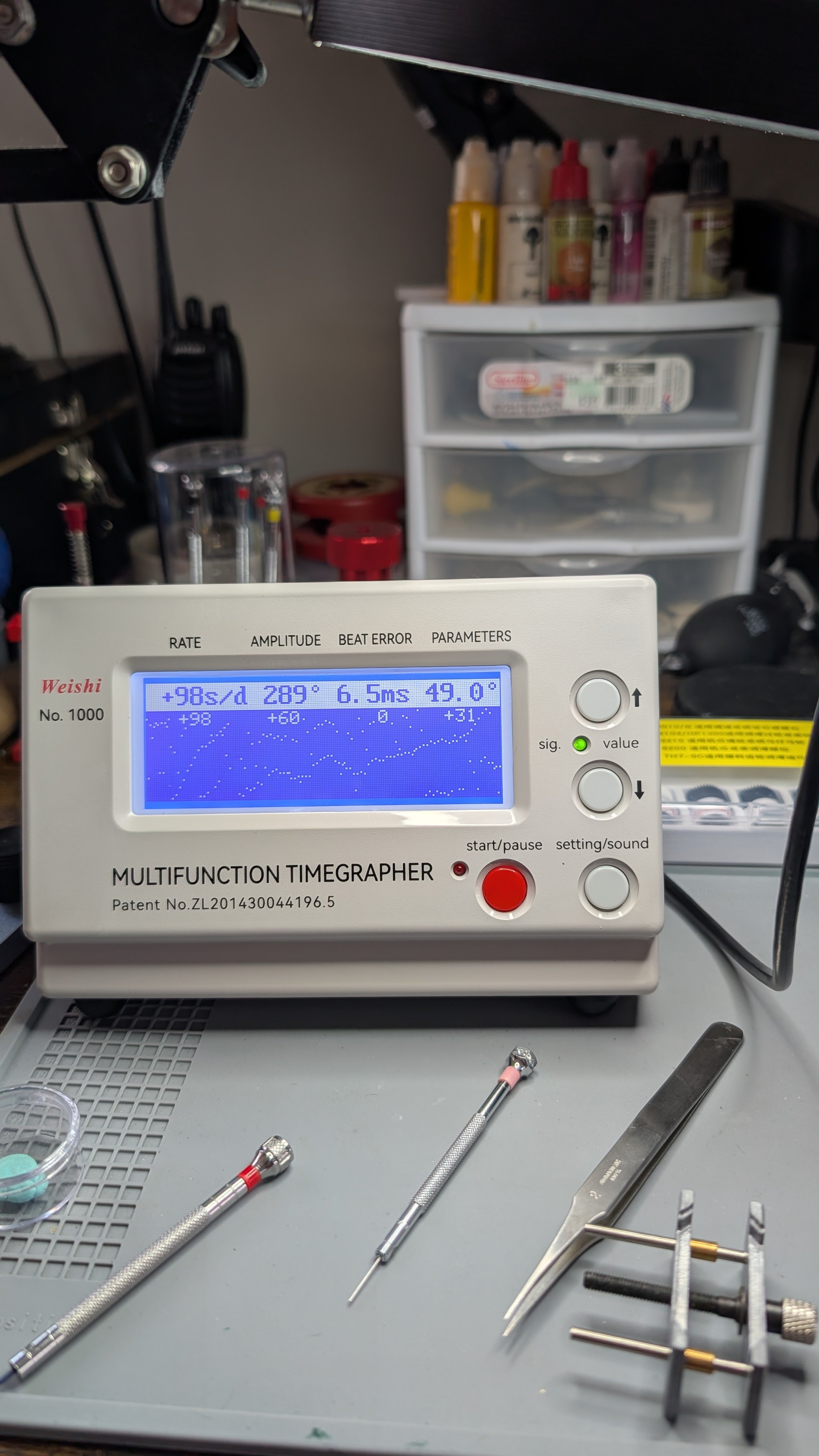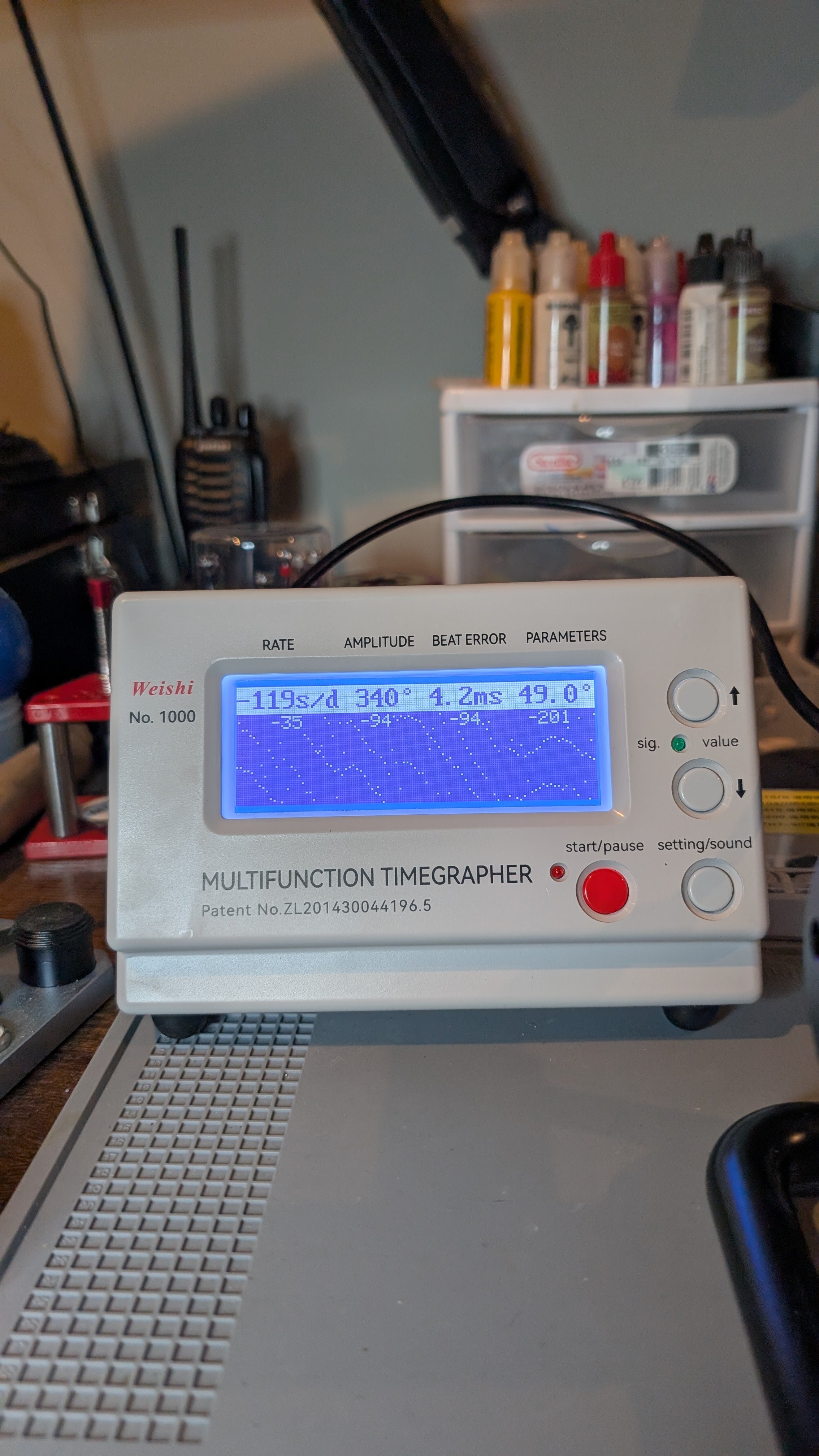 Ok. Got it all disassembled, and cleaned then reassembled and lubricated. Checking twice for which lube goes where. Now, after setting the balance (which took forever to get the impulse stone in right) it seems to be running really slow. putting it on the timegrapher and it goes for about 10 seconds before it says 'beat rate auto detect', it doesnt seem to be able to pick it up. What could i do to strengthen the balance? It is running visibly slower than the last time i had it assembled! go figure...