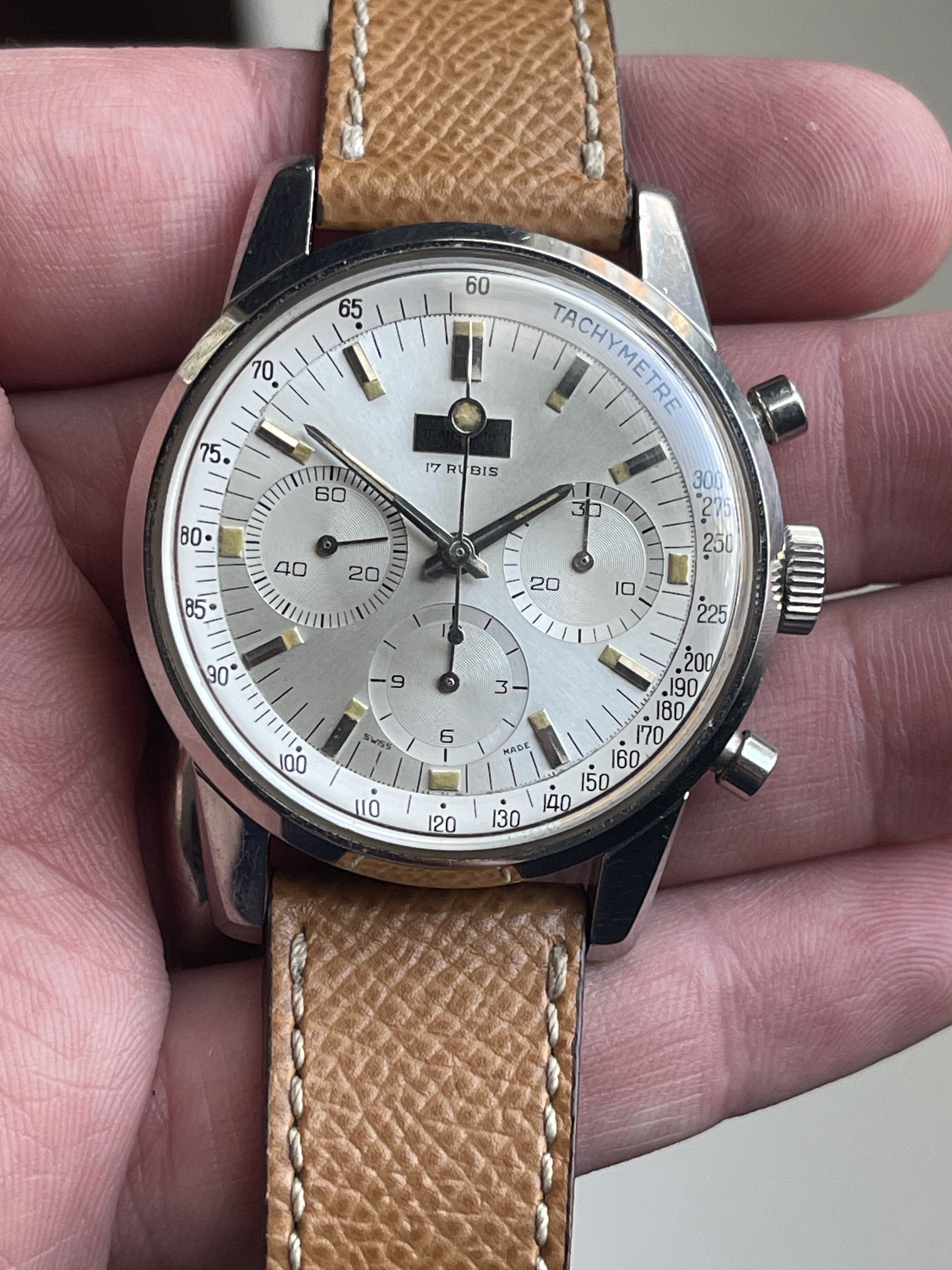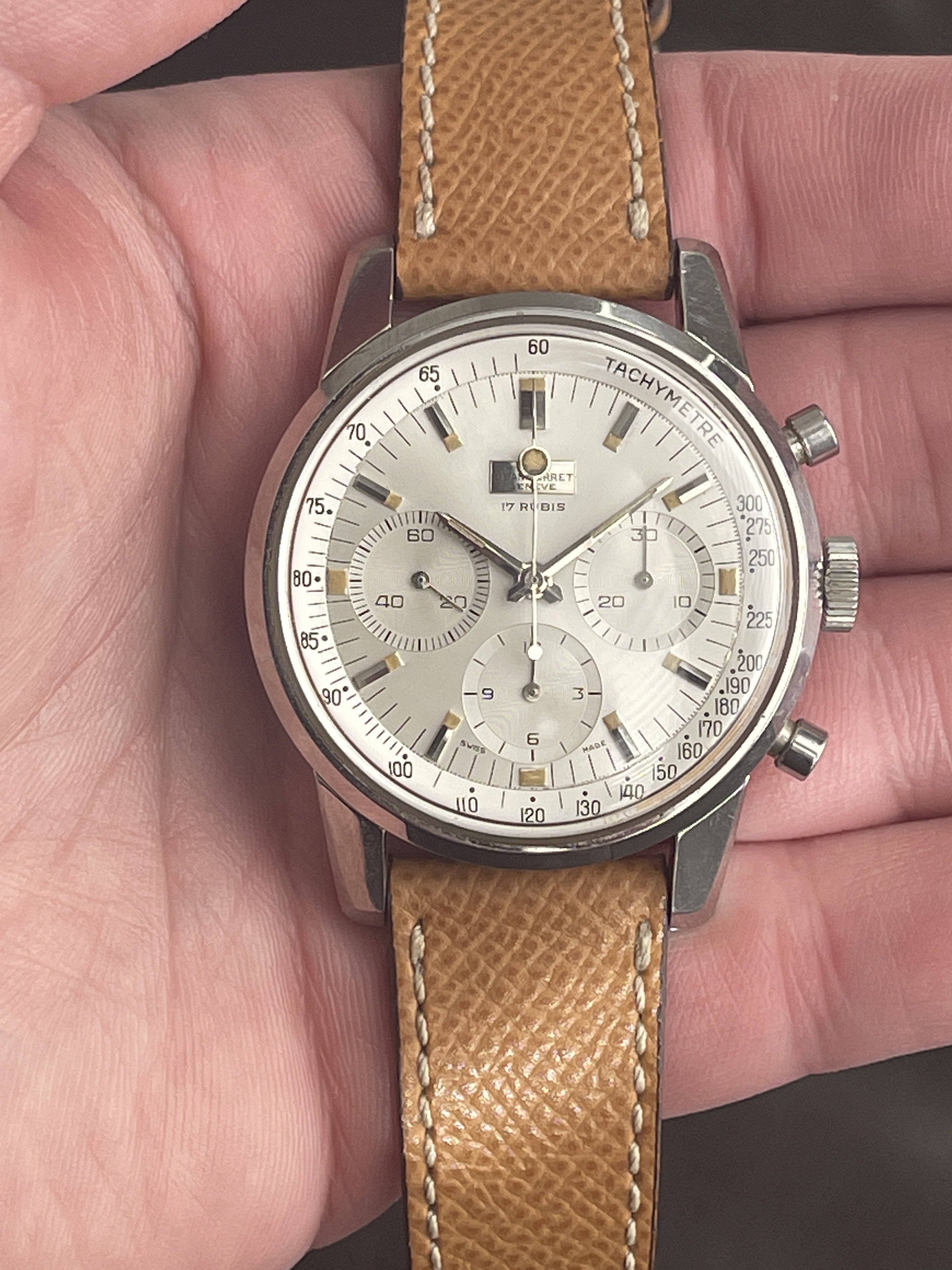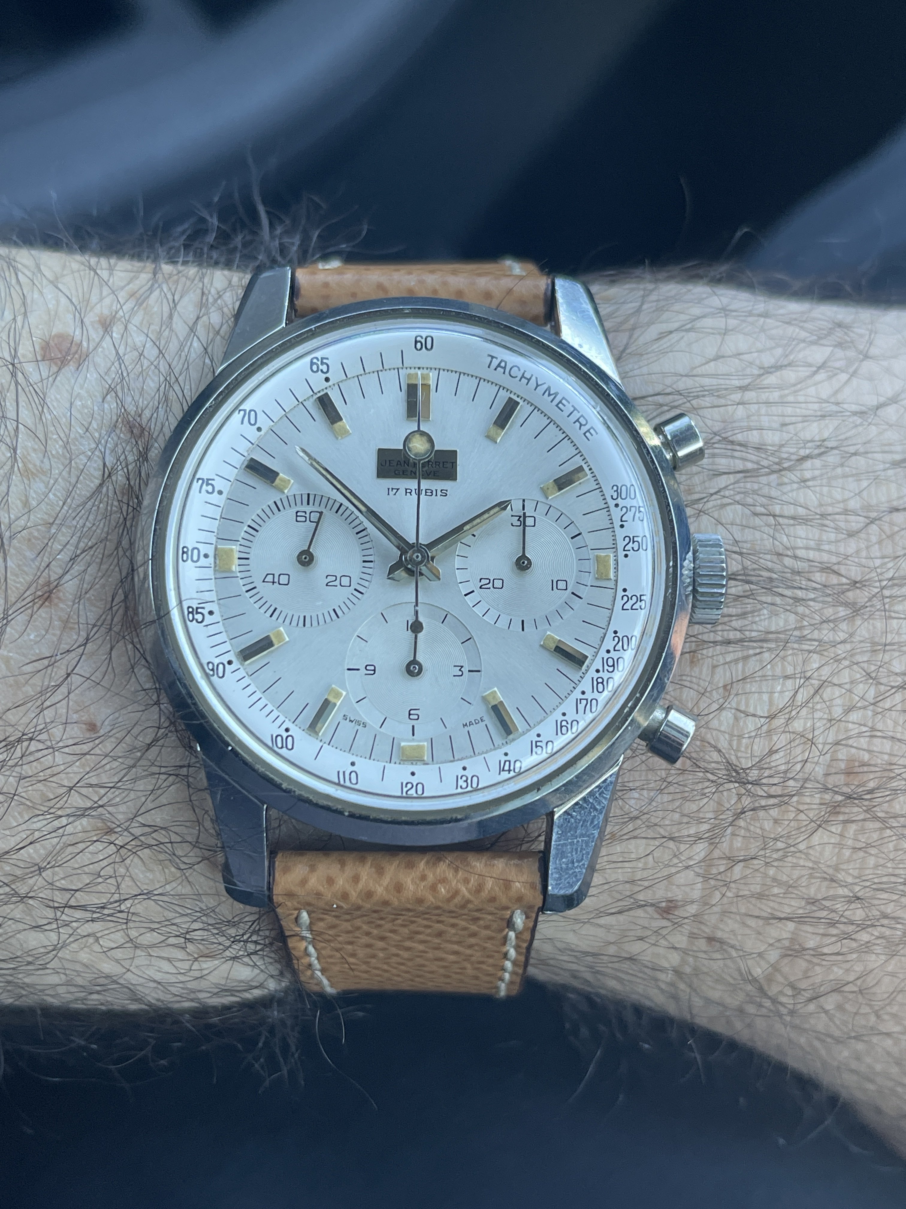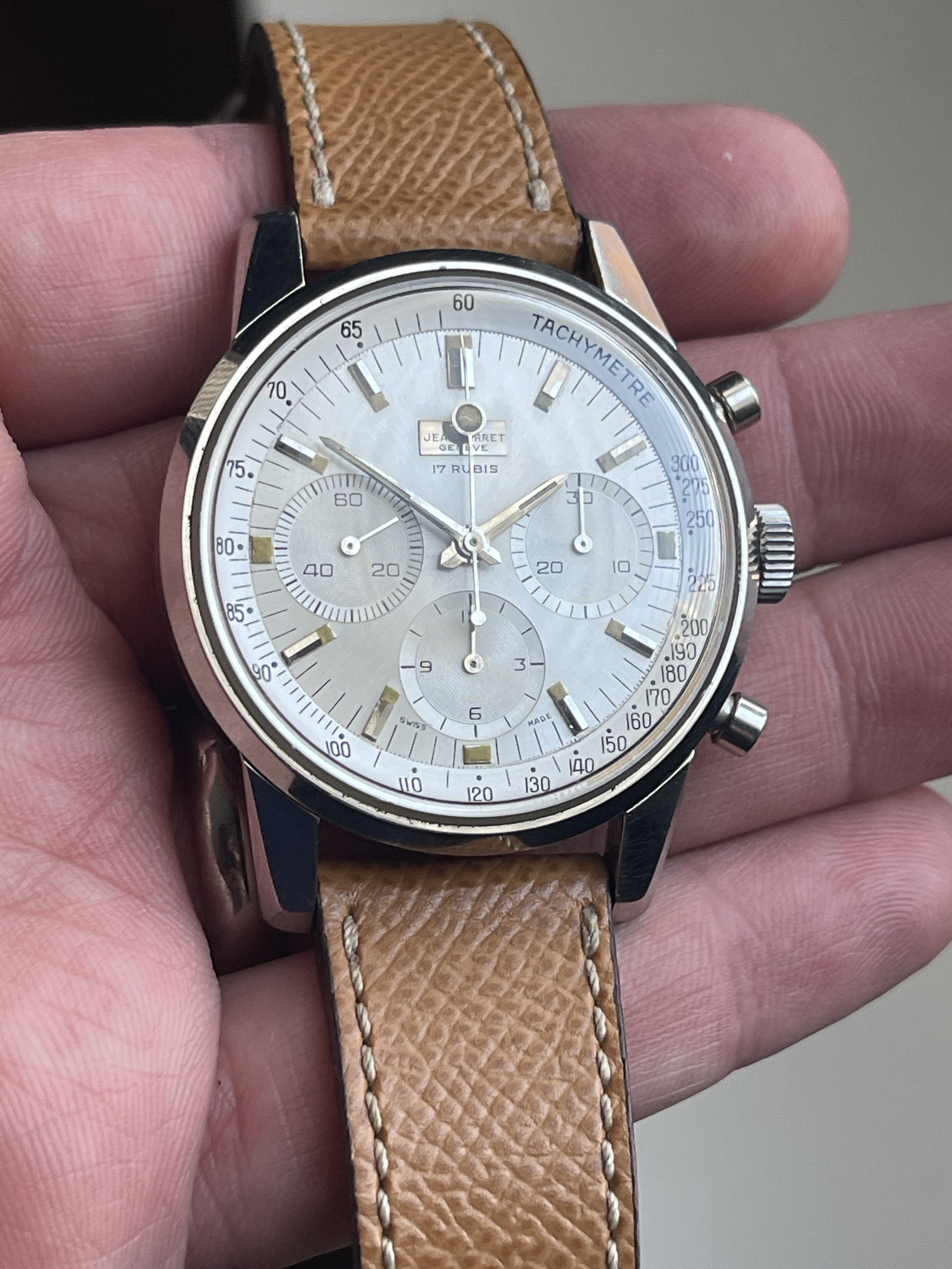 ·Selling a few watches that I don't wear frequently, this is next up. Up for sale is my Jean Perret “Sherpagraph.” I have tried to give an honest description of any condition issues which are noted below and in pictures. Pictures are honest and unmodified, please let me know if you would like to see more of a certain area. This watch was previously owned by an Enicar collector, I purchased it from a dealer last year who was selling it for the collector. I can provide a link to the FS ad for interested buyers, the dealer’s pictures are better than mine.