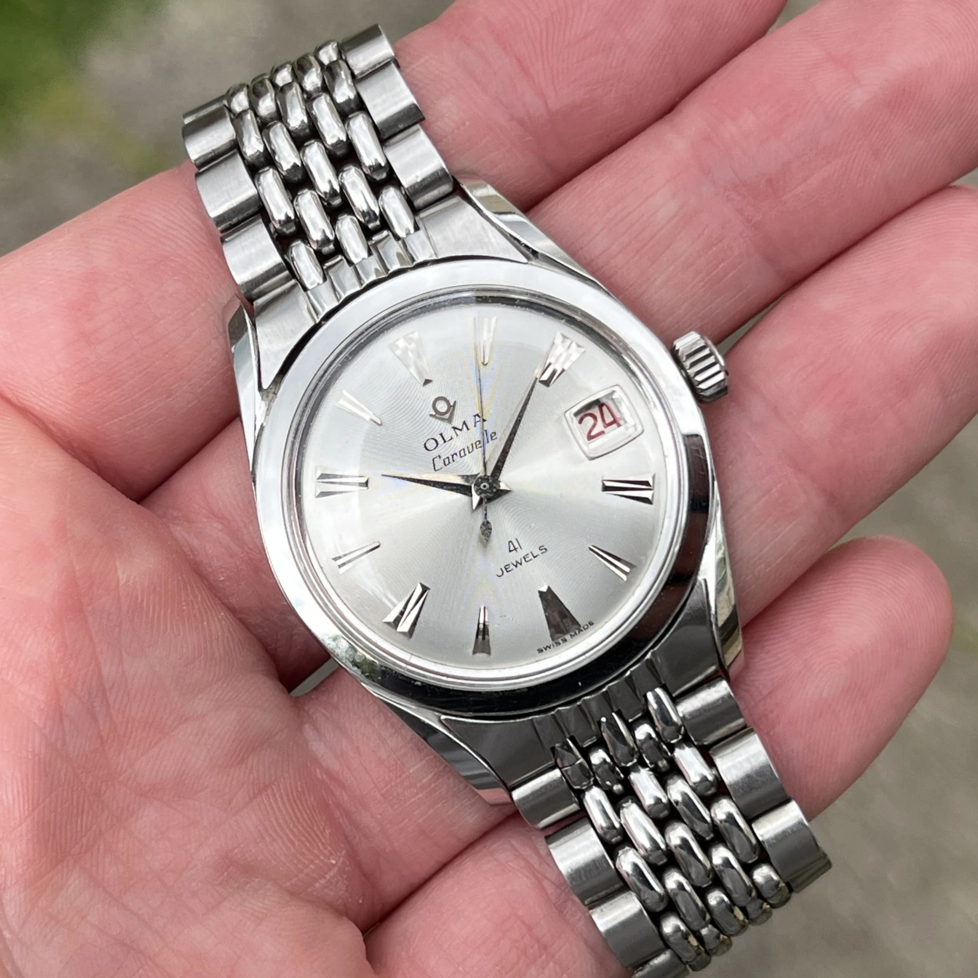 I will be listing a few watches the coming period in a spring cleanout. First to go is this stunning Olma Caravelle. I will post pictures below but I also encourage you to watch the video for an accurate representation.